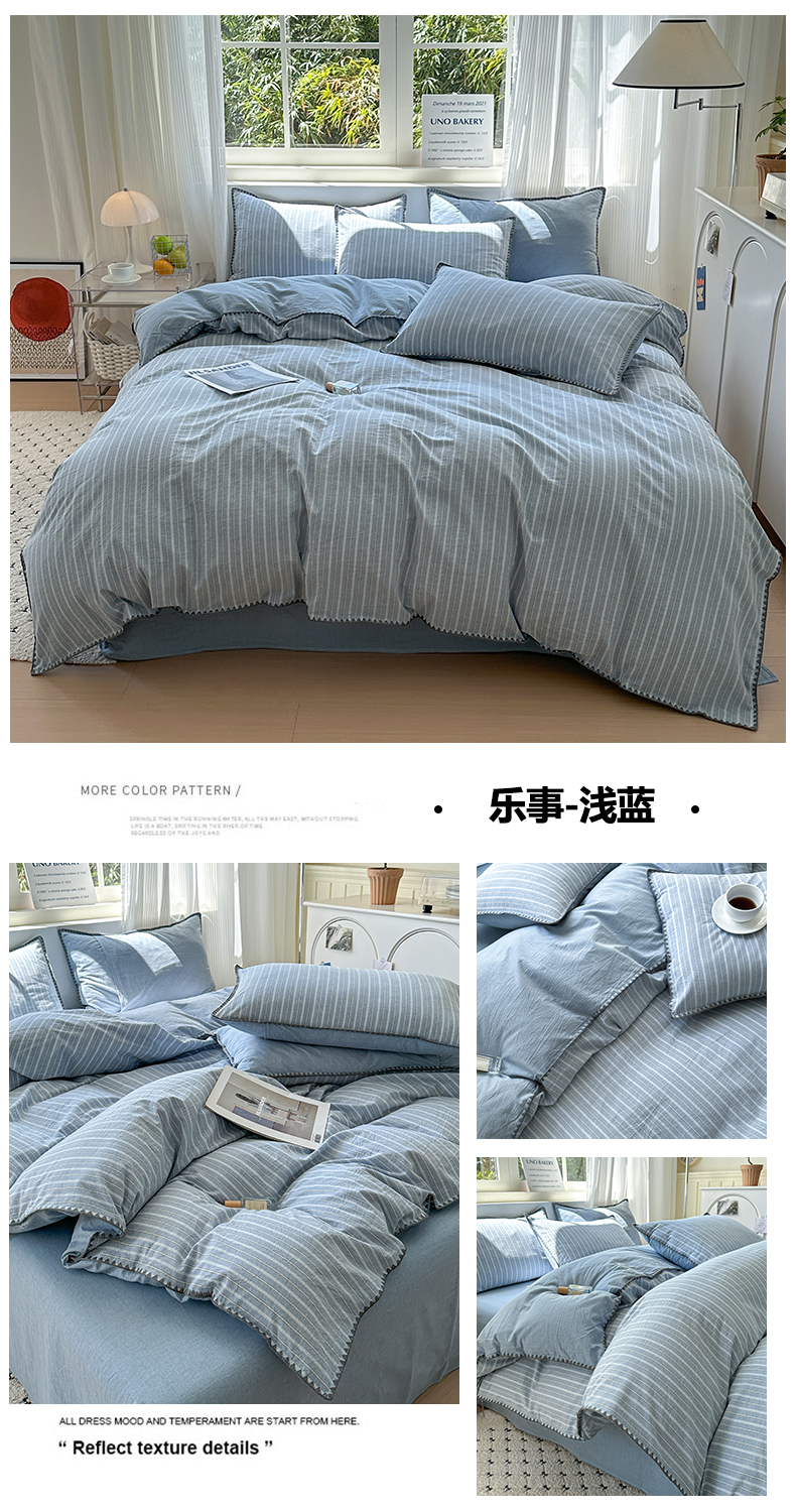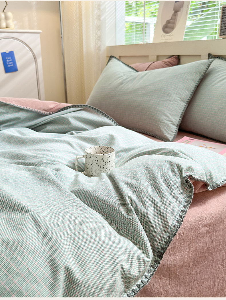 当前位置: 91家纺网 > 商品网购 > 床品套件 > 四件套 > 全棉普通四件套 > 晚依家纺 2025新款A类全棉色织水洗棉被套单件格子条纹四件套学生宿舍被罩三件套定制定做 星语-绿豆沙
