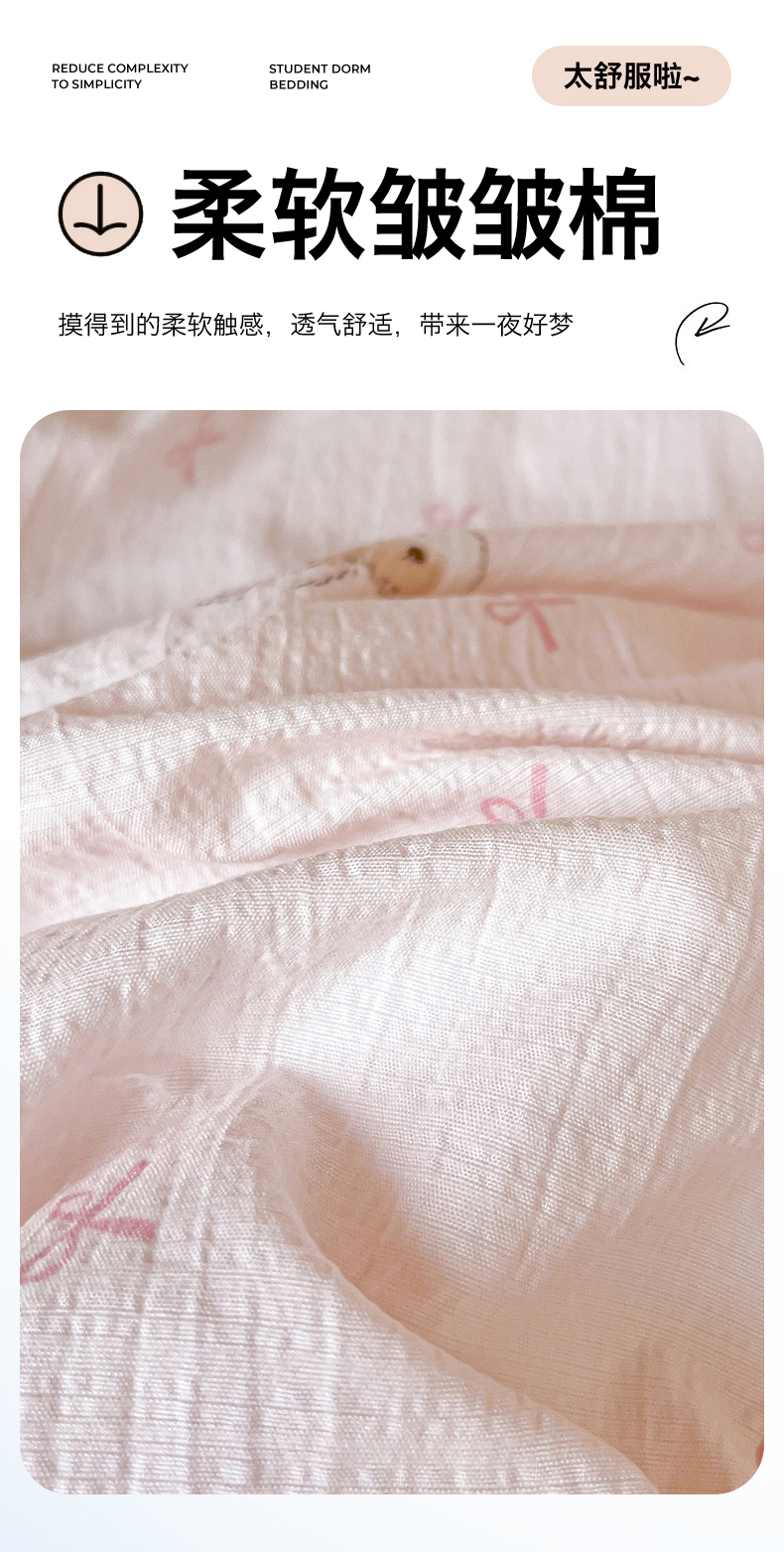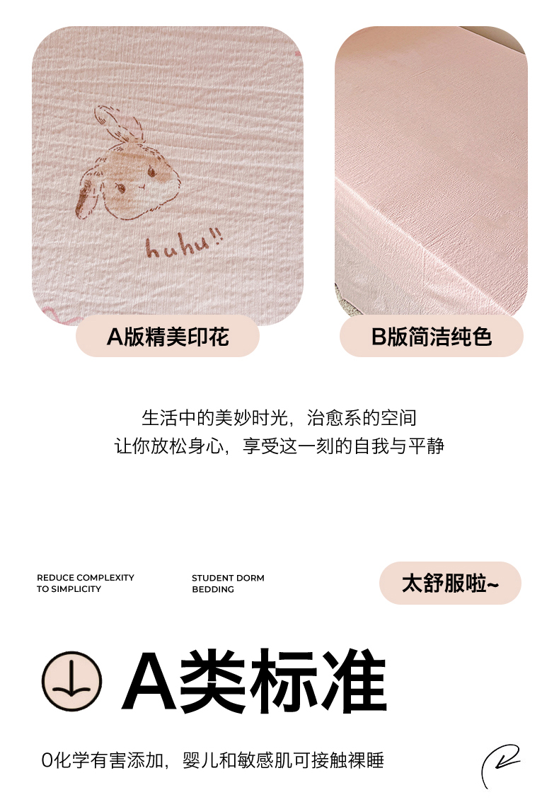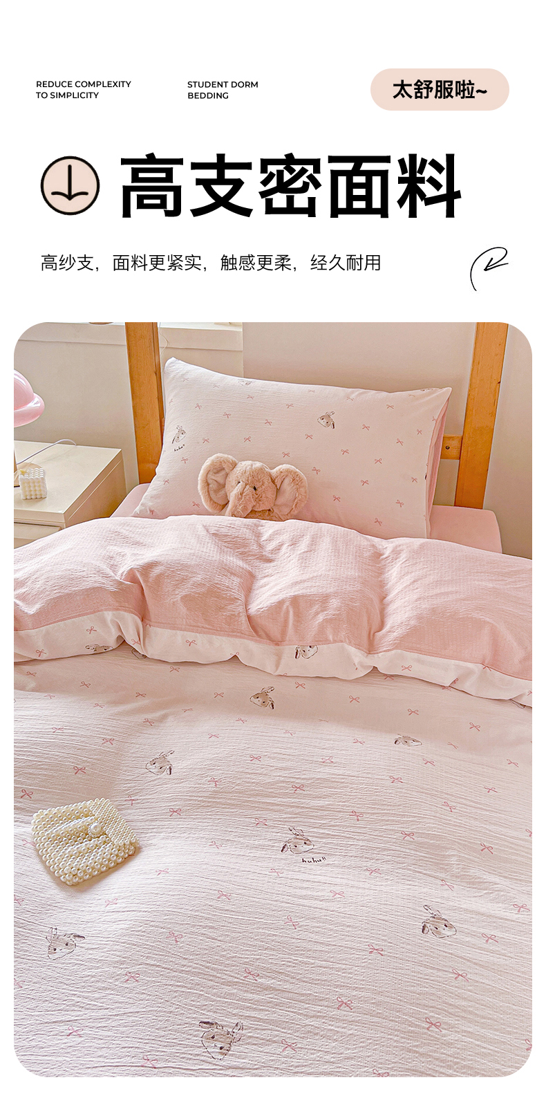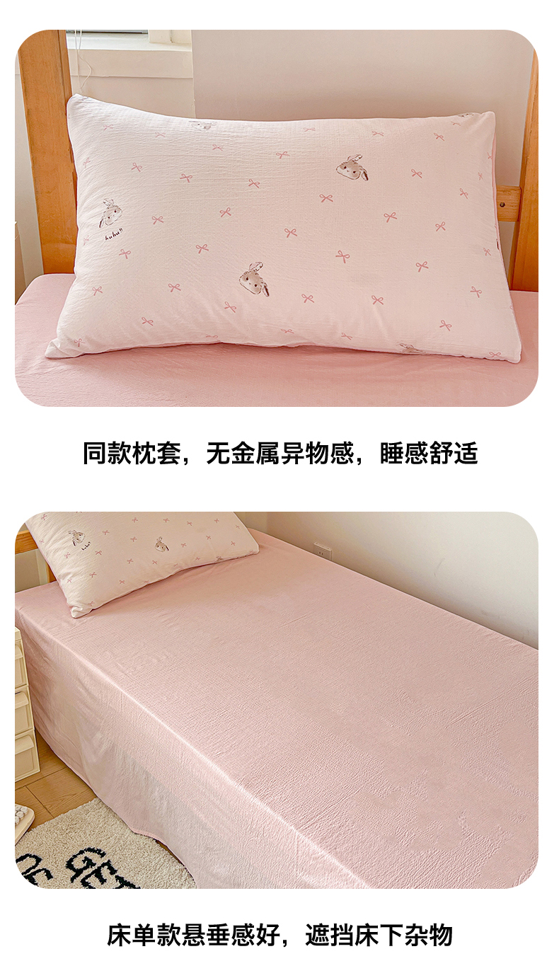 当前位置: 91家纺网 > 商品网购 > 床品套件 > 三件套 > 名兮家居 2025新款皱皱棉学生床宿舍上下铺三件套六件套 粉色小兔