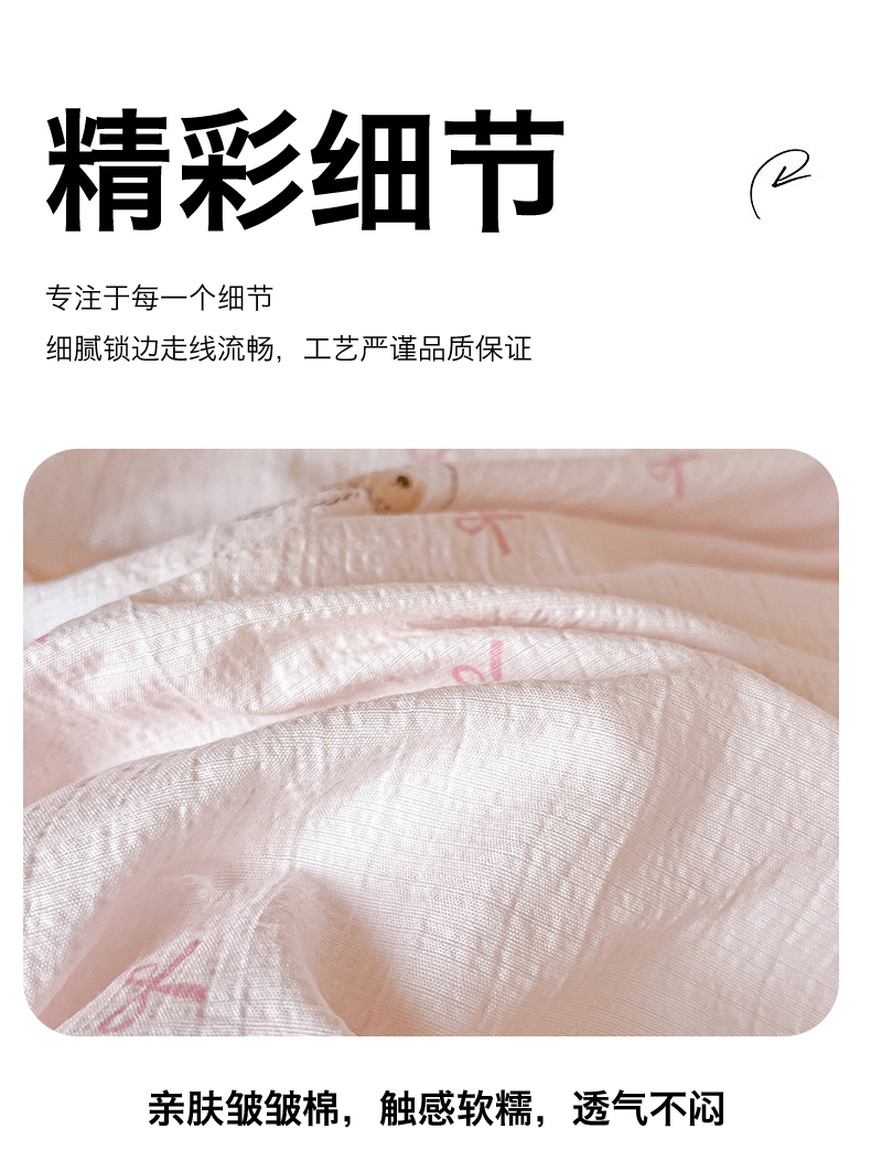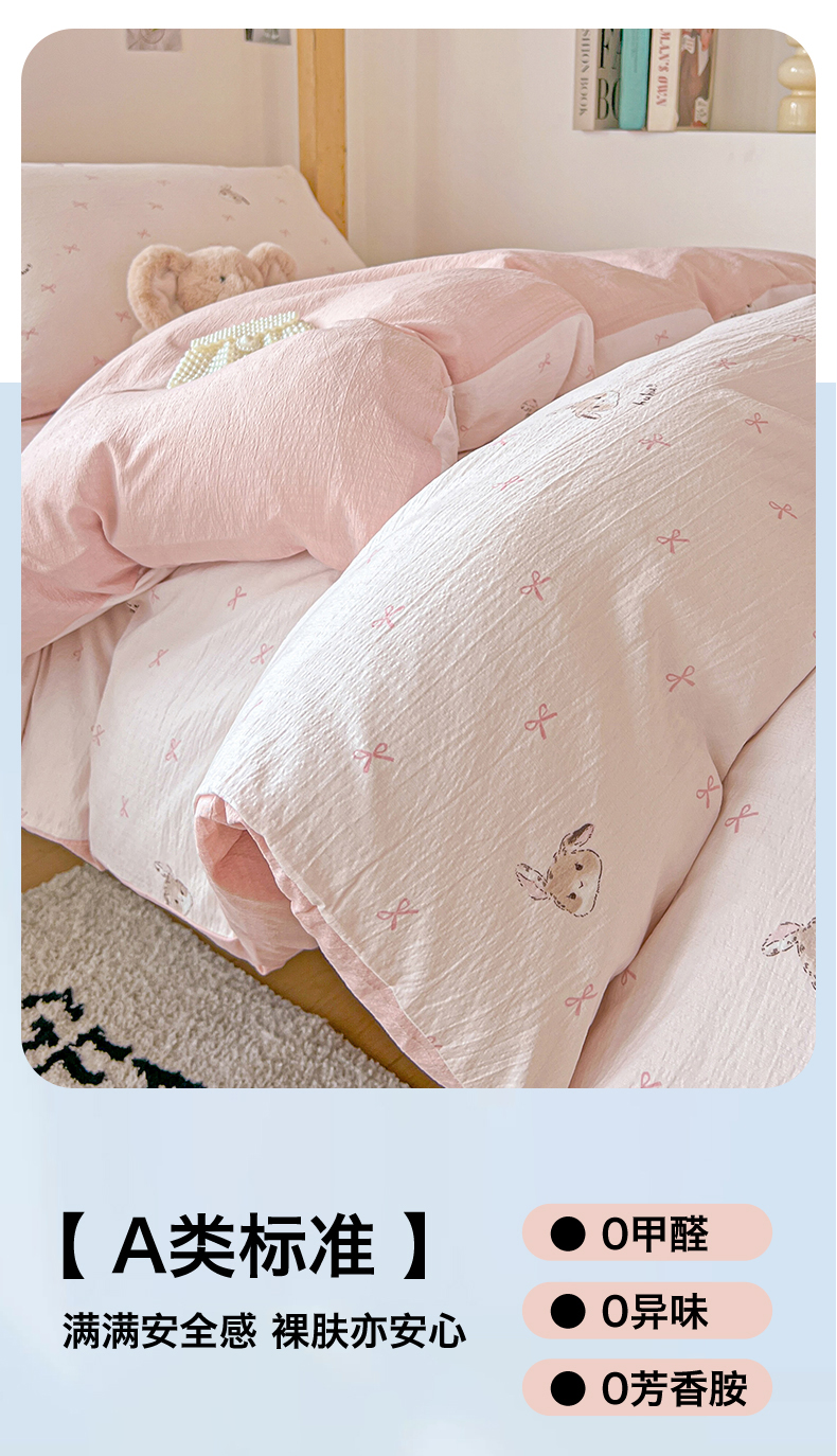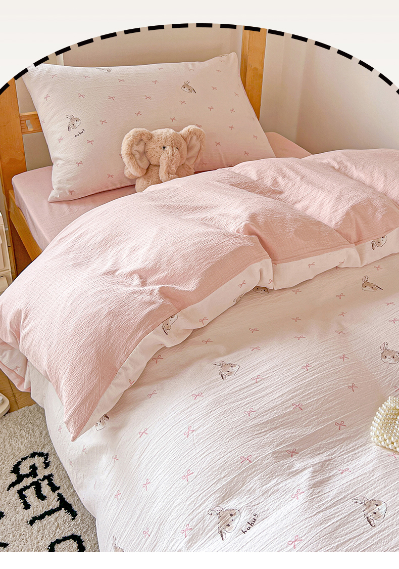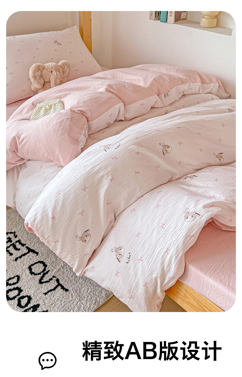 当前位置: 91家纺网 > 商品网购 > 床品套件 > 三件套 > 名兮家居 2025新款皱皱棉学生床宿舍上下铺三件套六件套 粉色小兔