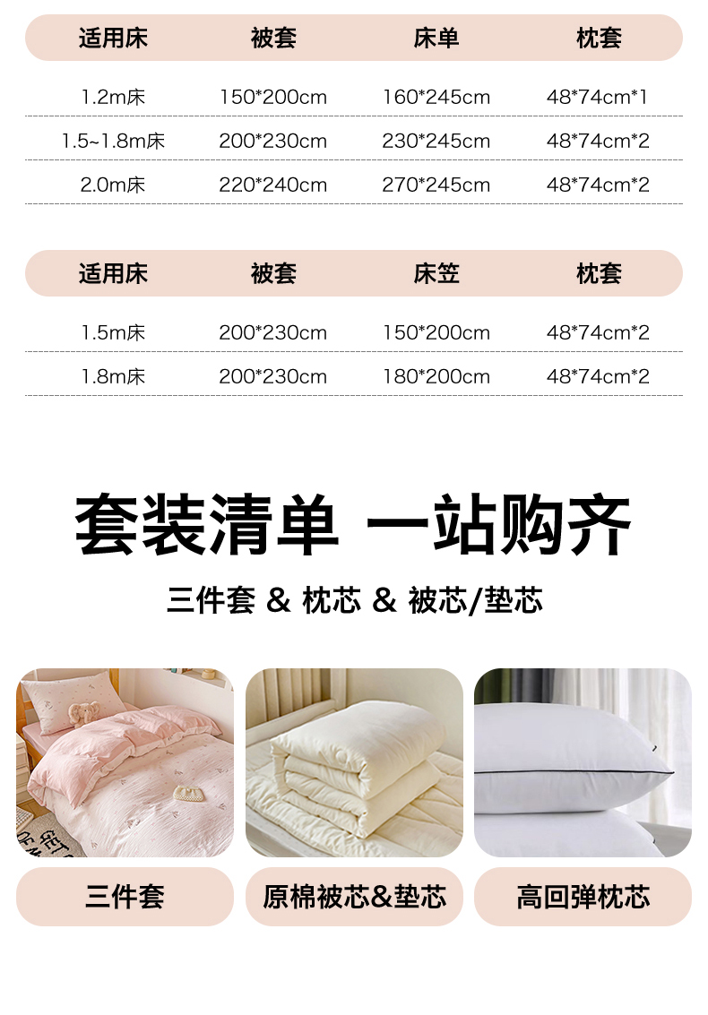 0.9m床六件套 【三件套+秋冬被约5斤+枕芯+垫芯】 | ¥138.00 |