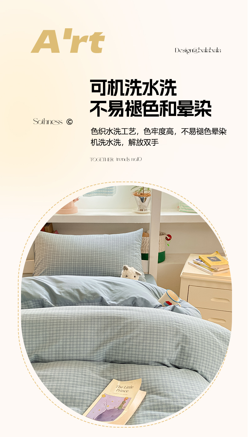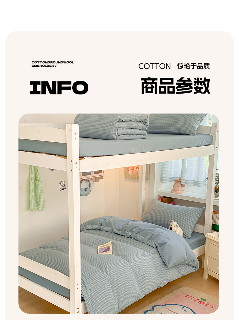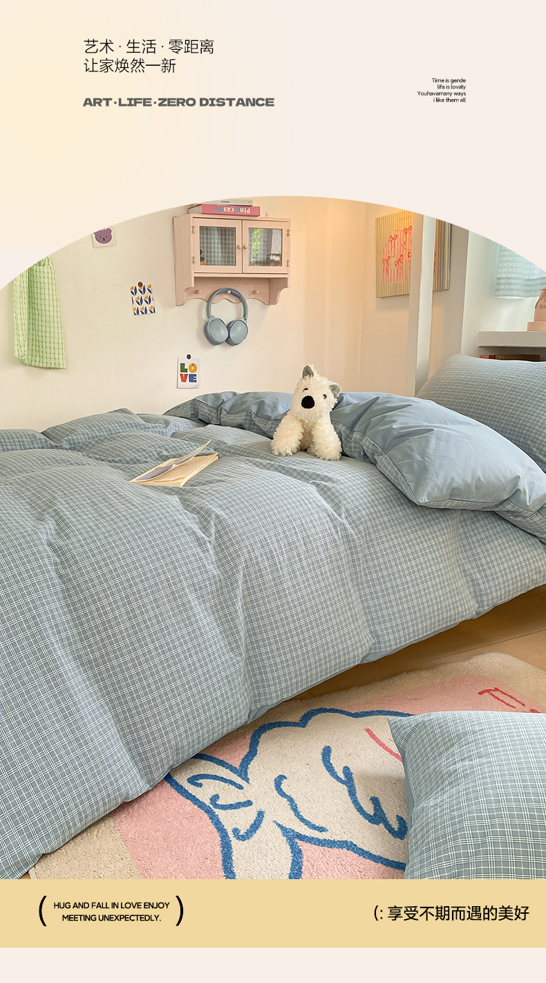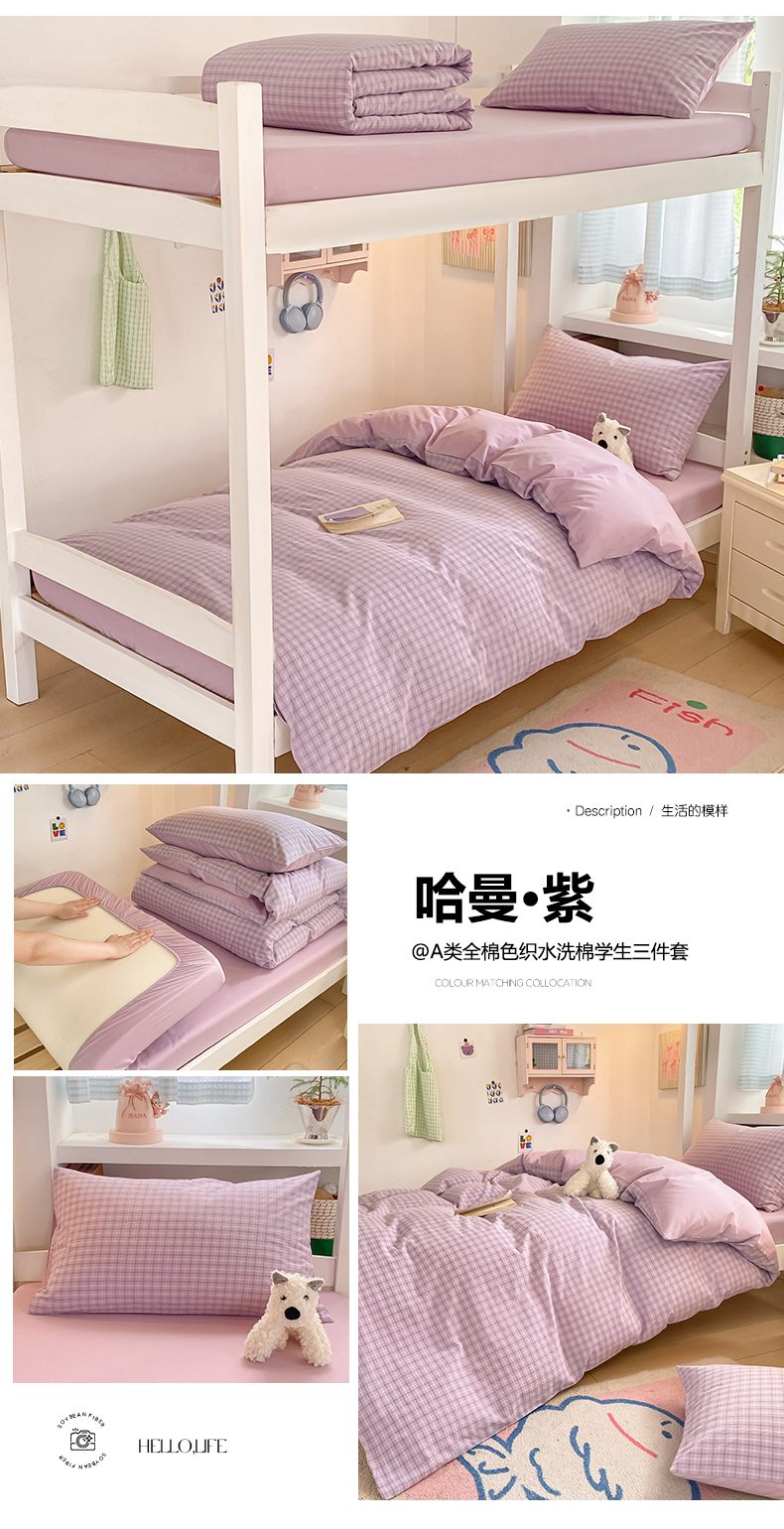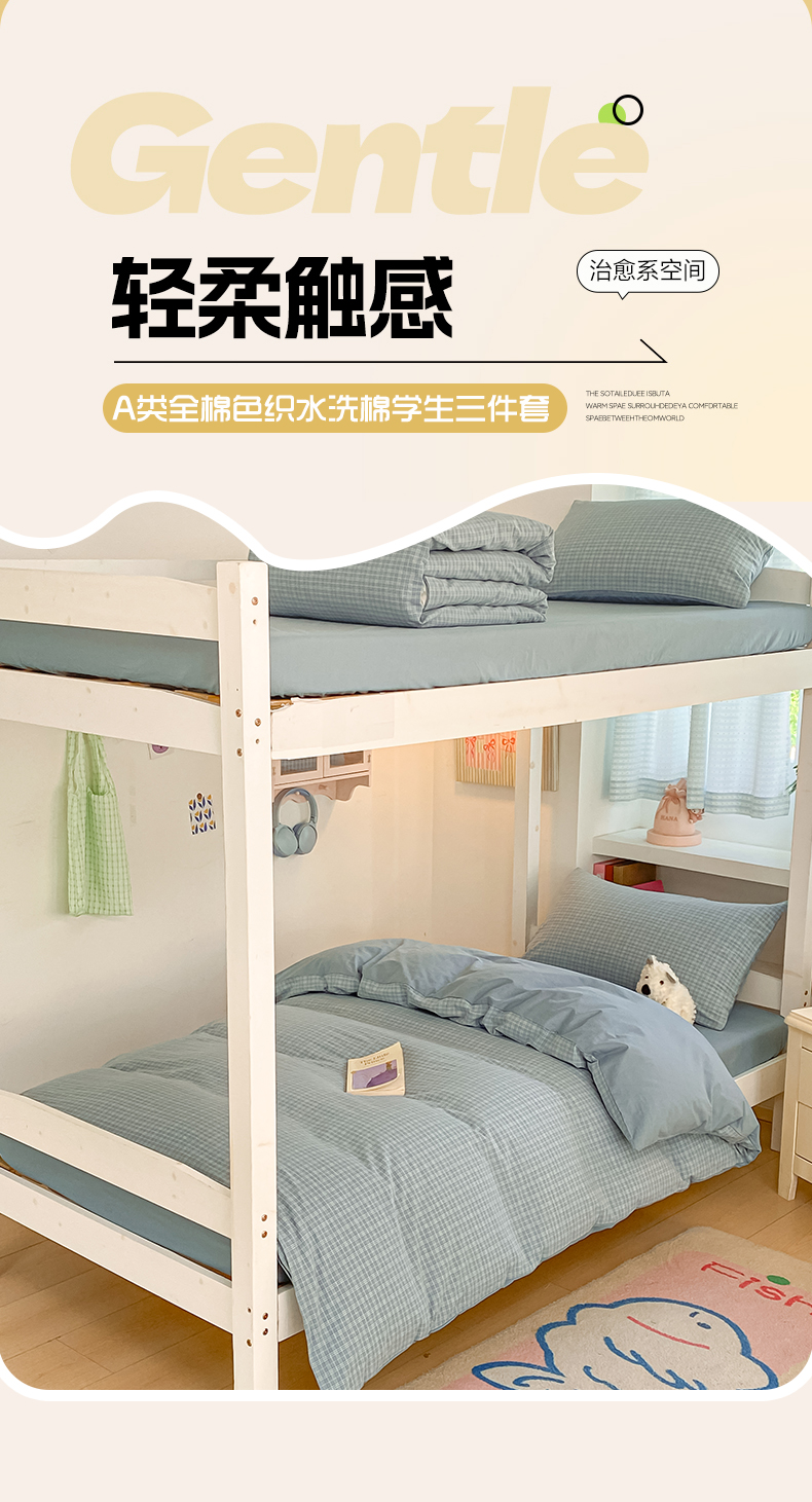 当前位置: 91家纺网 > 商品网购 > 床品套件 > 三件套 > 寐居家纺 2025新款亲肤舒适全棉纯棉色织水洗棉学生三件套 莫尼-蓝