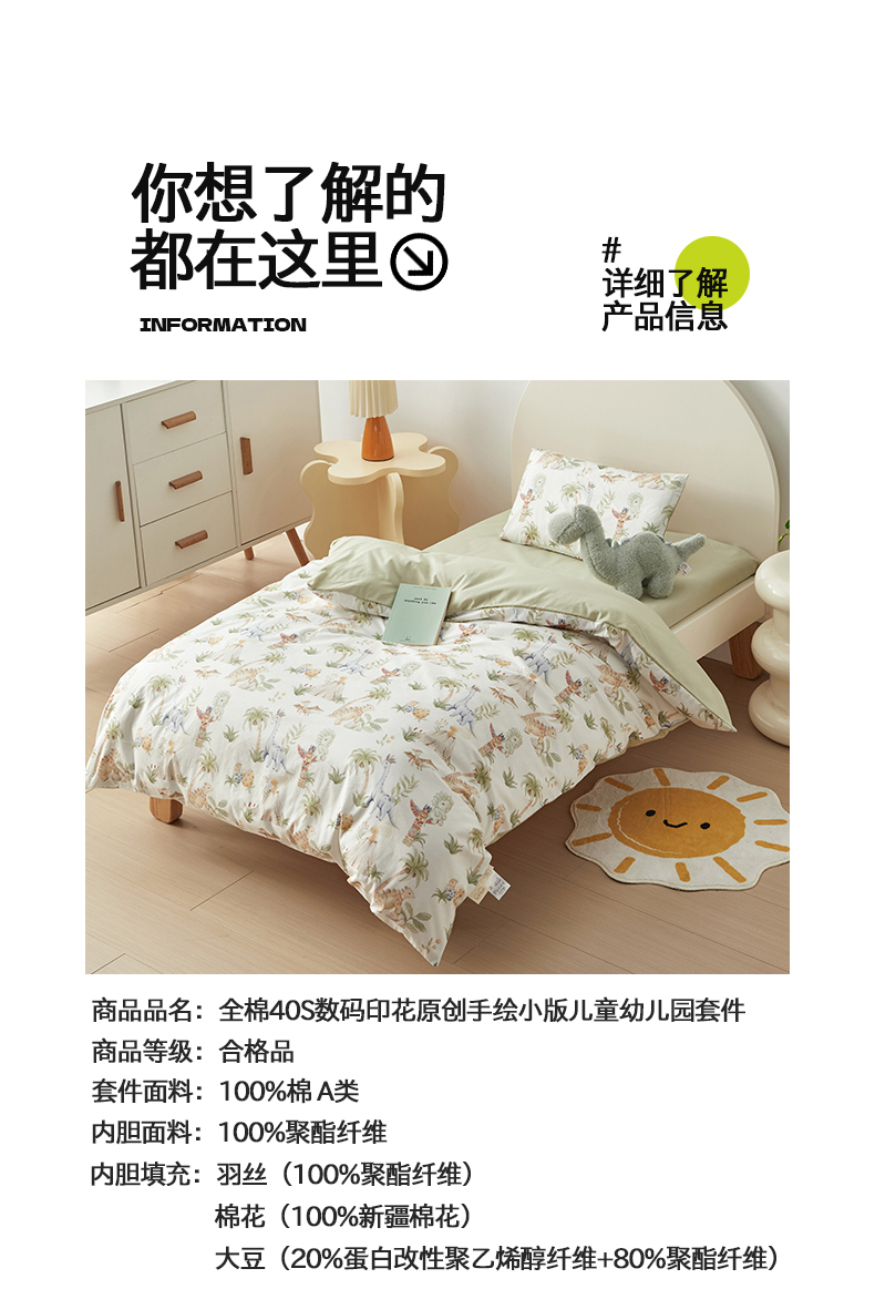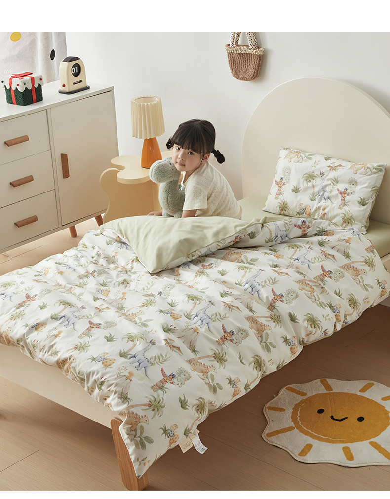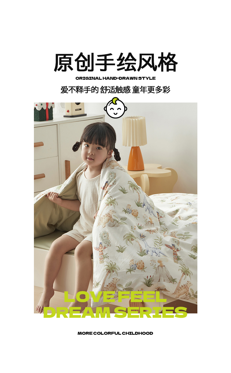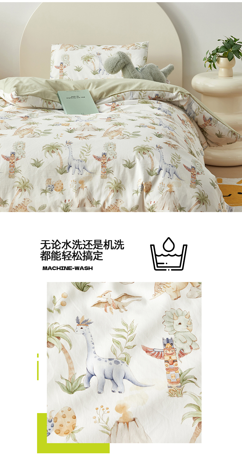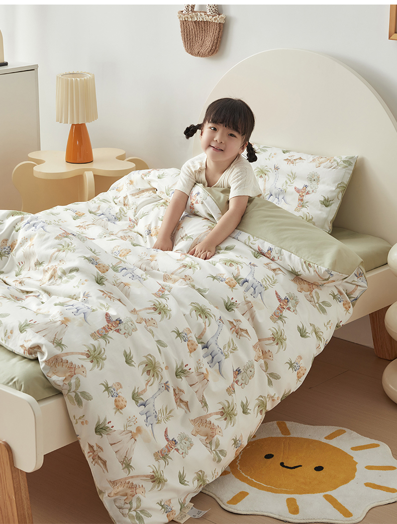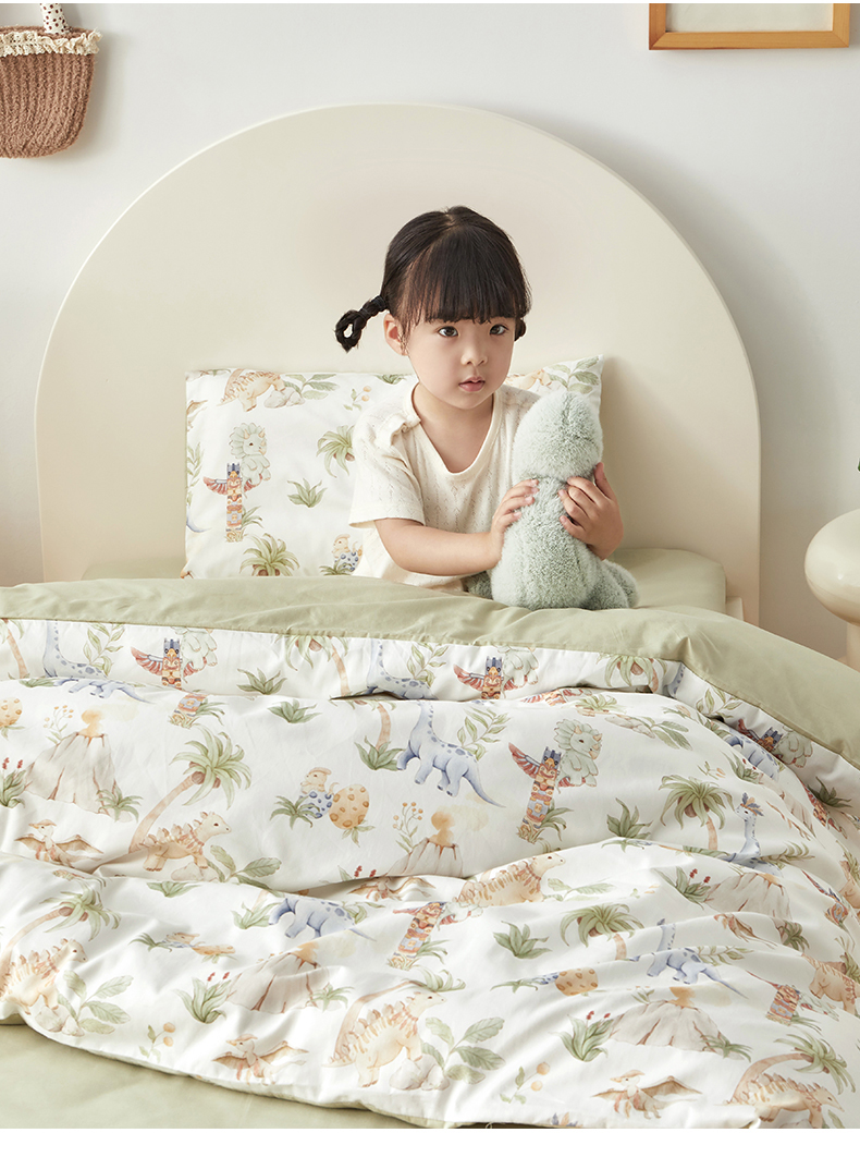 当前位置: 91家纺网 > 商品网购 > 床品套件 > 多件套 > 多件套 > 荷马之梦 2025新款梦境系列—全棉40s数码印花原创手绘小版儿童幼儿园套件 恐龙之家