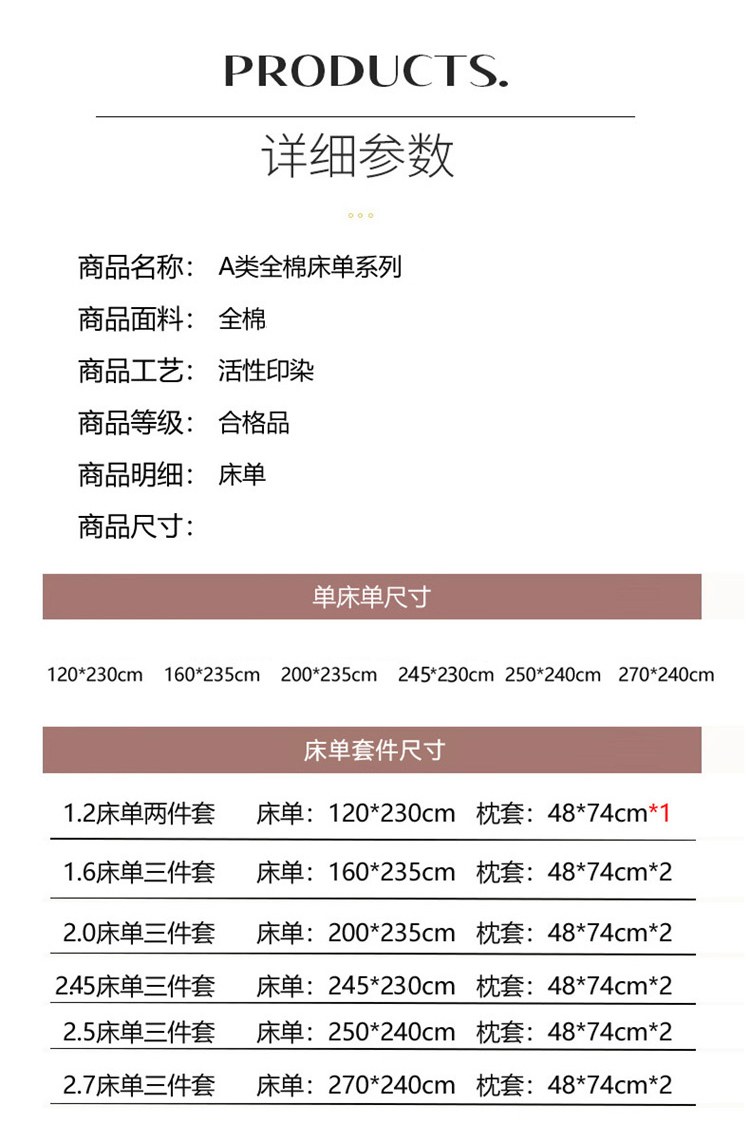 160x235cm单床单+枕套一对 | ¥42.00 |