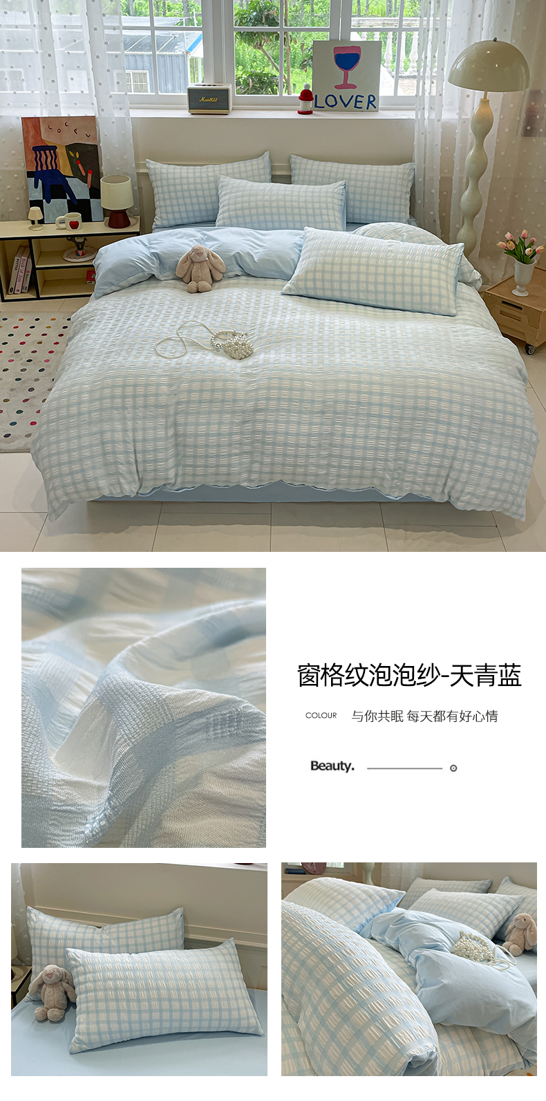 当前位置: 91家纺网 > 商品网购 > 床品套件 > 四件套 > 其它四件套 > 凯洛奇 2025新款窗格纹泡泡纱阳离子四件套(提供买家秀) 窗格纹泡泡纱-天青蓝