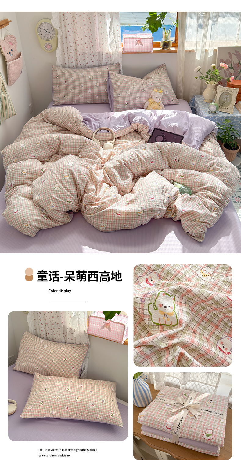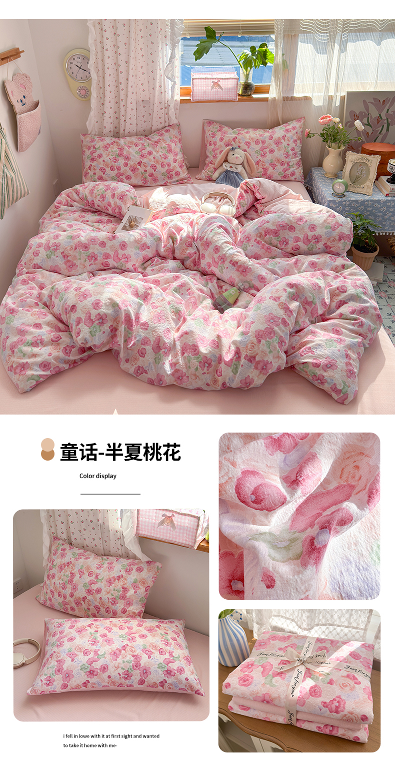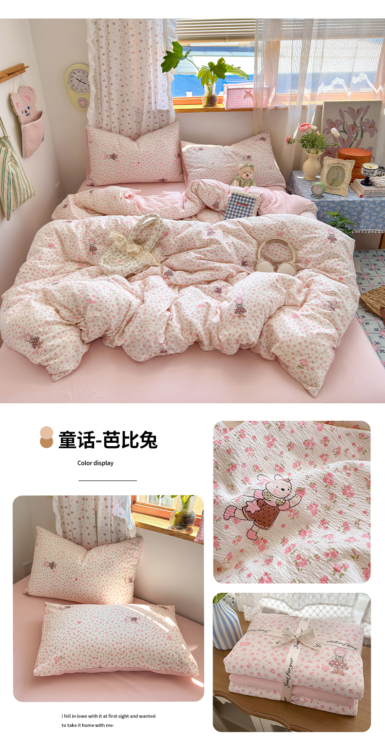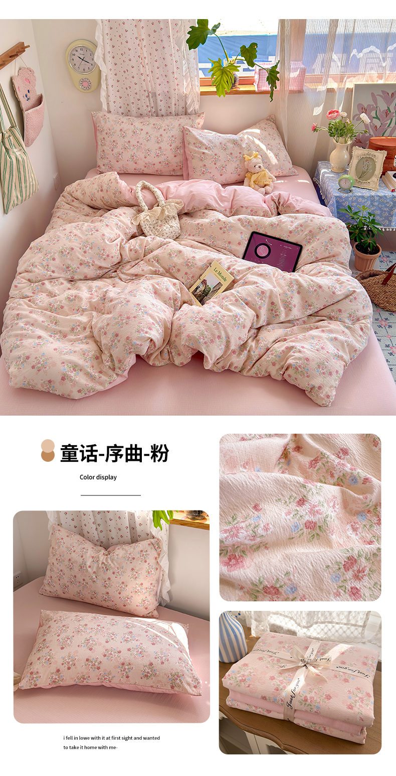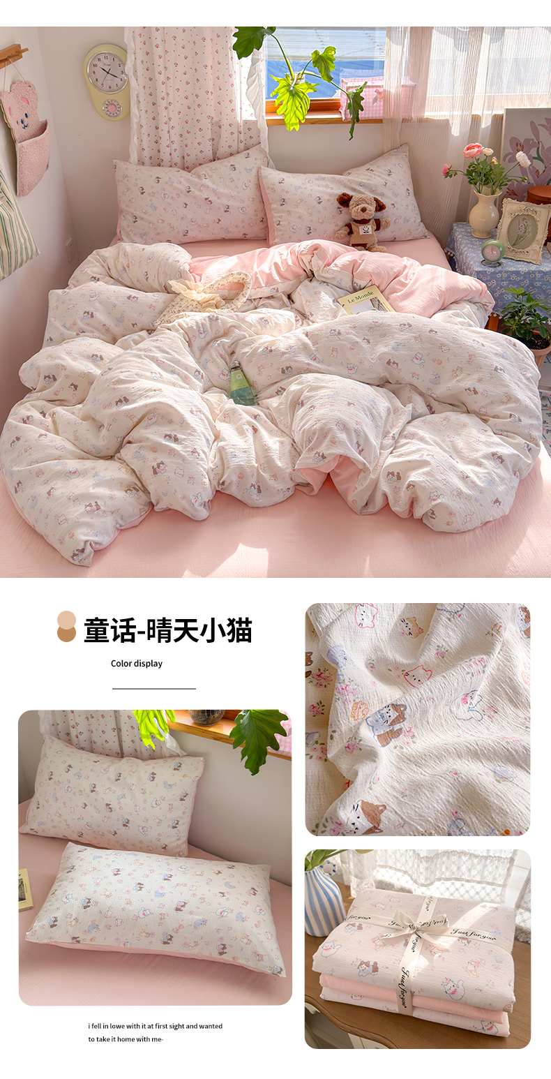 (总)罗亿家纺 2026新款A类古法水洗仿棉云感纱四件套,俏皮豹纹-kt-粉,小幸运,花颜,甜品小猫,爱心甜猫,梦境花园,芝士莓莓熊,蝴蝶结,冰淇淋超甜,奶味星人,狗狗乐园,花花kt梦,小时光,小鱼的心事,旋转木马,樱桃格格,葡萄很甜,花集小兔,焦糖LABUBU,梦幻乐园,绿萌兔子,烟花星语