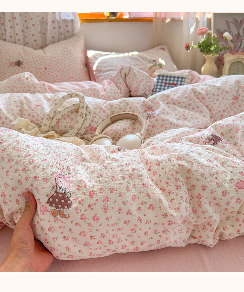 当前位置: 91家纺网 > 商品网购 > 床品套件 > 四件套 > 双层纱四件套 > 罗亿家纺 2025新款云感双层纱印花四件套 童话-美梦结