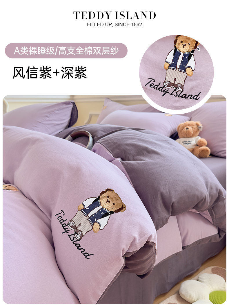 (总)尚品本色 2025新款40支印花+绣花全棉印花小熊绣花四件套,迪莉娅,守护甜心,素然-米,童年诗篇,挽夏-绿,烟雨花间,印记时光