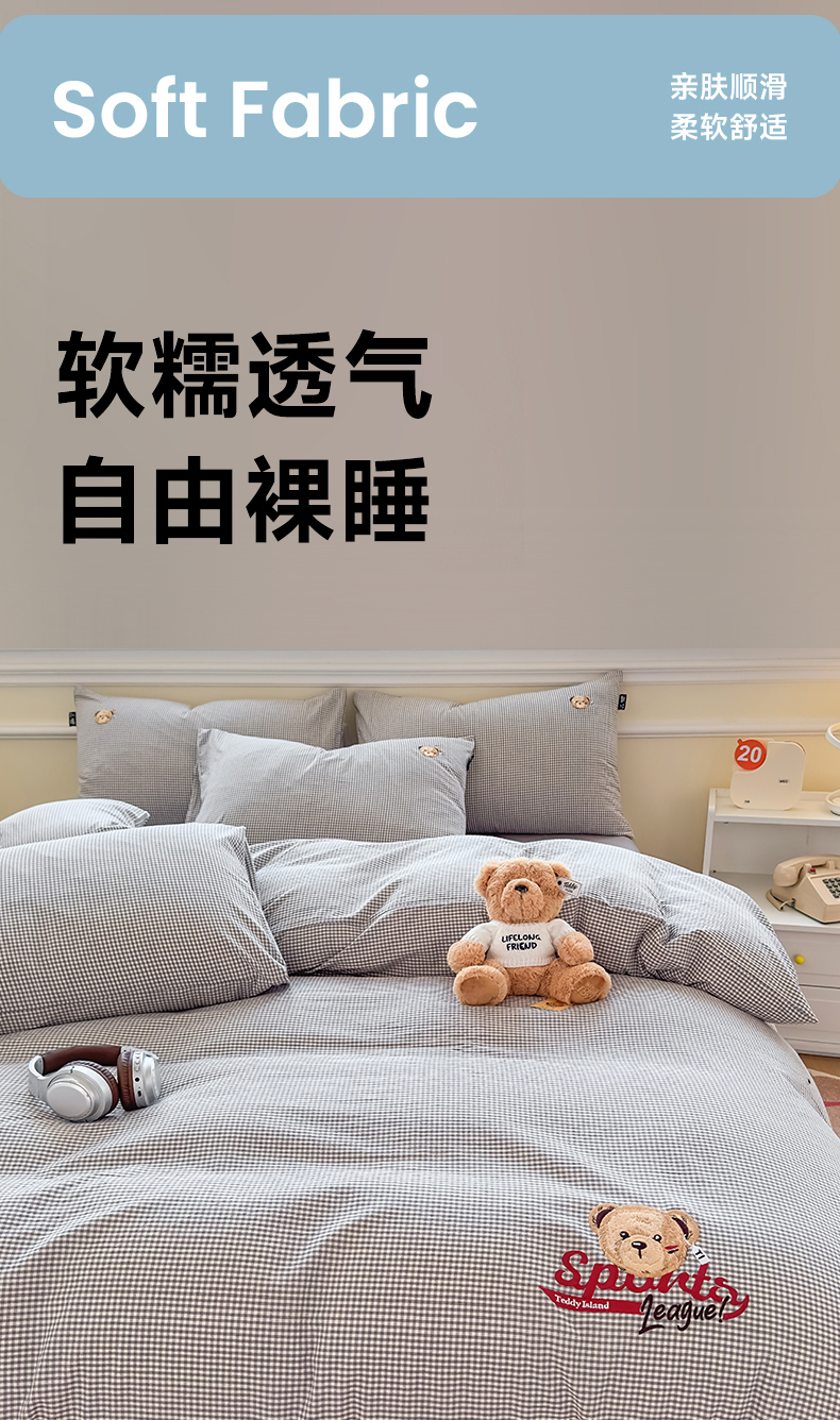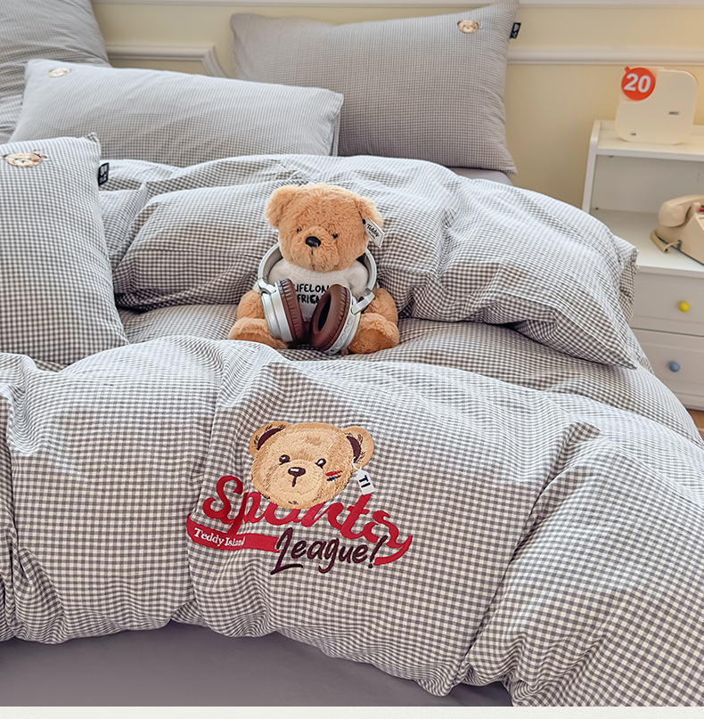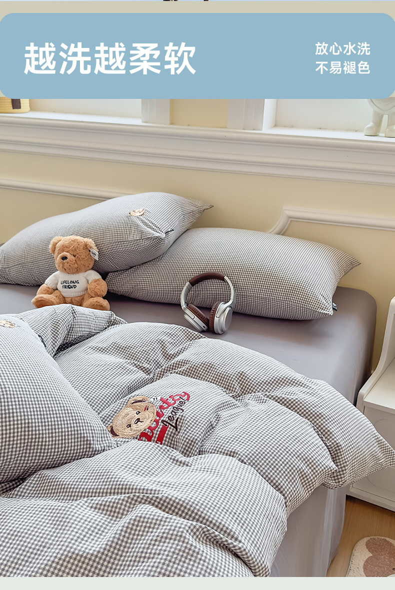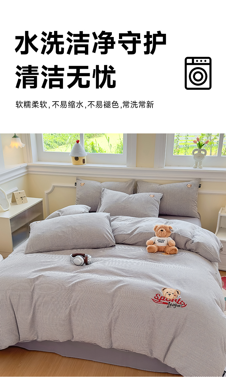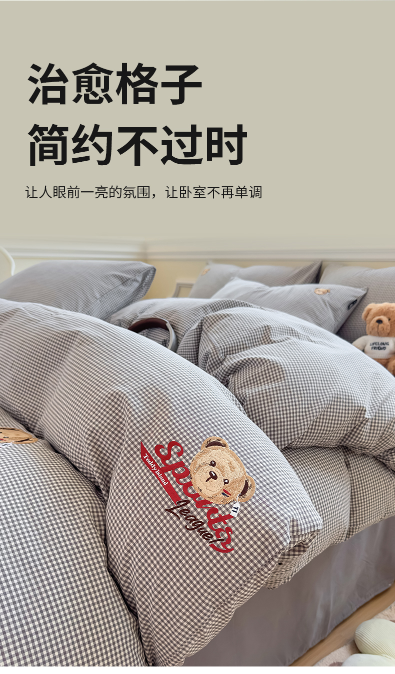 当前位置: 91家纺网 > 商品网购 > 床品套件 > 四件套 > 全棉普通四件套 > 尚品本色 2025新款全棉色织水洗棉格子绣花四件套 灰密格