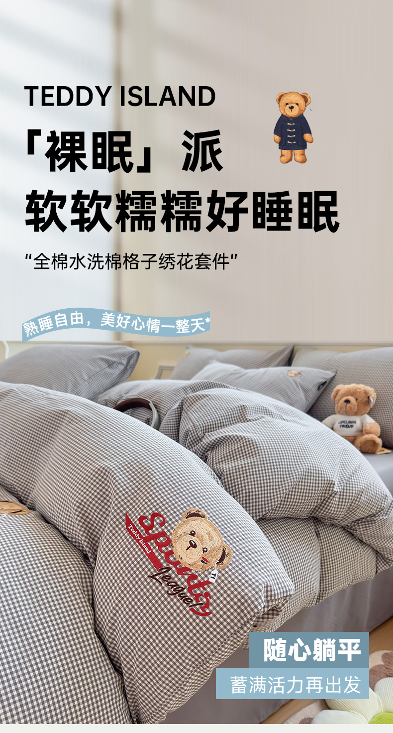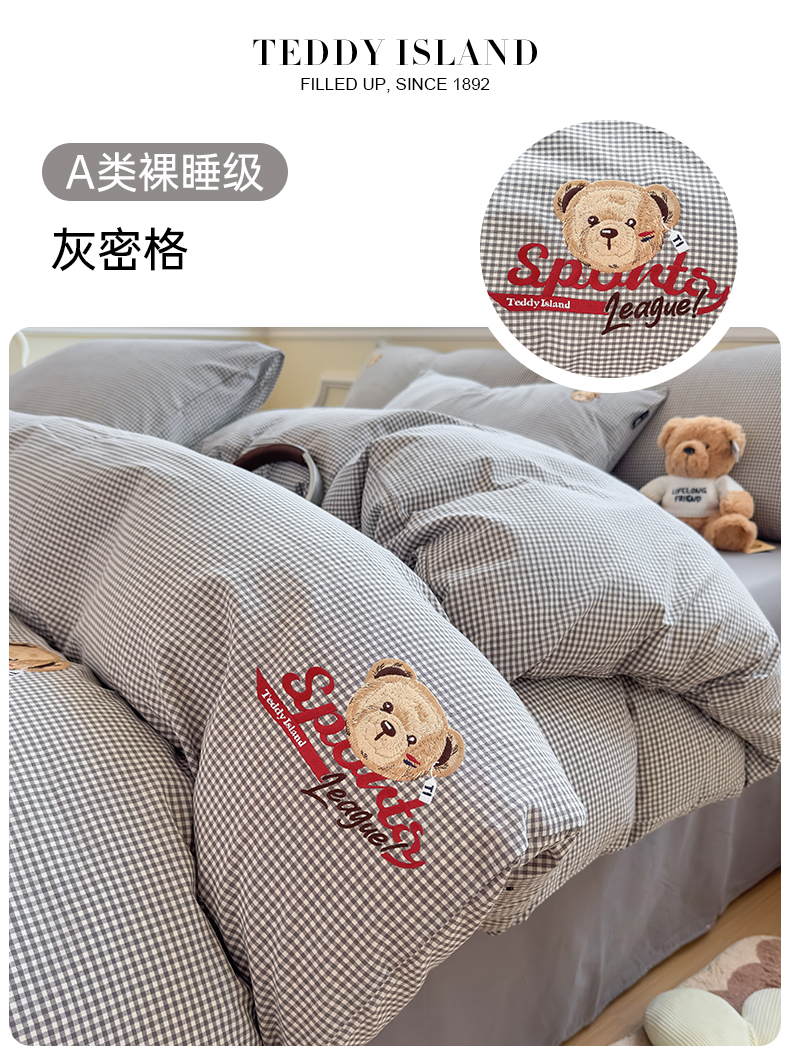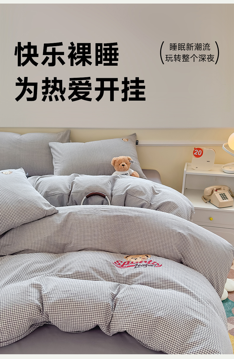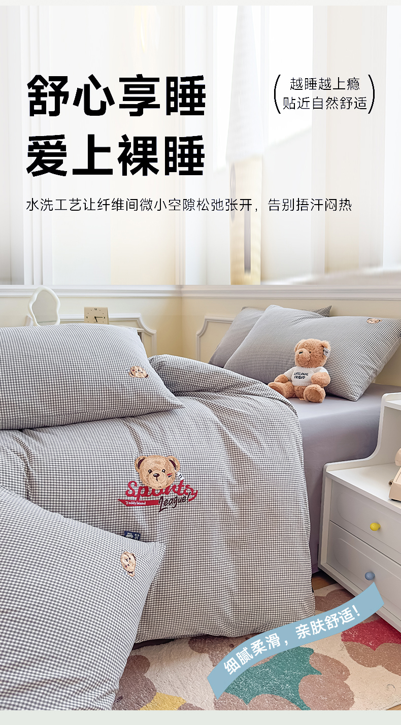当前位置: 91家纺网 > 商品网购 > 床品套件 > 四件套 > 全棉普通四件套 > 尚品本色 2025新款全棉色织水洗棉格子绣花四件套 灰密格