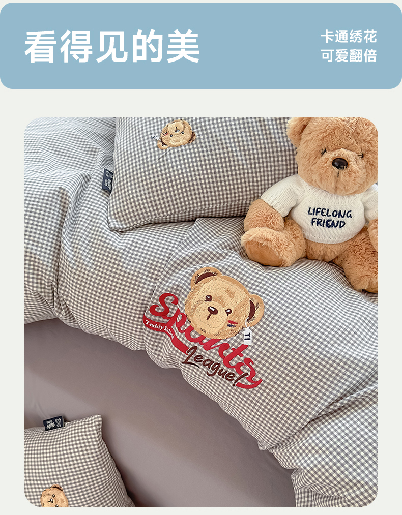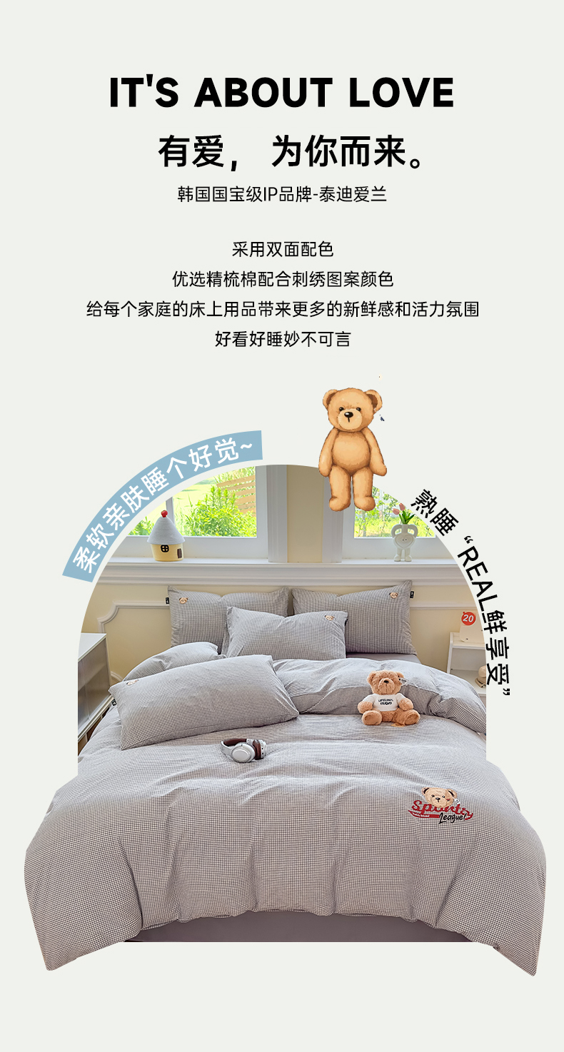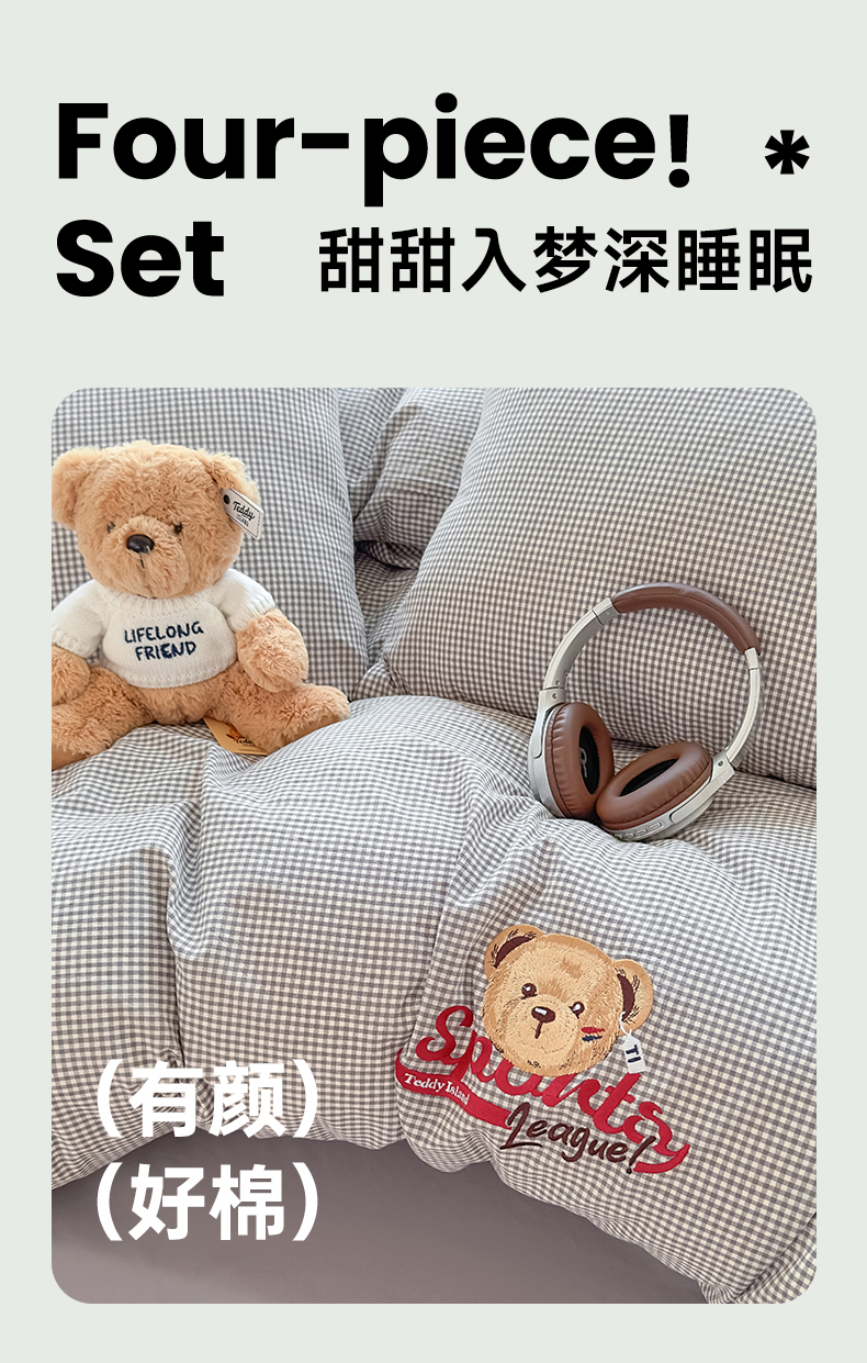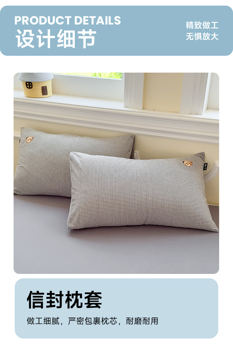 当前位置: 91家纺网 > 商品网购 > 床品套件 > 四件套 > 全棉普通四件套 > 尚品本色 2025新款全棉色织水洗棉格子绣花四件套 灰密格