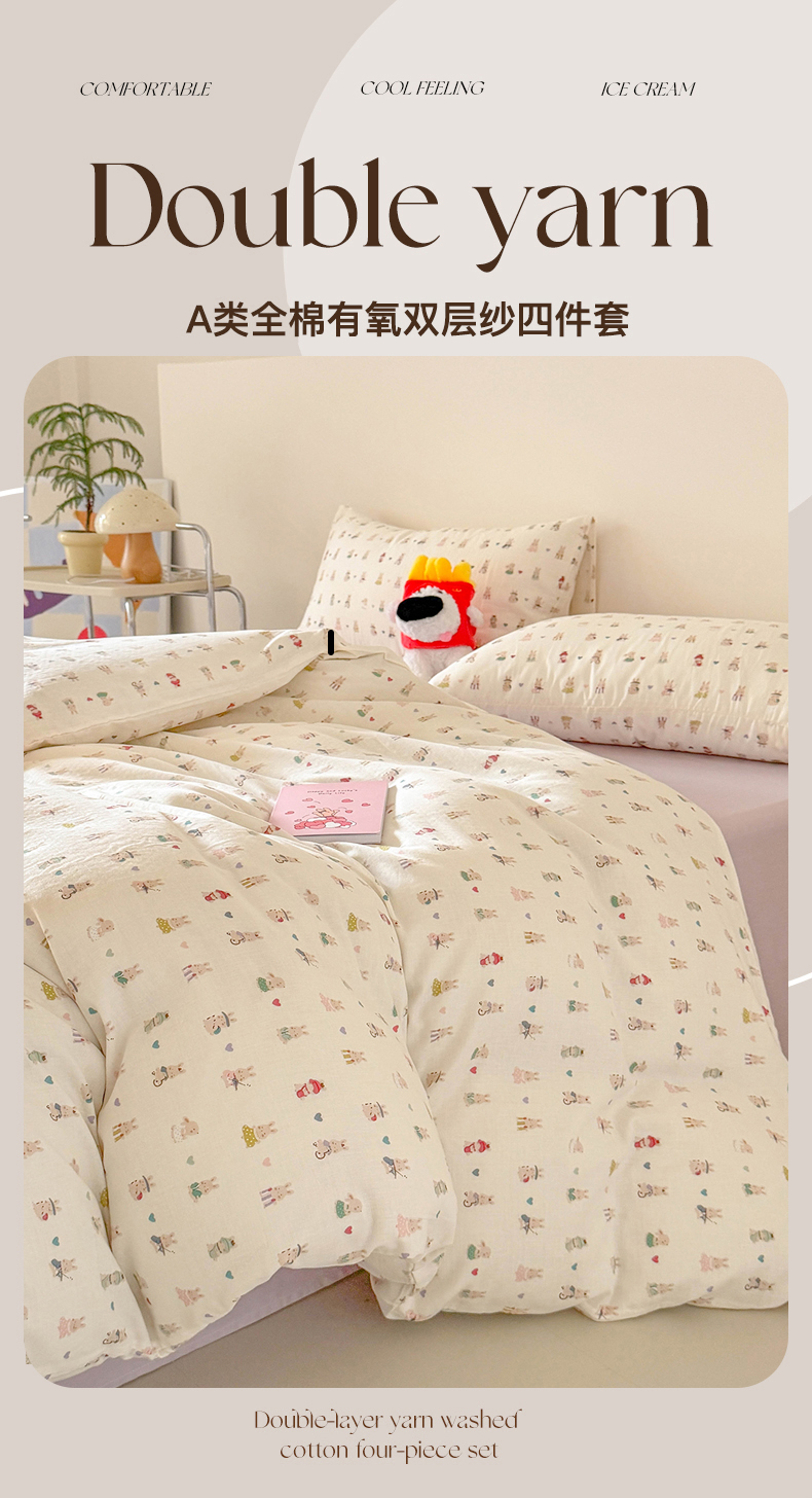 当前位置: 91家纺网 > 商品网购 > 床品套件 > 四件套 > 全棉普通四件套 > 麦伦家居 2025新款A类全棉纯棉有氧双层纱人字纹提花四件套 冰激凌