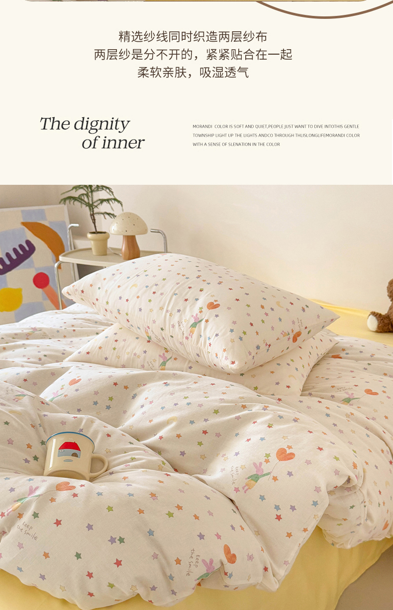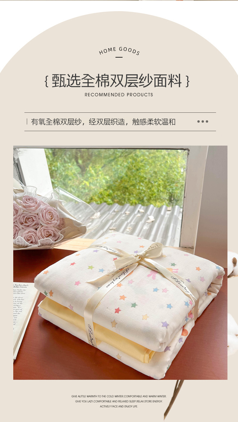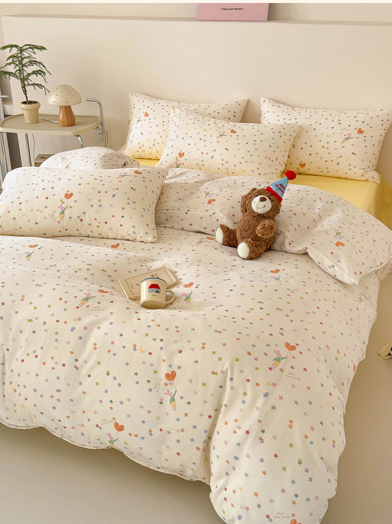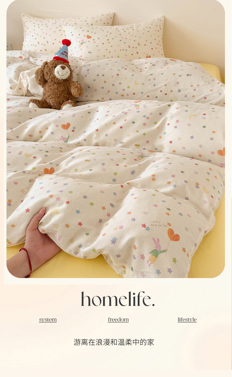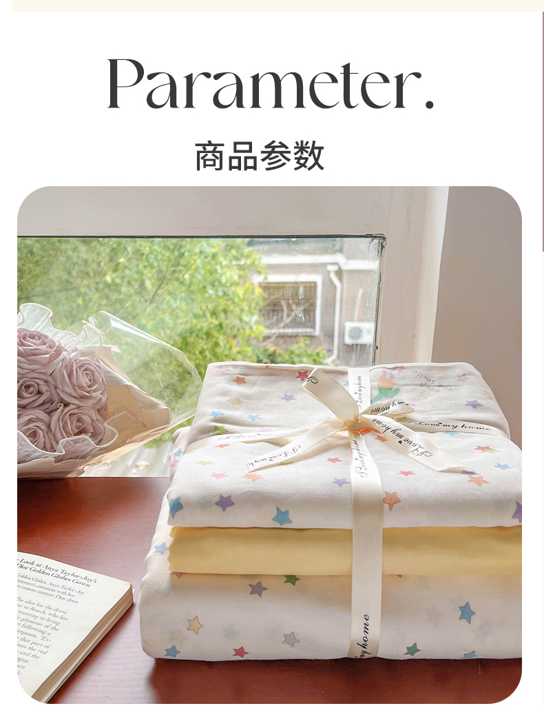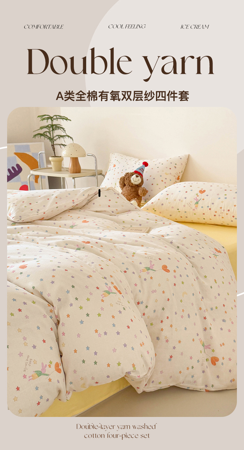 当前位置: 91家纺网 > 商品网购 > 床品套件 > 四件套 > 全棉普通四件套 > 麦伦家居 2025新款A类全棉纯棉有氧双层纱人字纹提花四件套 小星星
