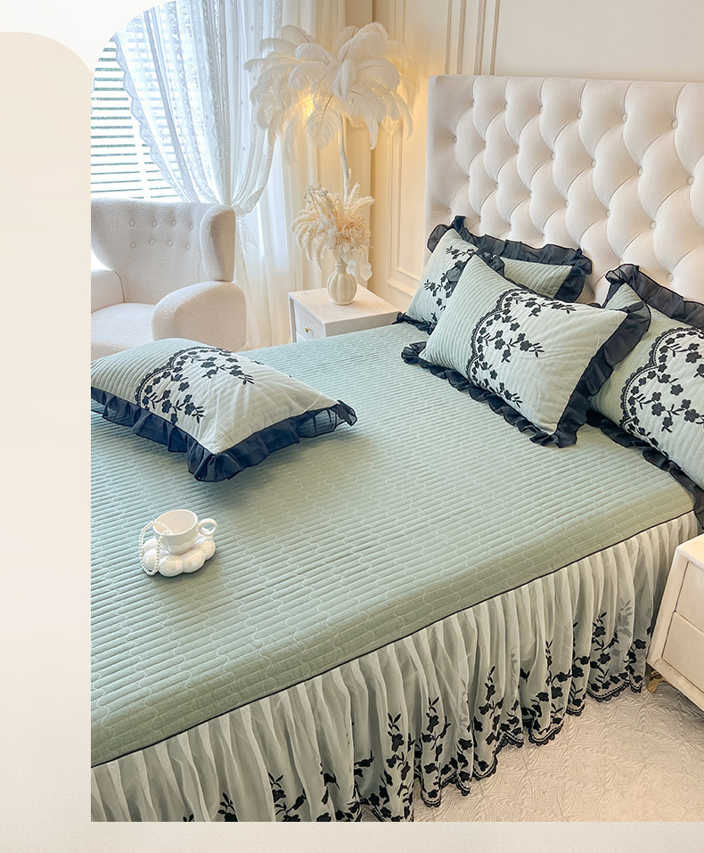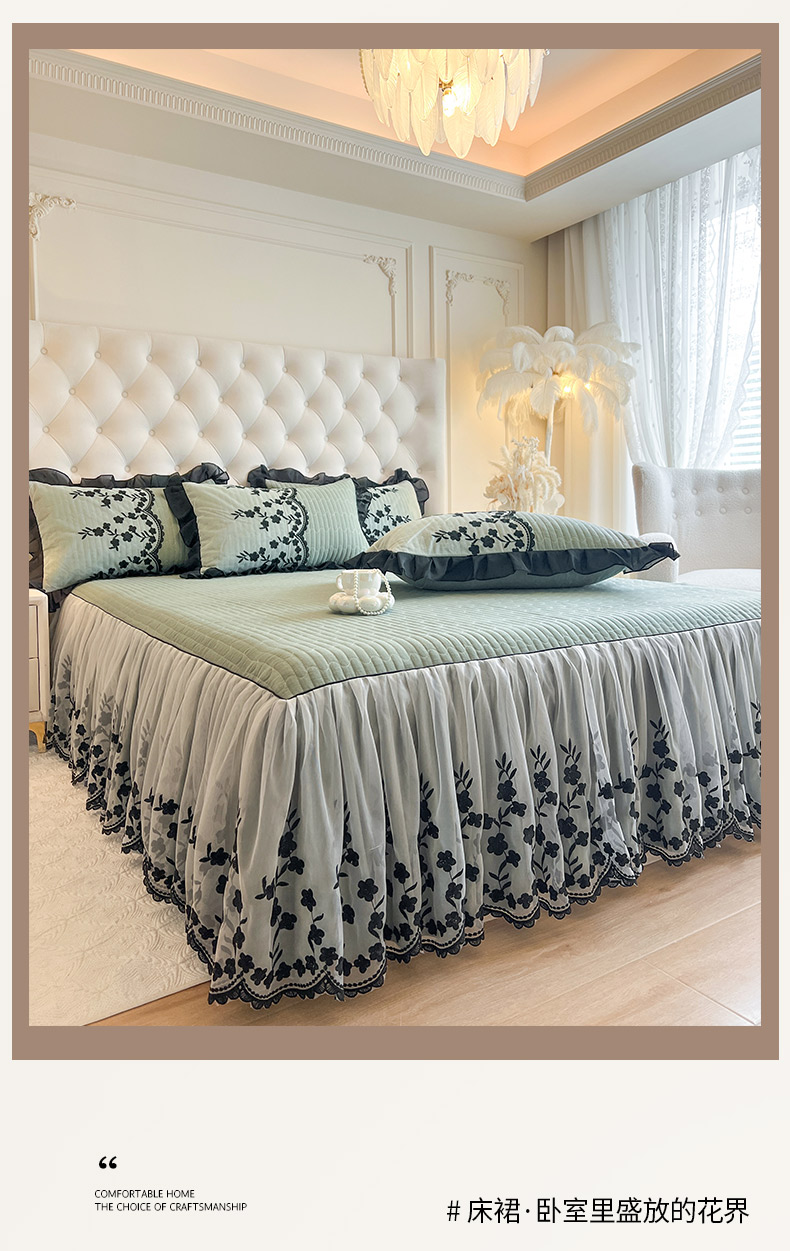 • 91家纺网 家纺一手货源 找家纺 恋尚 2025春夏新款香云纱床裙单床裙床裙单件-赫本妮娅 赫本妮娅-橄榄绿
