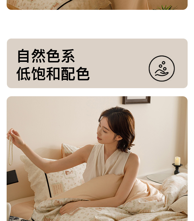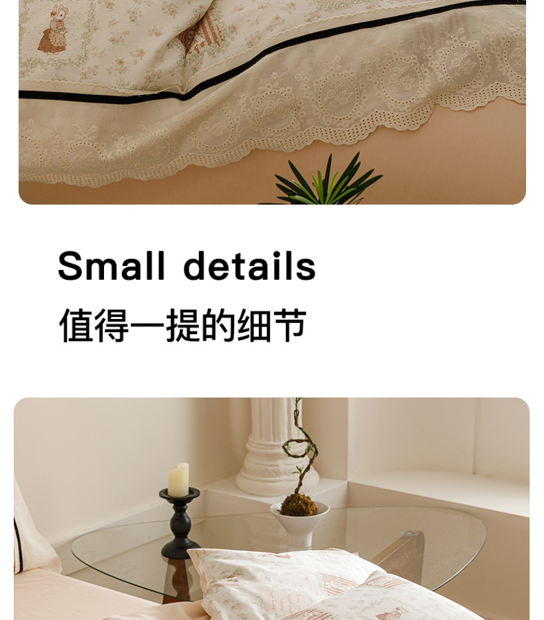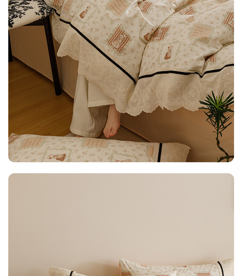 商品名称:卡姿家纺 2025新款小法式镂空棉布花边款四件套 兔公主