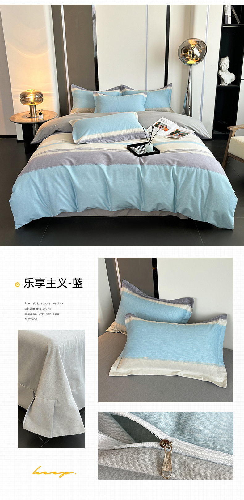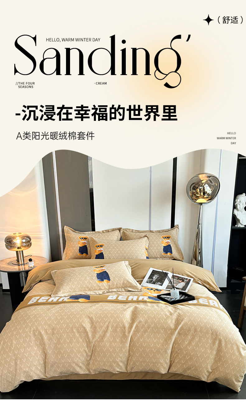 商品名称:慕木家纺 2025新款A类高端无印风卡通高克重170克阳光暖绒单被套单品被套单件被套系列 乐享主义-蓝