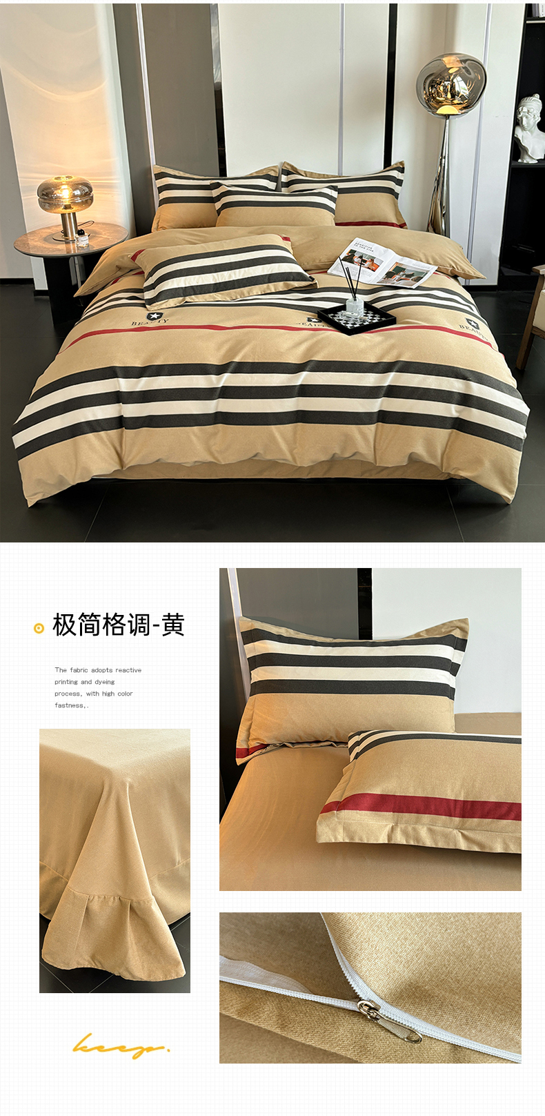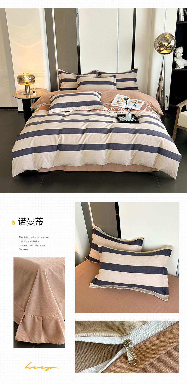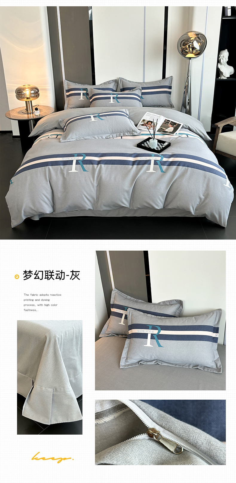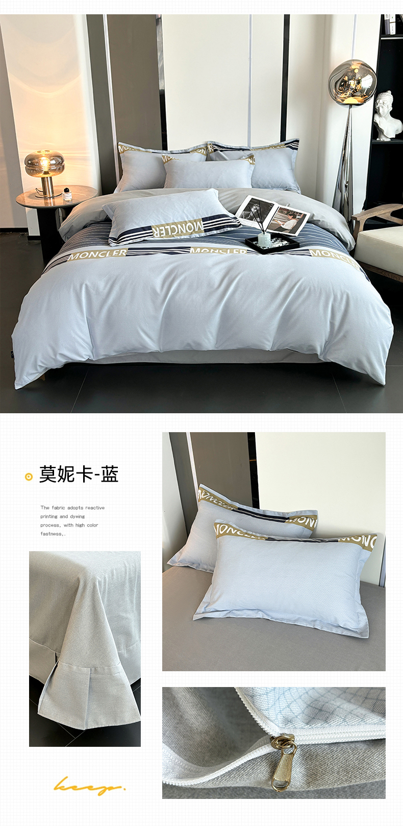 (总)慕木家纺 2025新款高克重简约无印风牛奶绒双拼四件套,宾利蓝+浅灰,米驼+奶茶咖,浅灰+米金,双拼套件-豆沙+灰