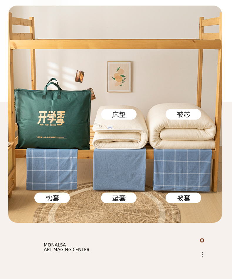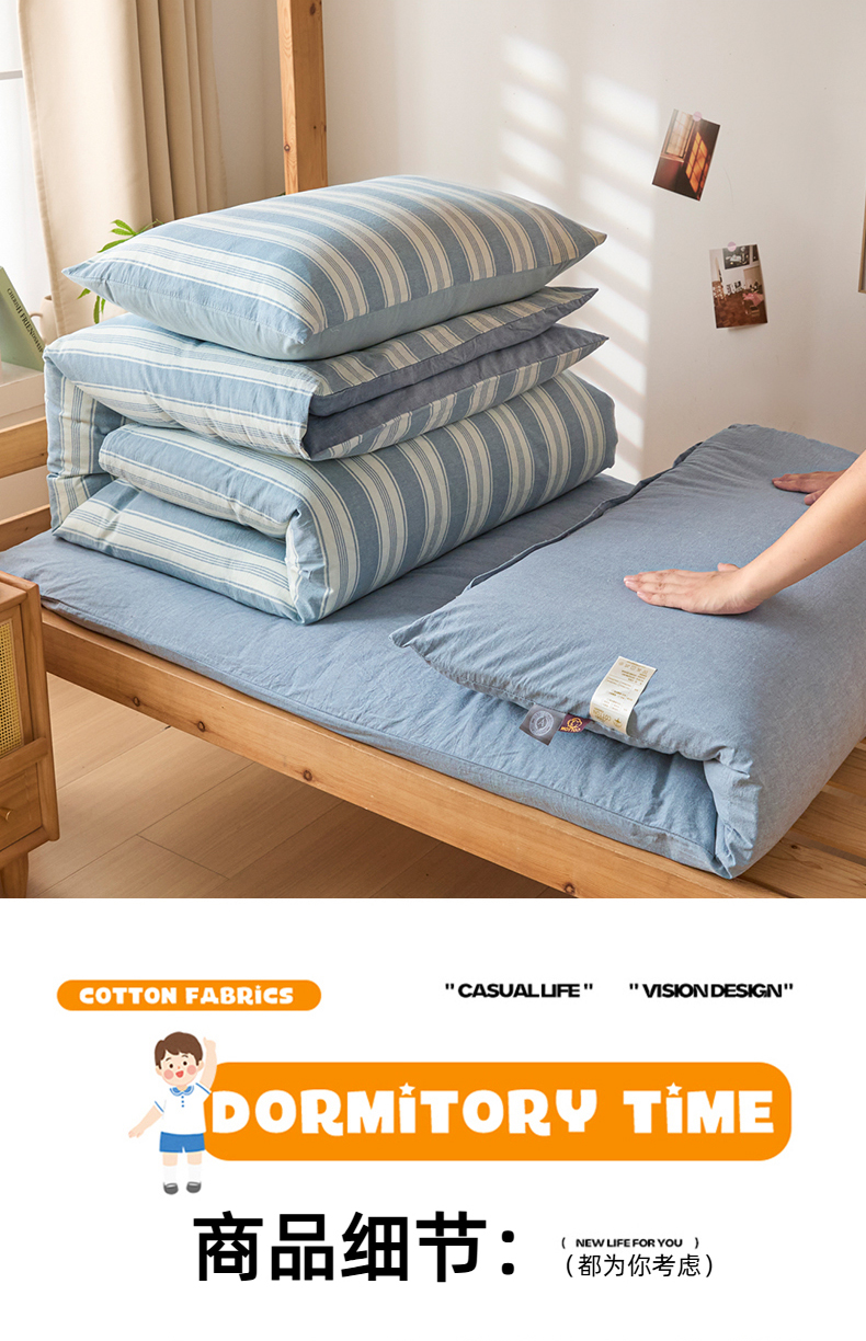 学生三件套+棉被4斤+棉垫3斤+枕头