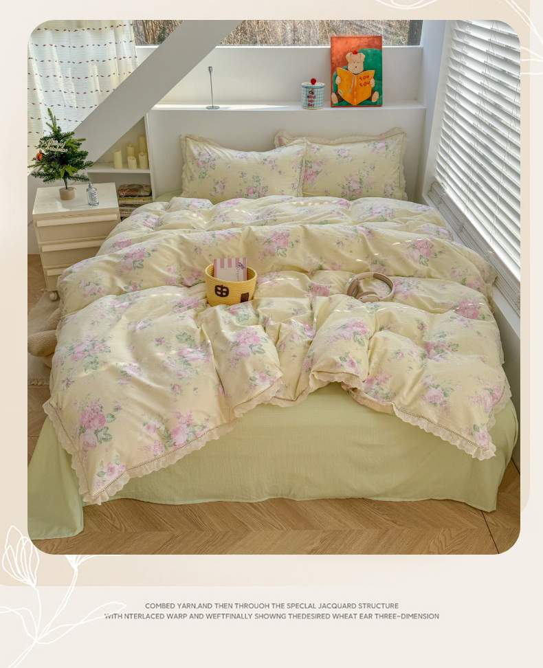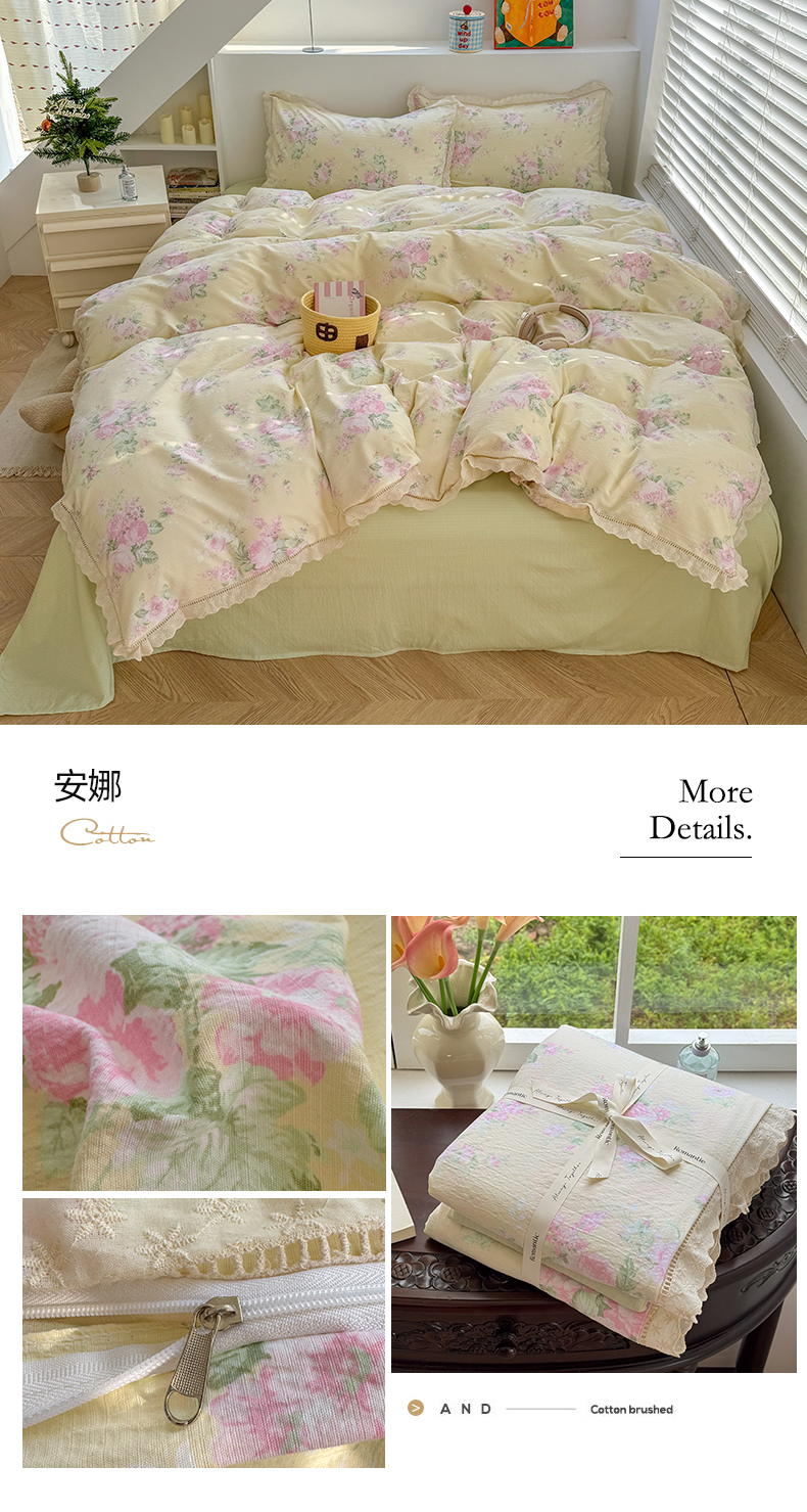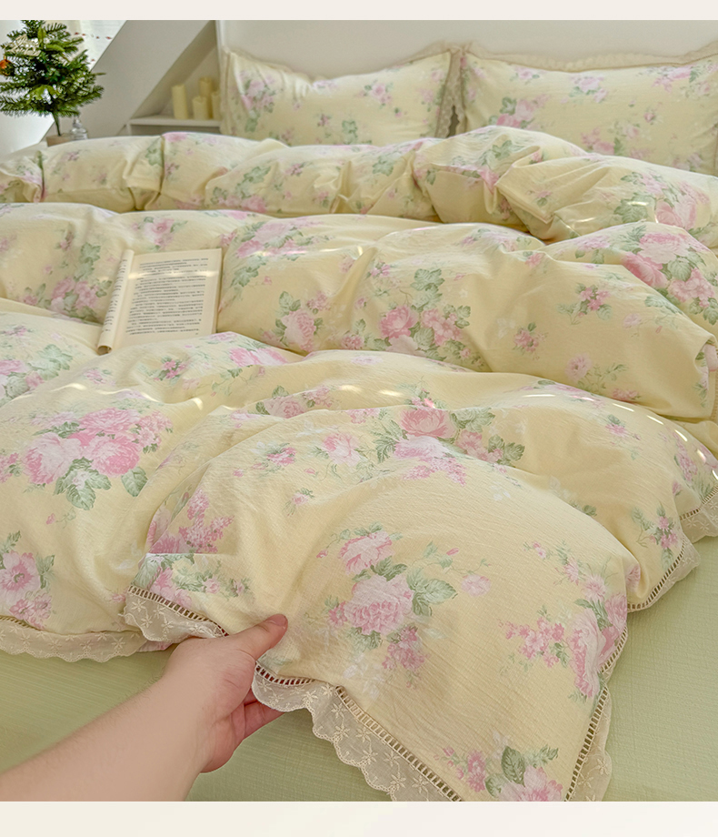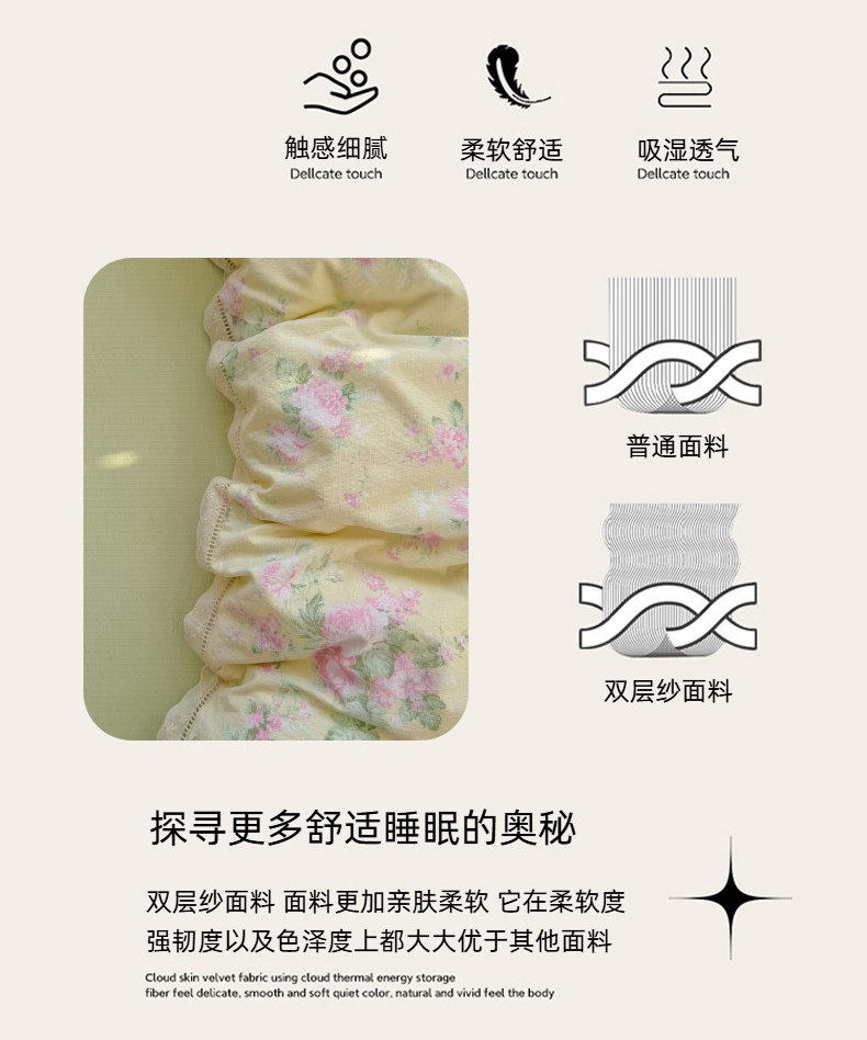 当前位置: 91家纺网 > 商品网购 > 床品套件 > 四件套 > 其它四件套 > 艾特你 2025新款云感双层纱镂空花边四件套 花边款-安娜花园
