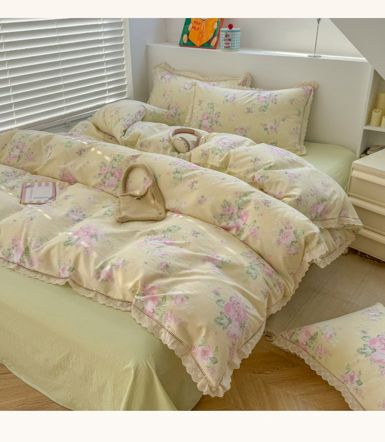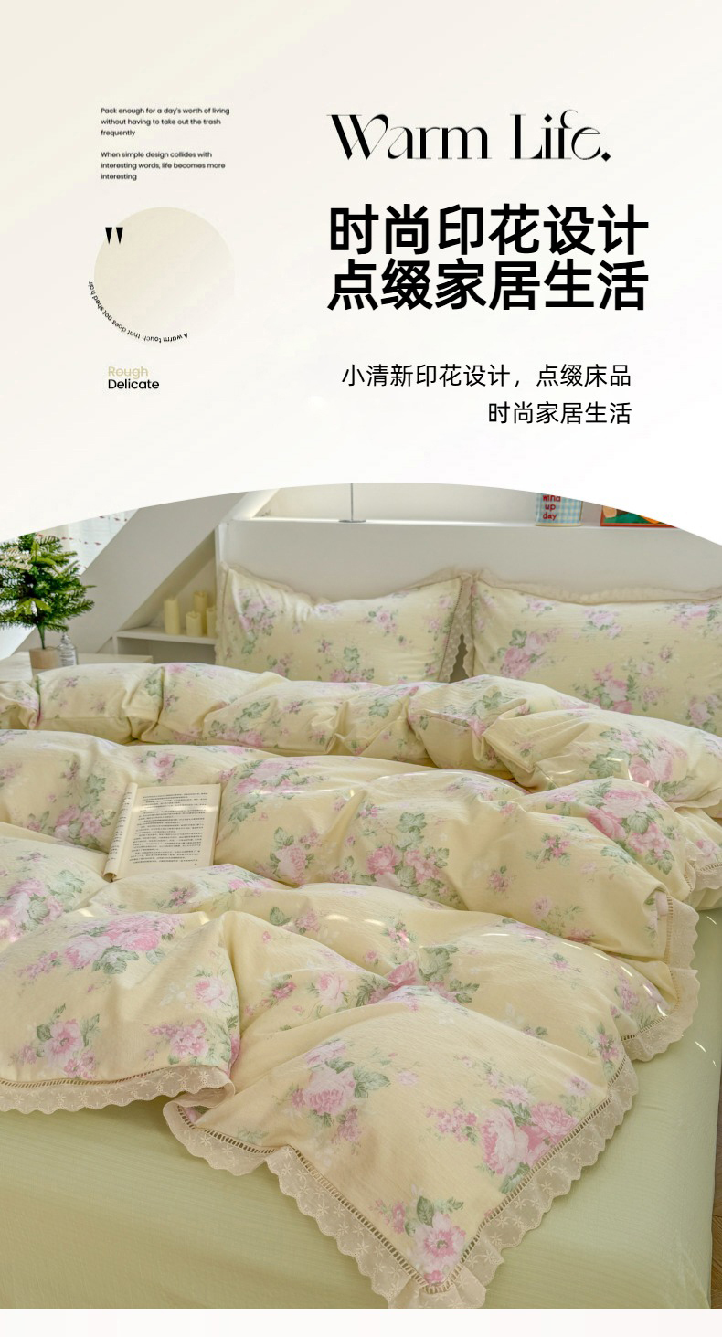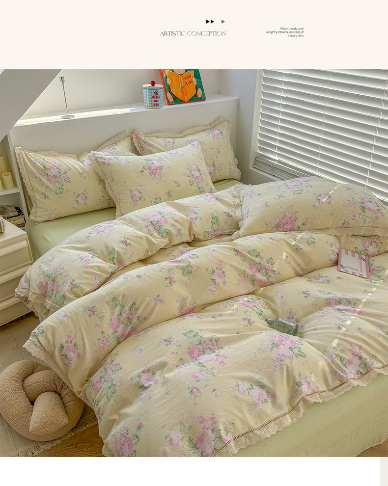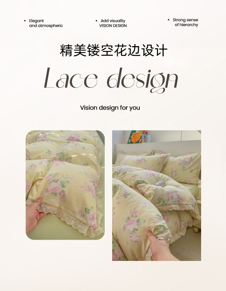 当前位置: 91家纺网 > 商品网购 > 床品套件 > 四件套 > 其它四件套 > 艾特你 2025新款云感双层纱镂空花边四件套 花边款-安娜花园