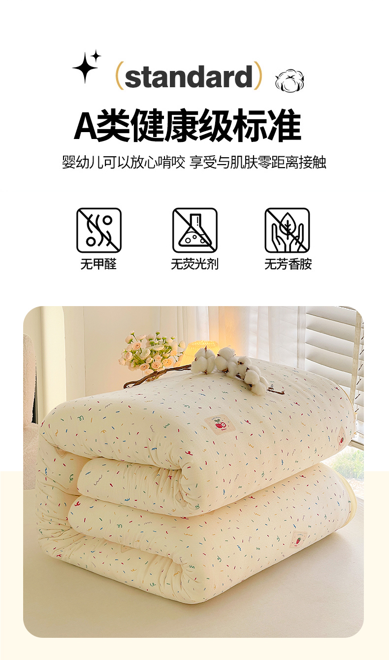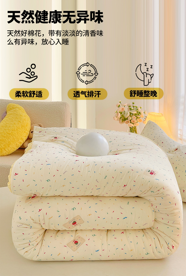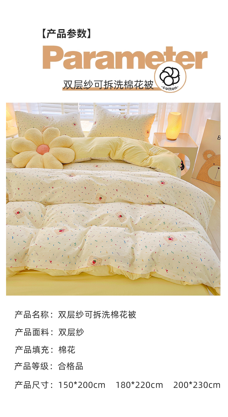 • 91家纺网 家纺一手货源 找家纺 2025新款双层纱可拆洗棉花被 樱桃点点