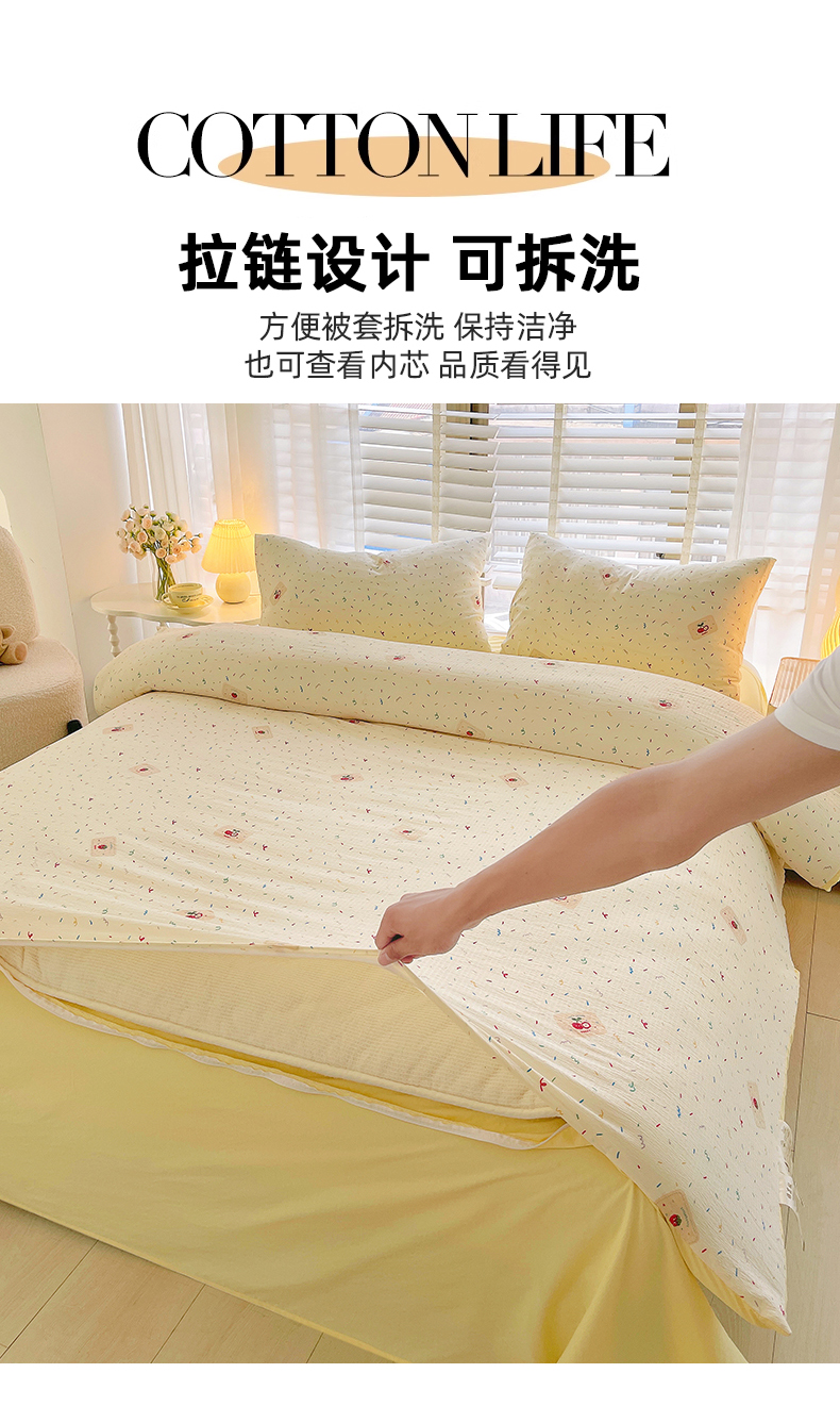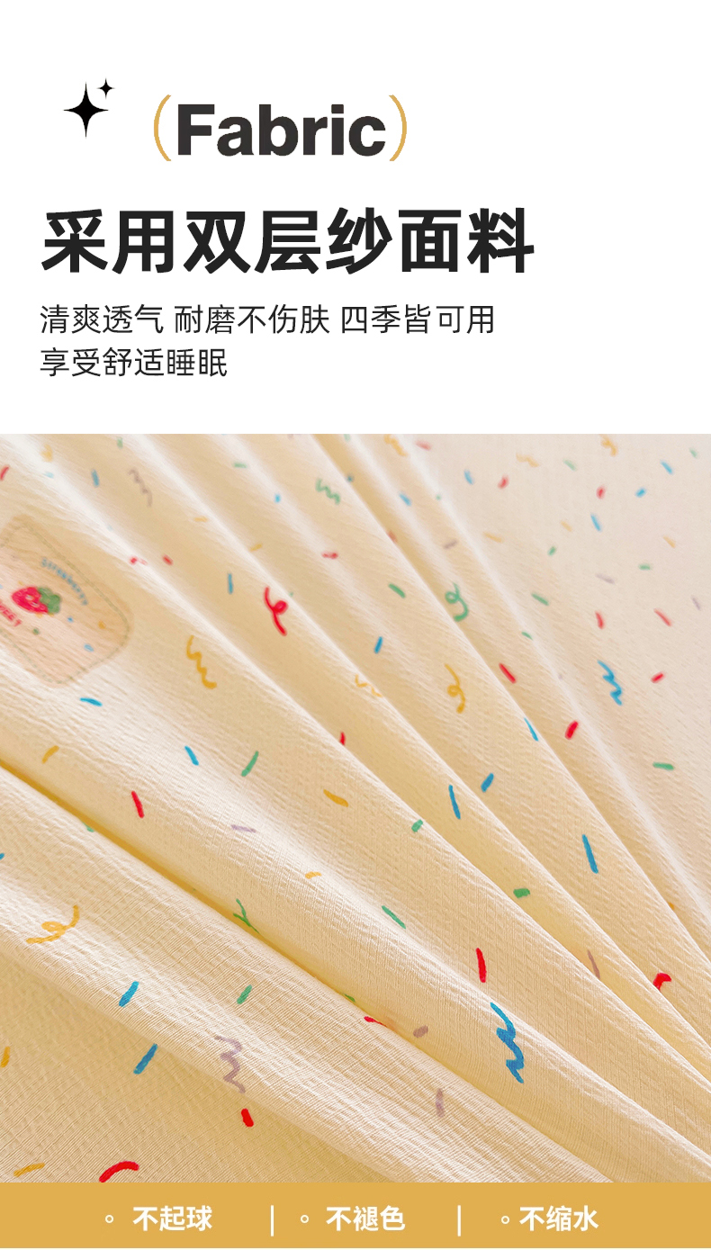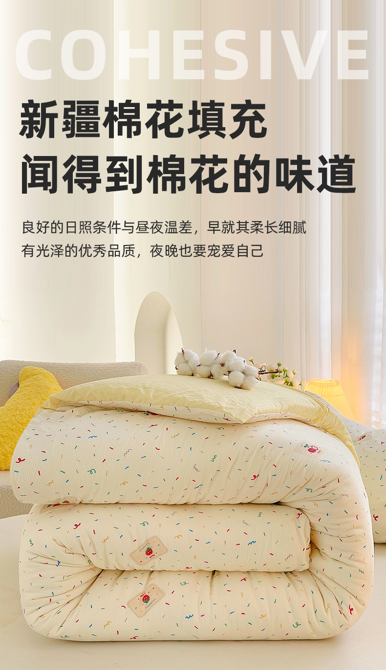 • 91家纺网 家纺一手货源 找家纺 2025新款双层纱可拆洗棉花被 樱桃点点