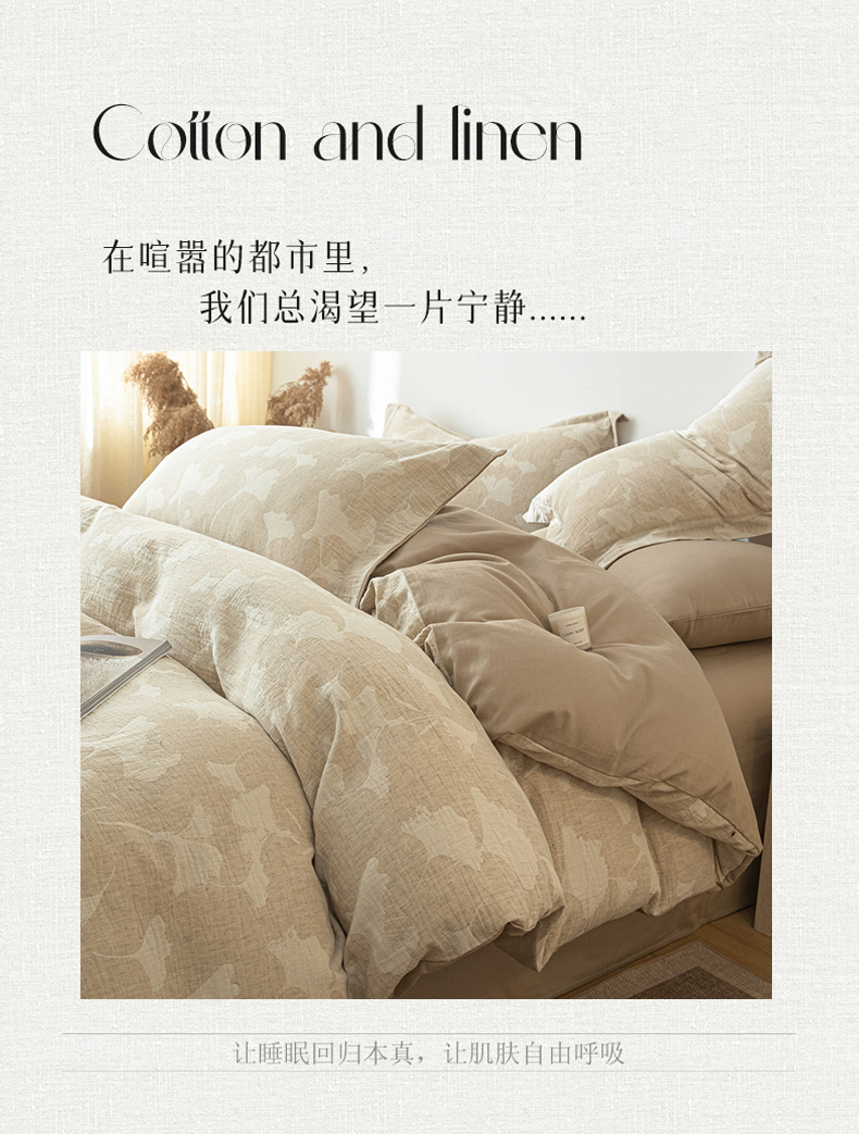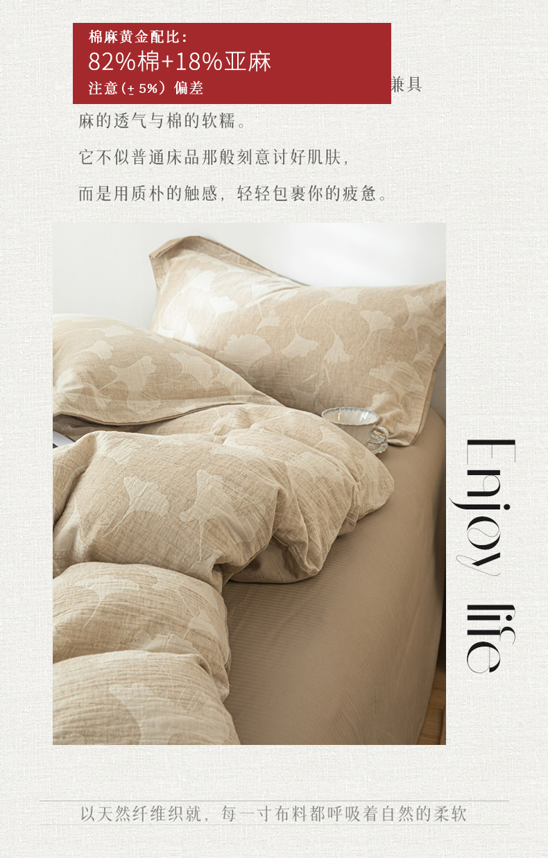 当前位置: 91家纺网 > 商品网购 > 床品套件 > 四件套 > 其它四件套 > 眠博士 2025新款AB面40支棉麻色织提花四件套 棉麻套件-银杏叶