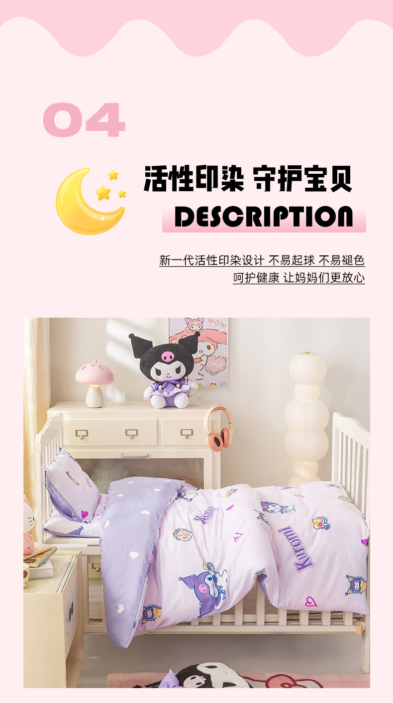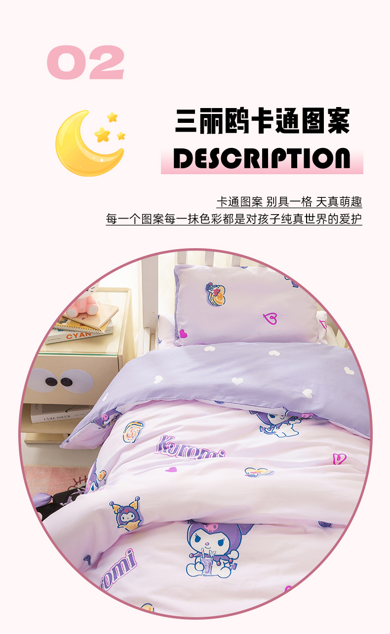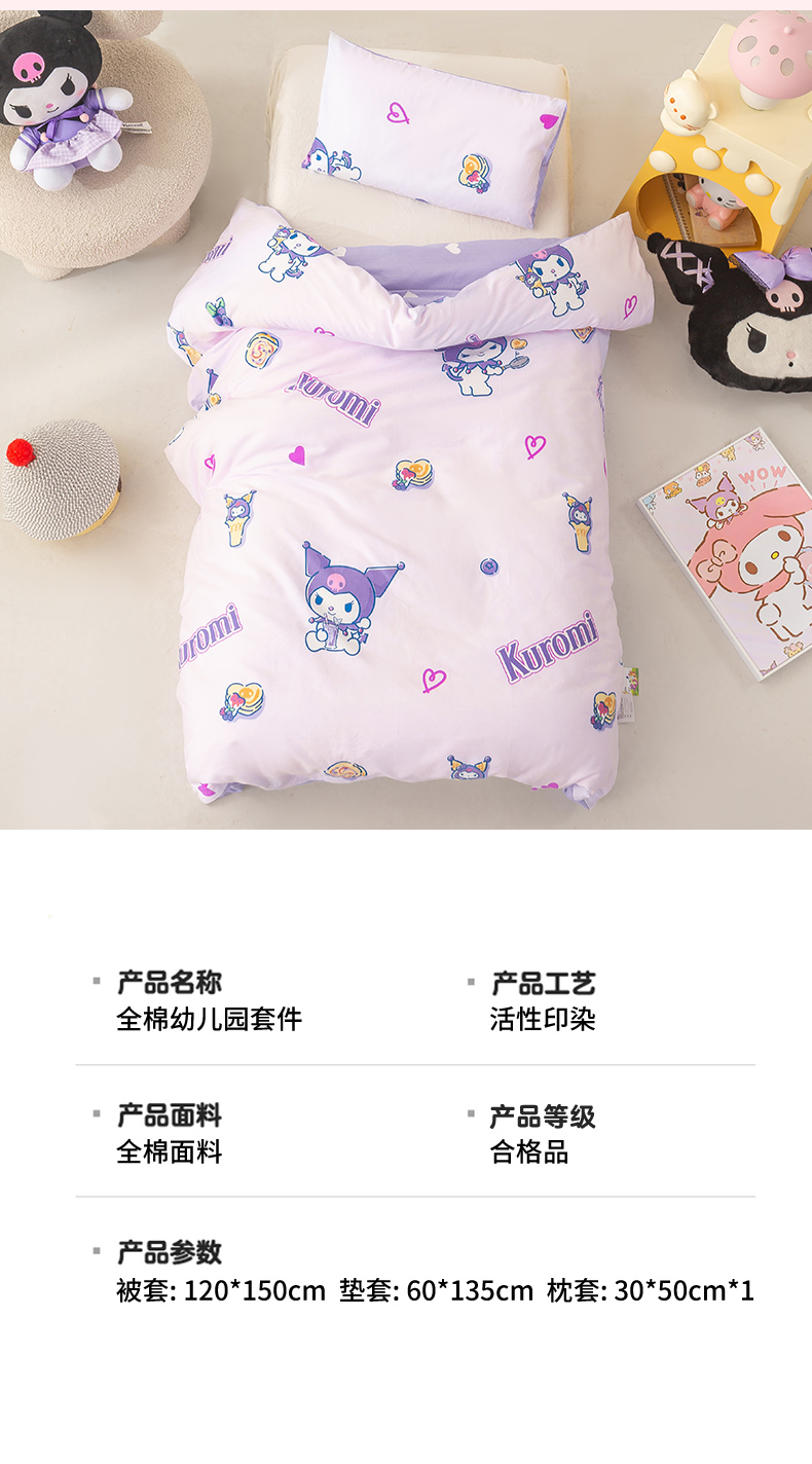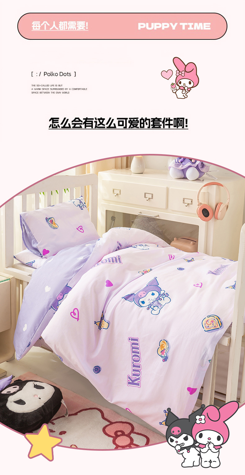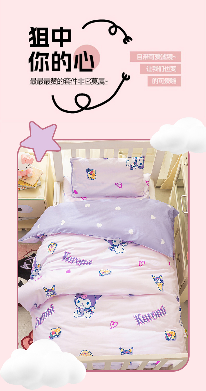 商品名称:博雅 2025新款三丽欧全棉纯棉幼儿园三套件宿舍三件套上下铺三件套 多彩库洛米