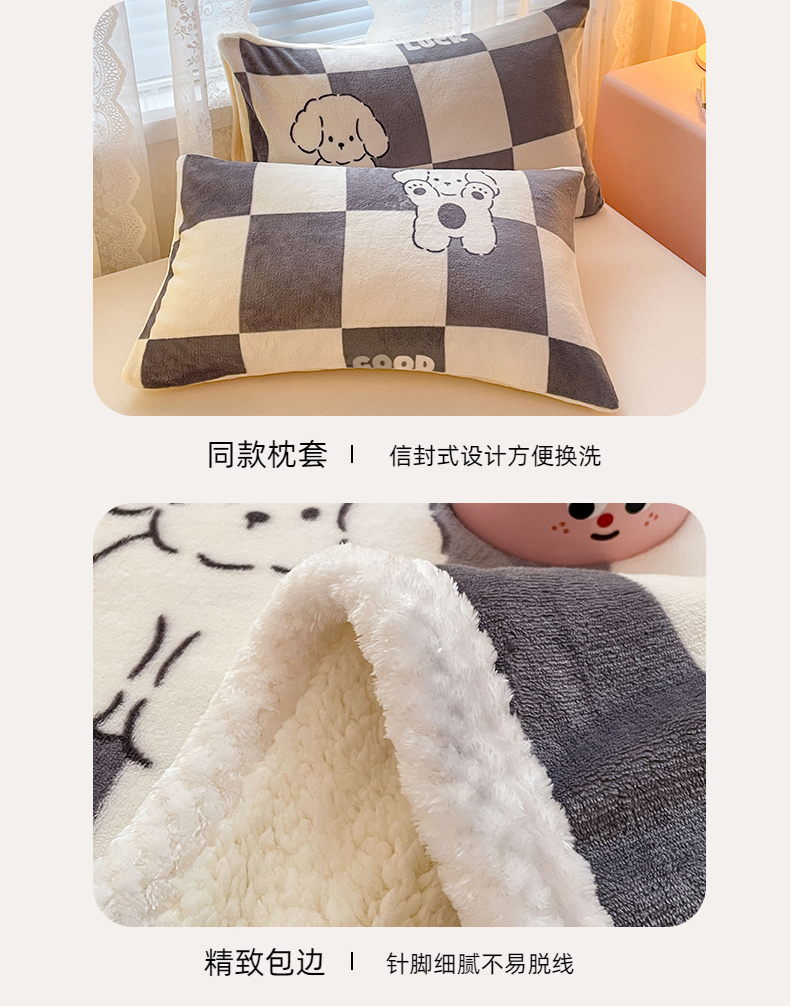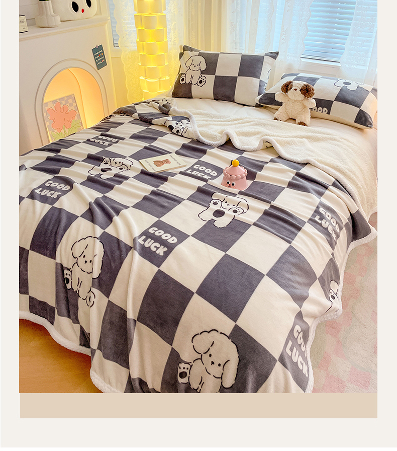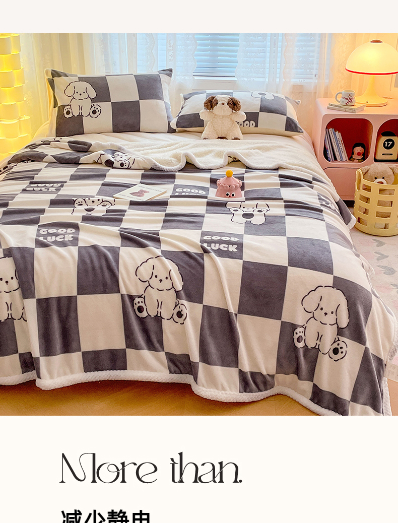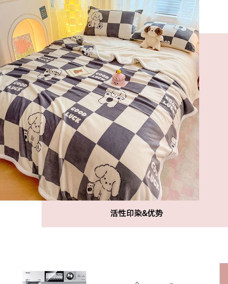 商品名称:锦润家纺 2025年新款牛奶绒羊羔绒AB版包边毛毯好运小狗