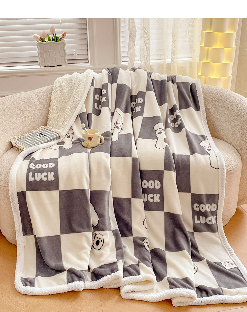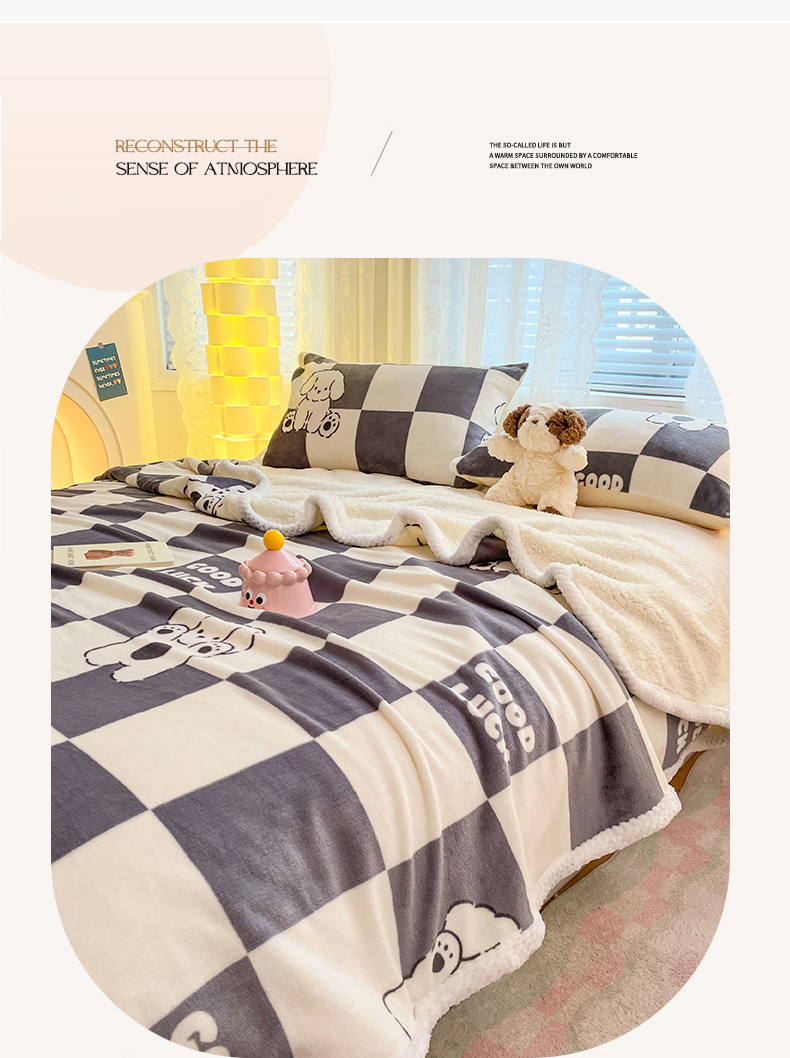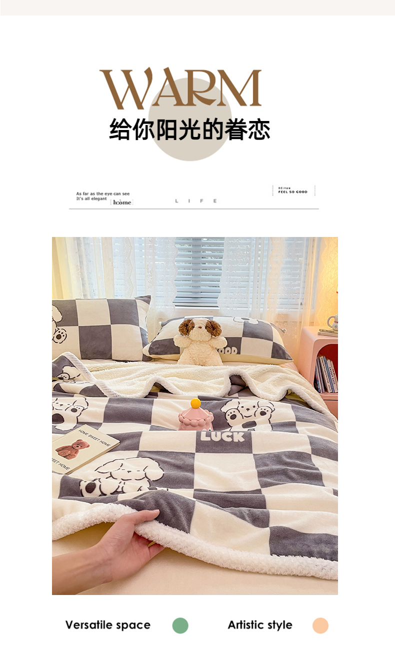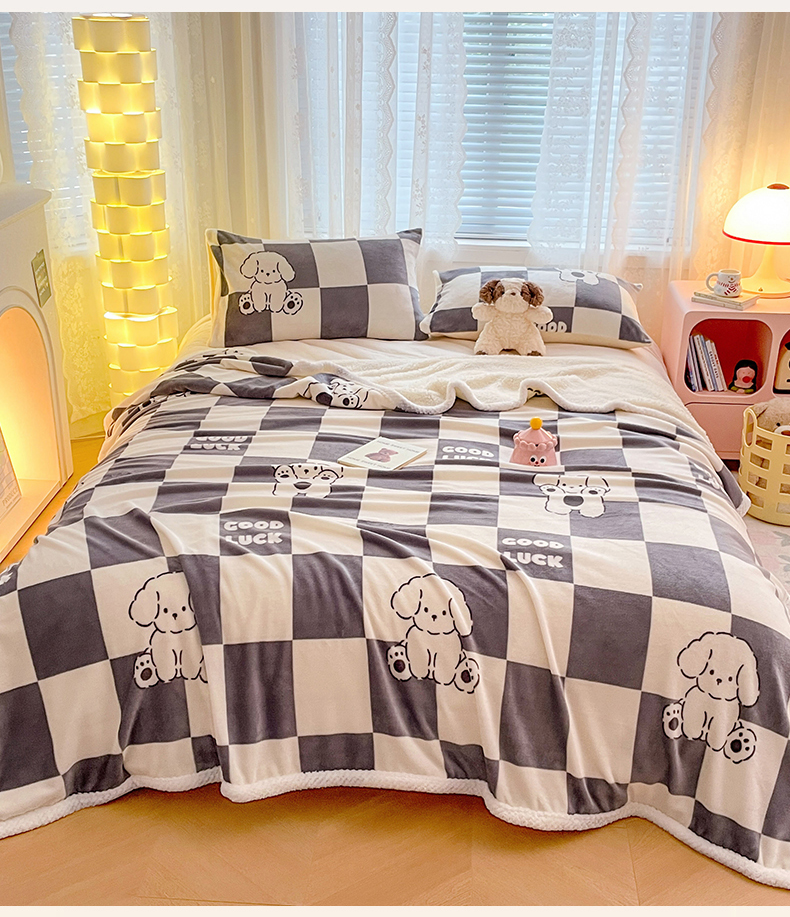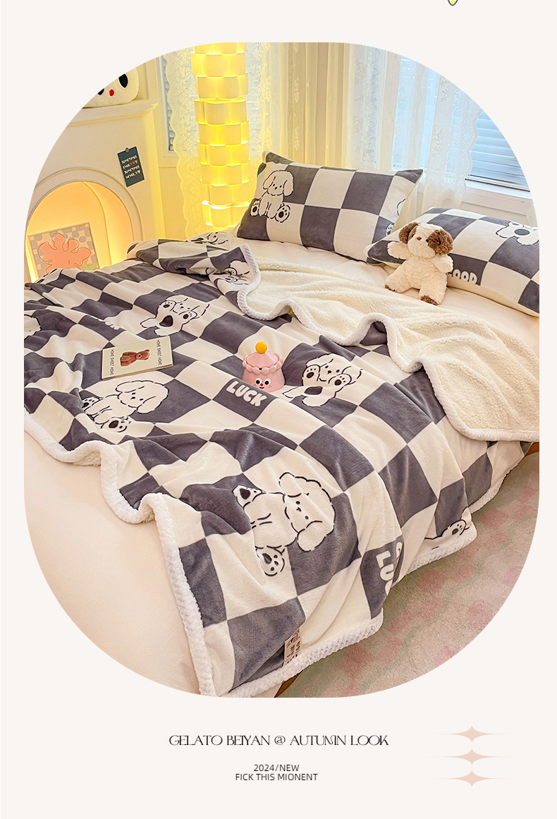 锦润家纺 2025年新款牛奶绒羊羔绒AB版包边毛毯好运小狗