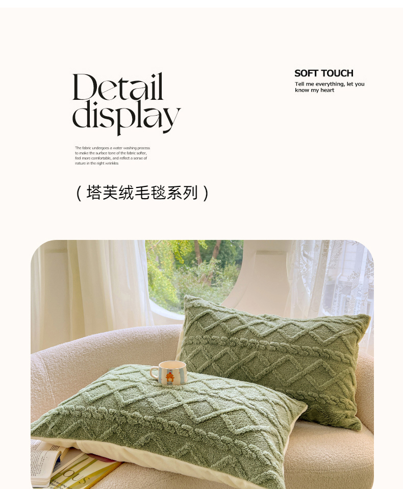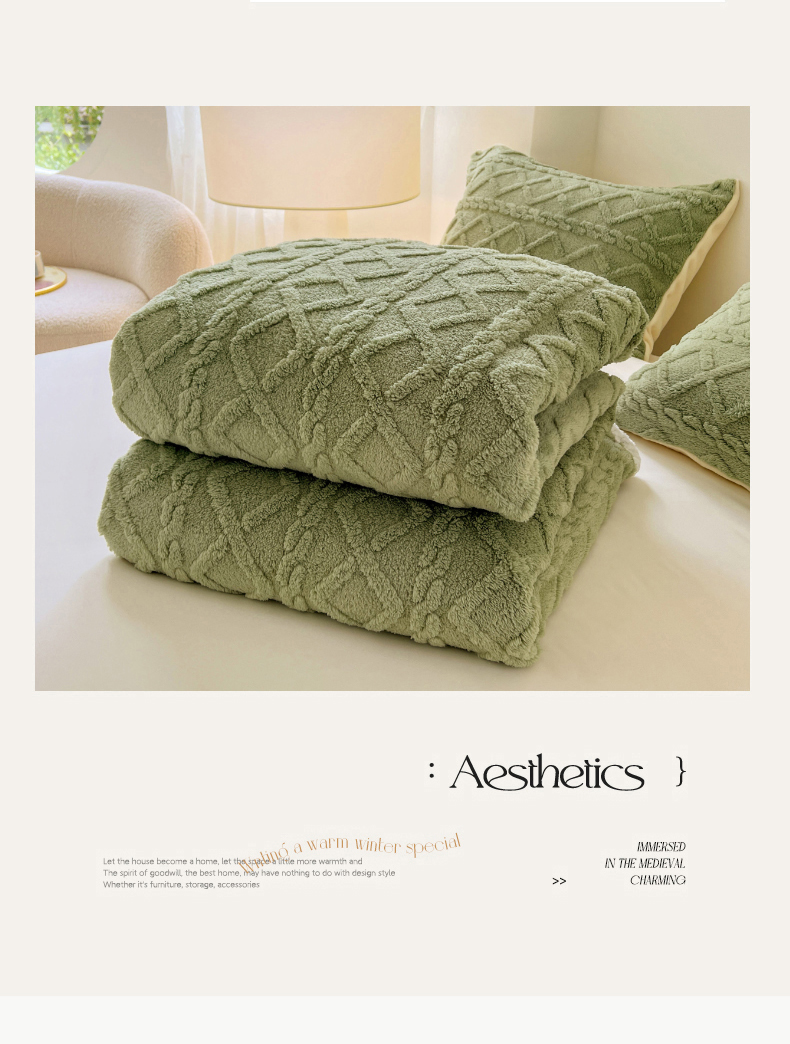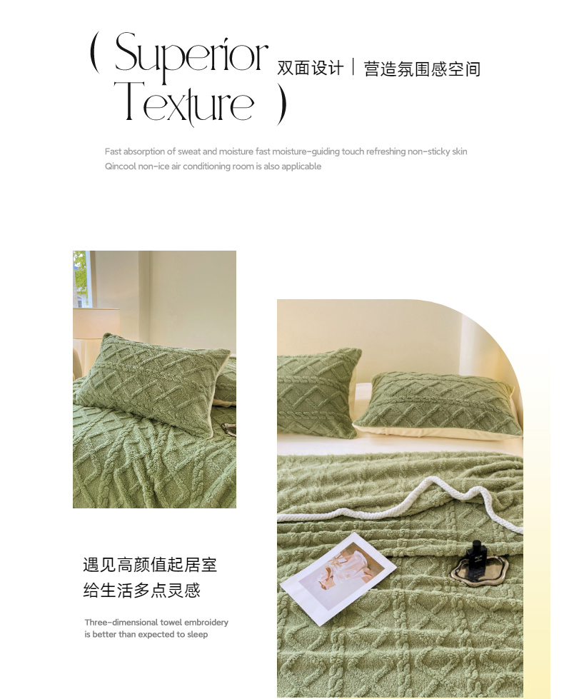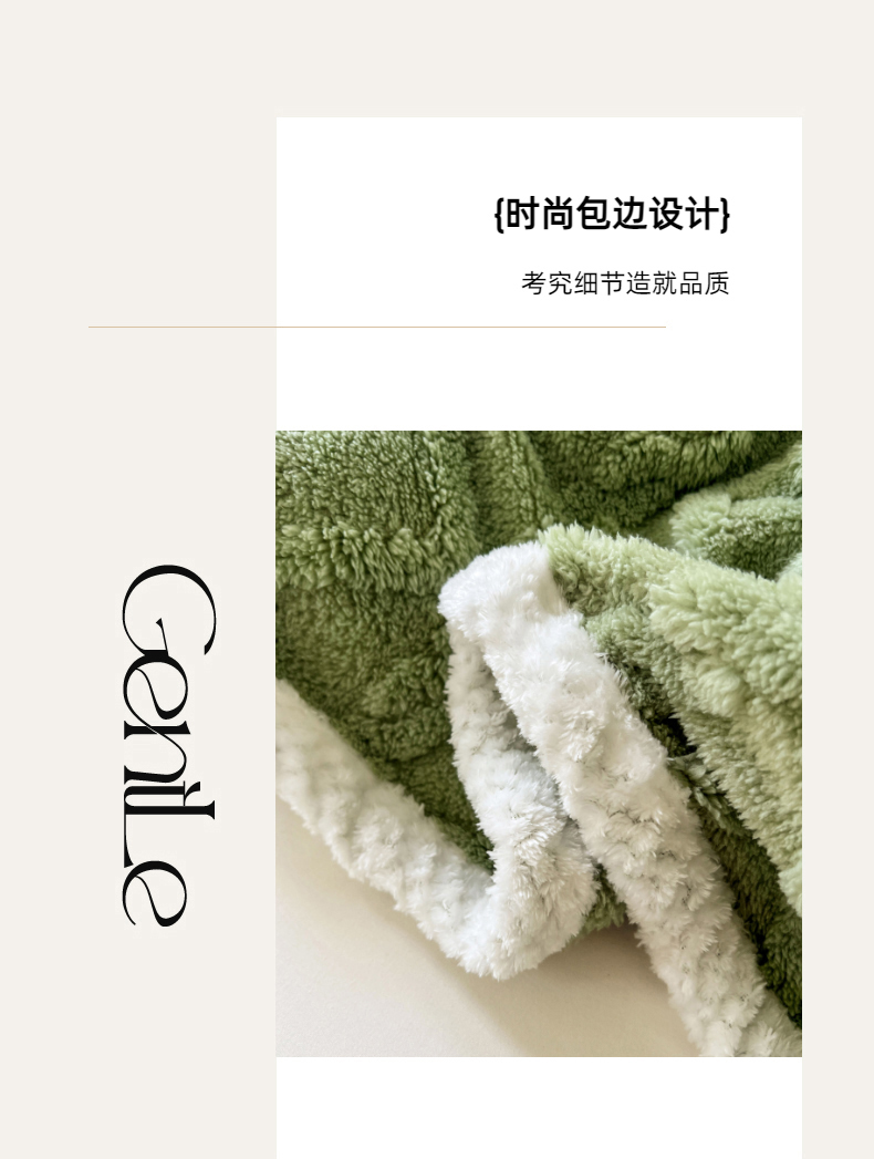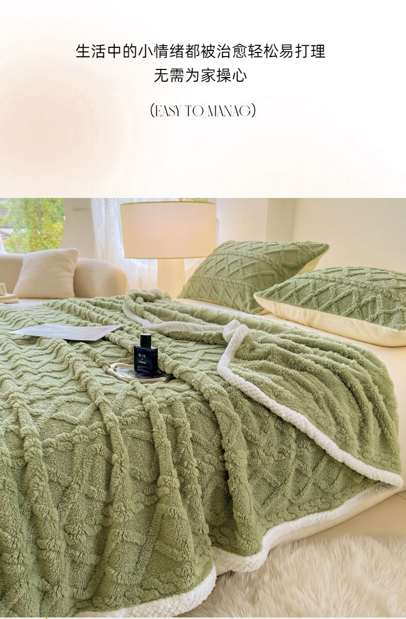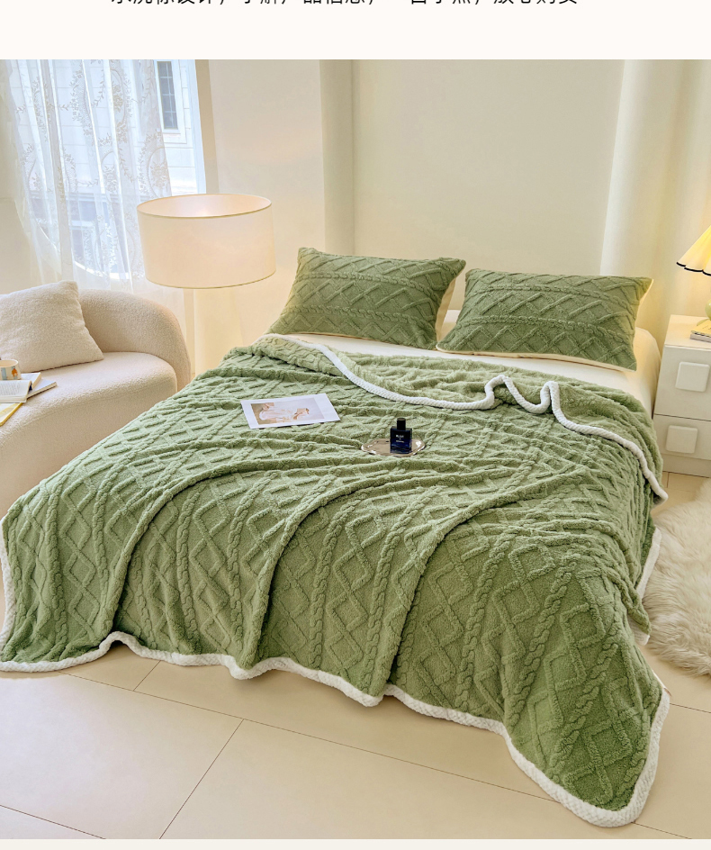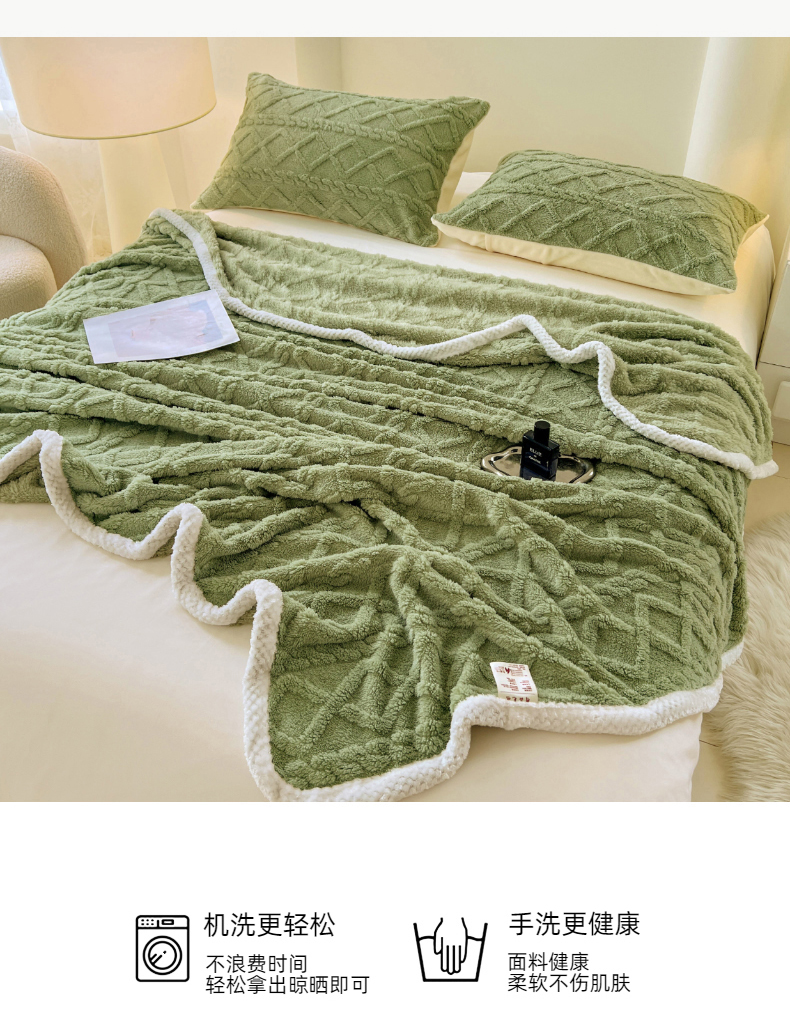 商品名称:锦润家纺 2025新款A类双面塔芙绒包边毛毯塔芙绒-抹茶绿
