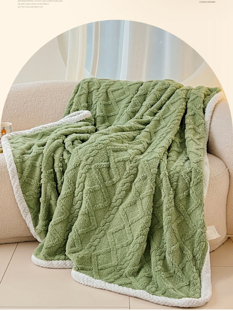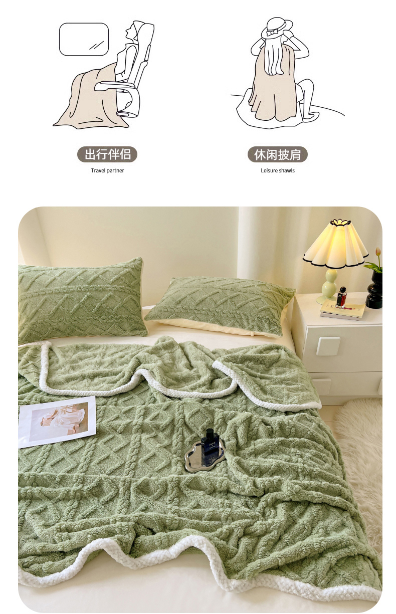 锦润家纺 2025新款A类双面塔芙绒包边毛毯塔芙绒-抹茶绿