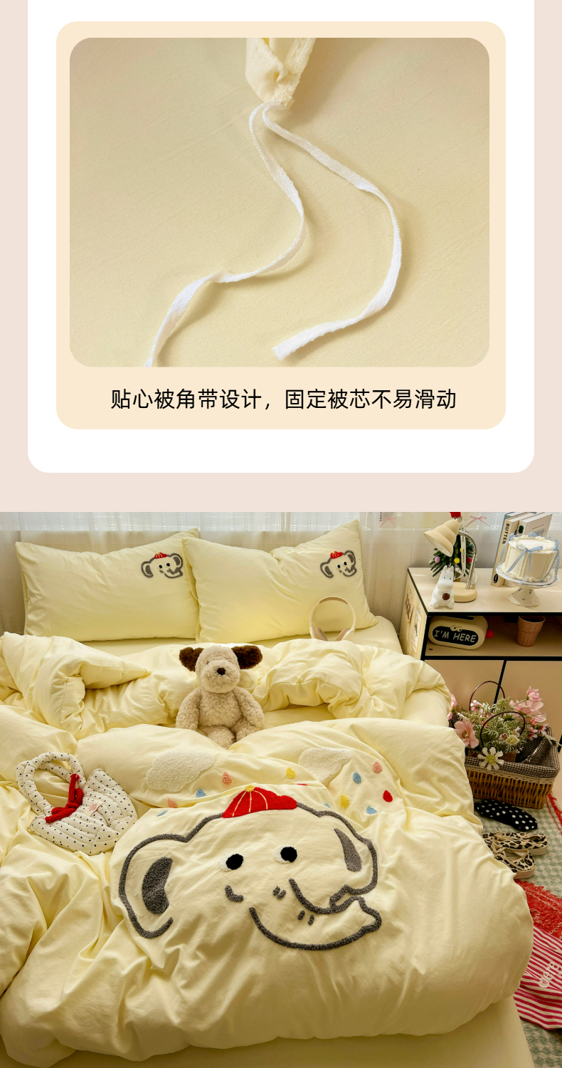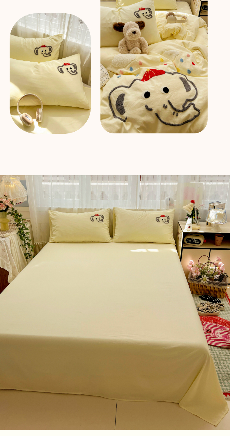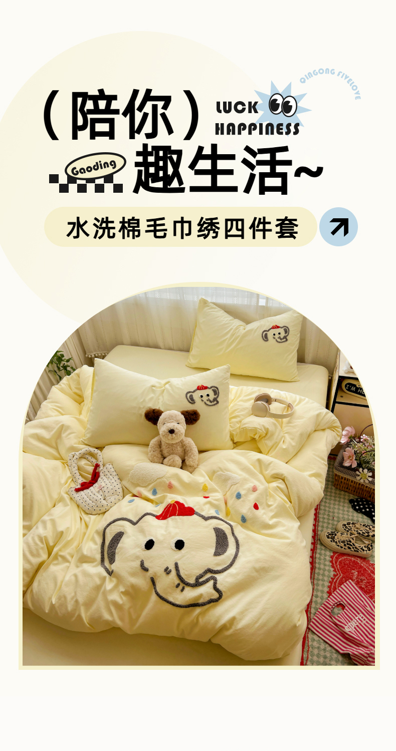 当前位置: 91家纺网 > 商品网购 > 床品套件 > 四件套 > 水洗棉四件套 > (总)凯洛奇 2025新款软糯水洗棉毛巾绣卡通四件套-奶油小象