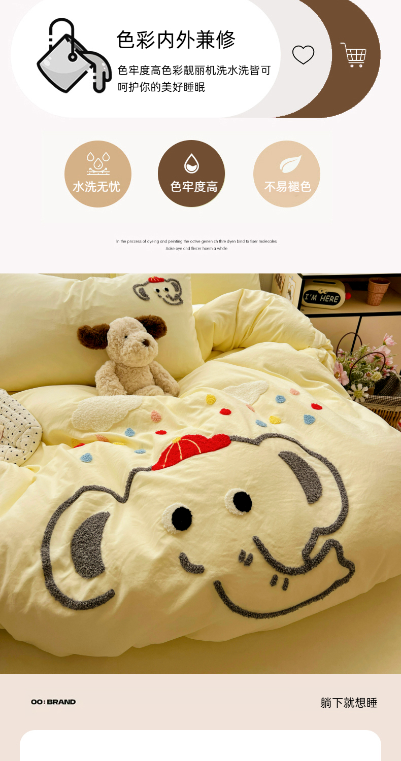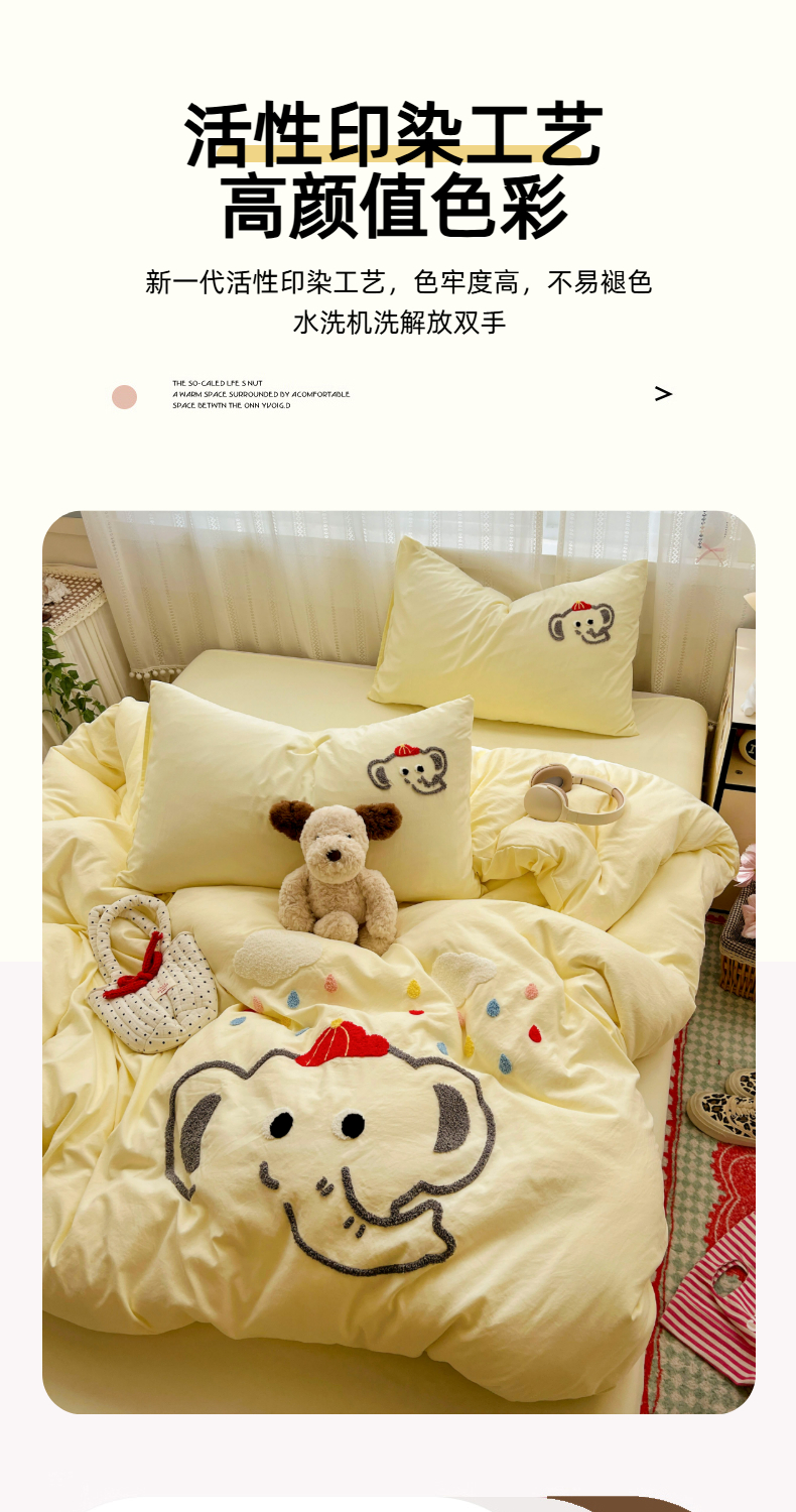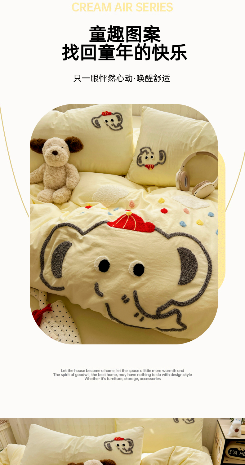 当前位置: 91家纺网 > 商品网购 > 床品套件 > 四件套 > 水洗棉四件套 > (总)凯洛奇 2025新款软糯水洗棉毛巾绣卡通四件套-奶油小象