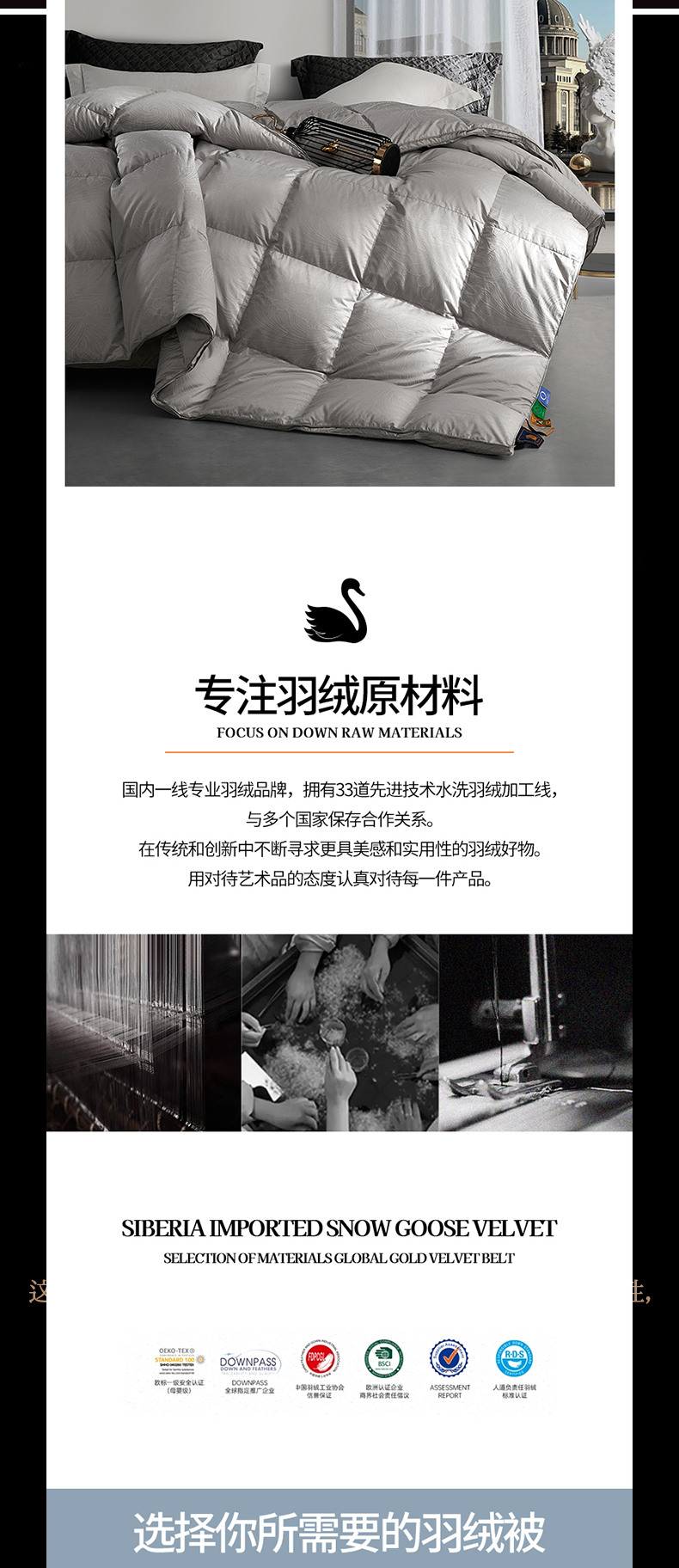 • 91家纺网 家纺一手货源 找家纺 (总)织梦人羽绒工厂店 2025新款高端100支长绒棉德国进口软银丝全棉95鹅绒羽绒被,凤翎-黑金
