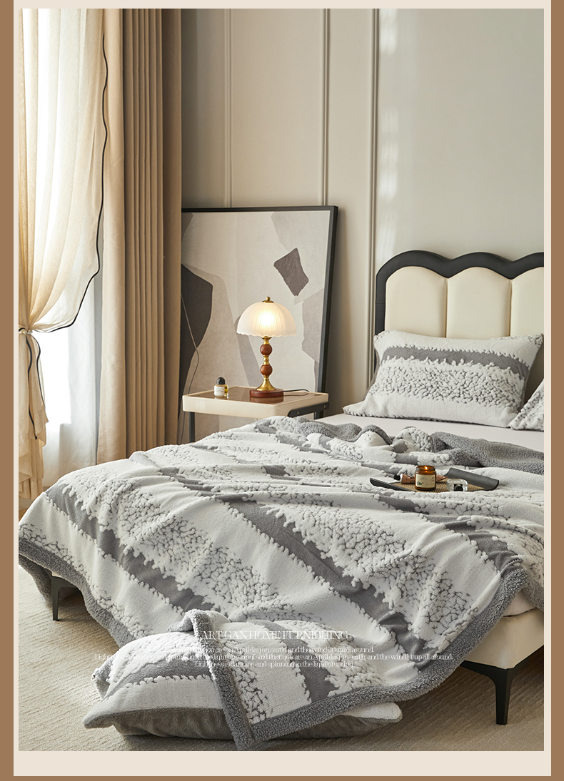 (总)莱家富 2026新款双层加厚阳离子提花毛毯羊羔绒毛毯盖毯办公室午休毯,浔彩-豆沙,浔彩-果绿,浔彩-灰色,浔彩-奶白,浔彩-天蓝,浔彩-驼色