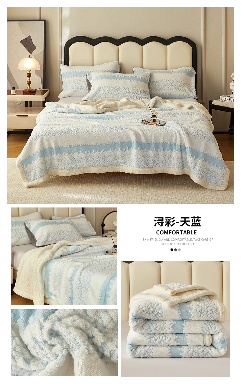 商品名称:莱家富 2026新款双层加厚阳离子提花毛毯羊羔绒毛毯盖毯办公室午休毯 浔彩-天蓝