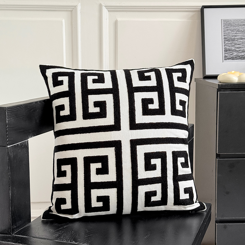 诺可 2025新款全棉黑白简约系毛巾绣抱枕枕头枕芯 黑白简约系-方格