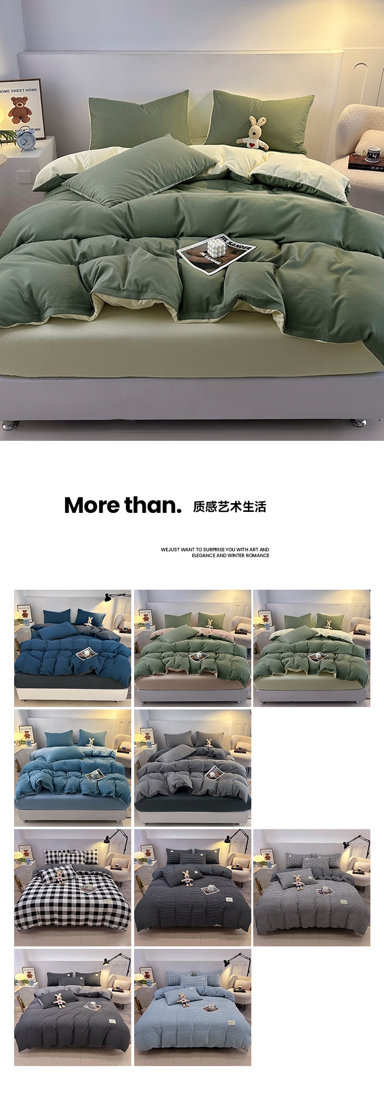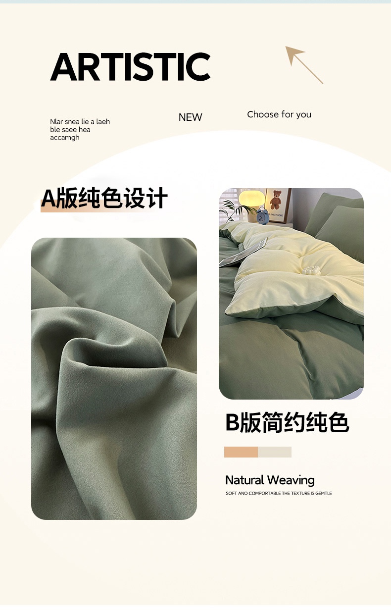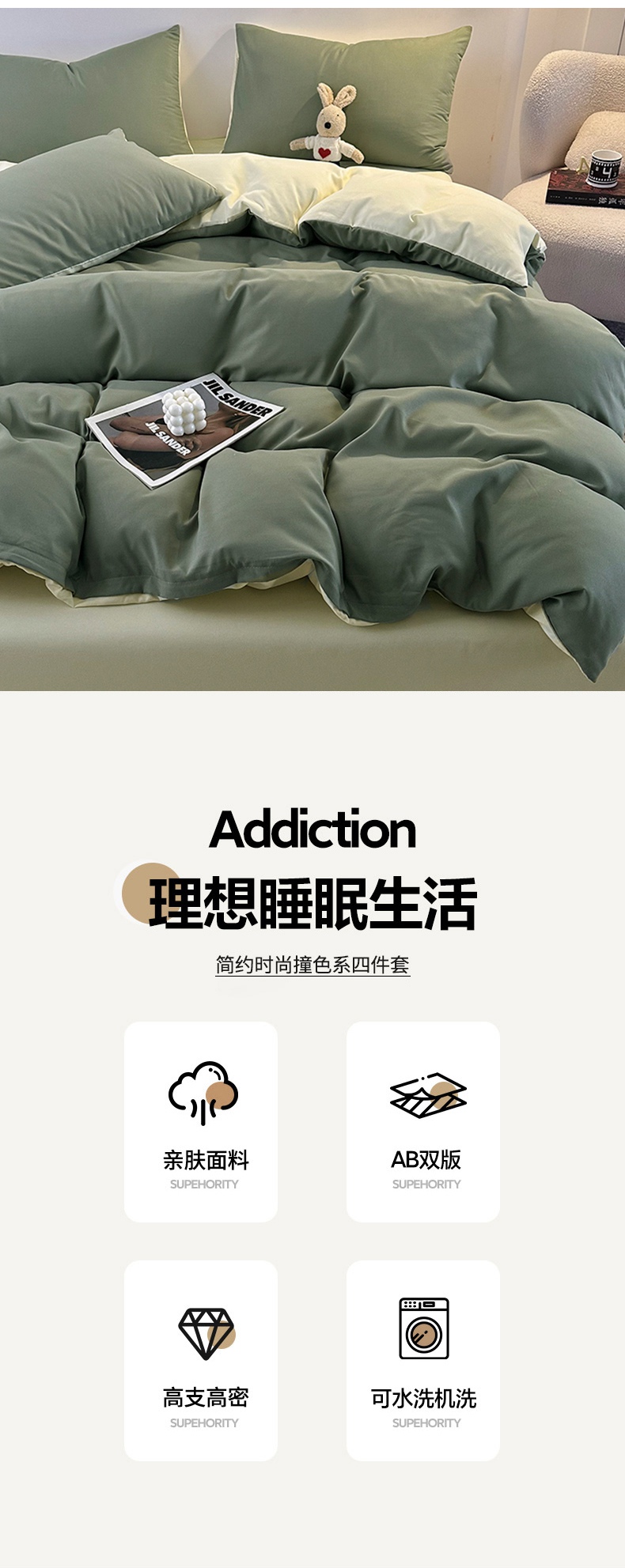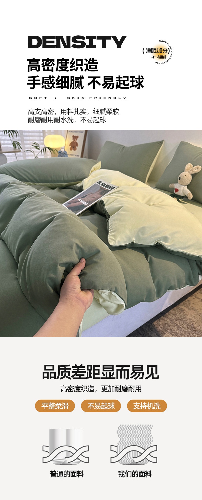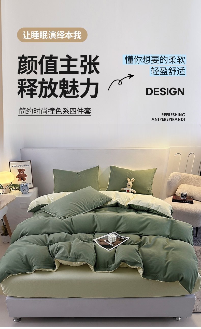 当前位置: 91家纺网 > 商品网购 > 床品套件 > 四件套 > 普通磨毛四件套 > 优纤家纺 2025新款简约亲肤四件套床单床笠学生三件套-纯色混搭系列 抹茶奶黄