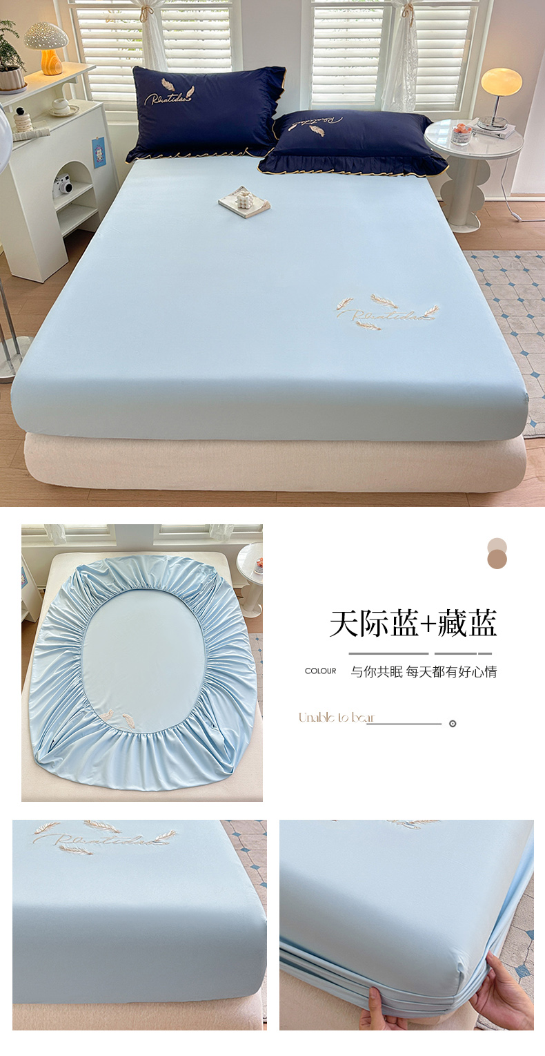 柔享家(原芷澜家纺) 2025新款法式纯色水洗棉刺绣绣花磨毛床笠汇总(有同款四件套) 天际蓝+藏蓝
