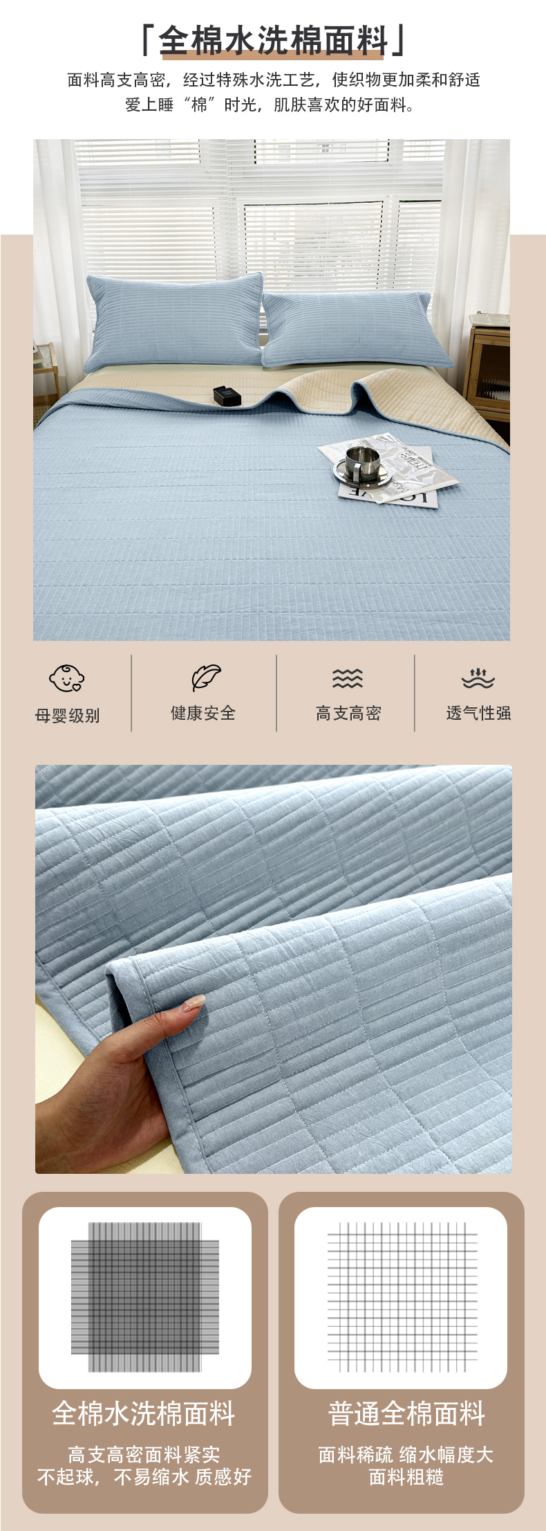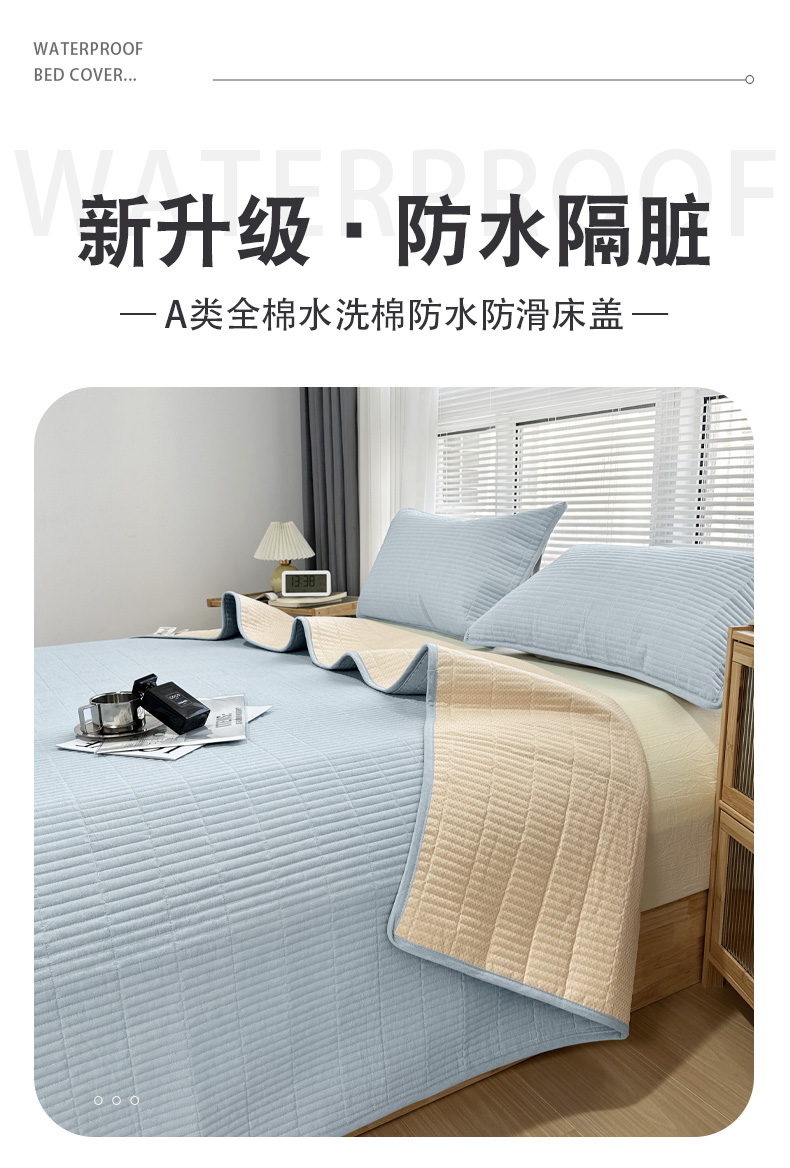 • 91家纺网 家纺一手货源 找家纺 拾小柒 2025新款全棉色织水洗棉夹棉防滑床盖防水款 卡其色