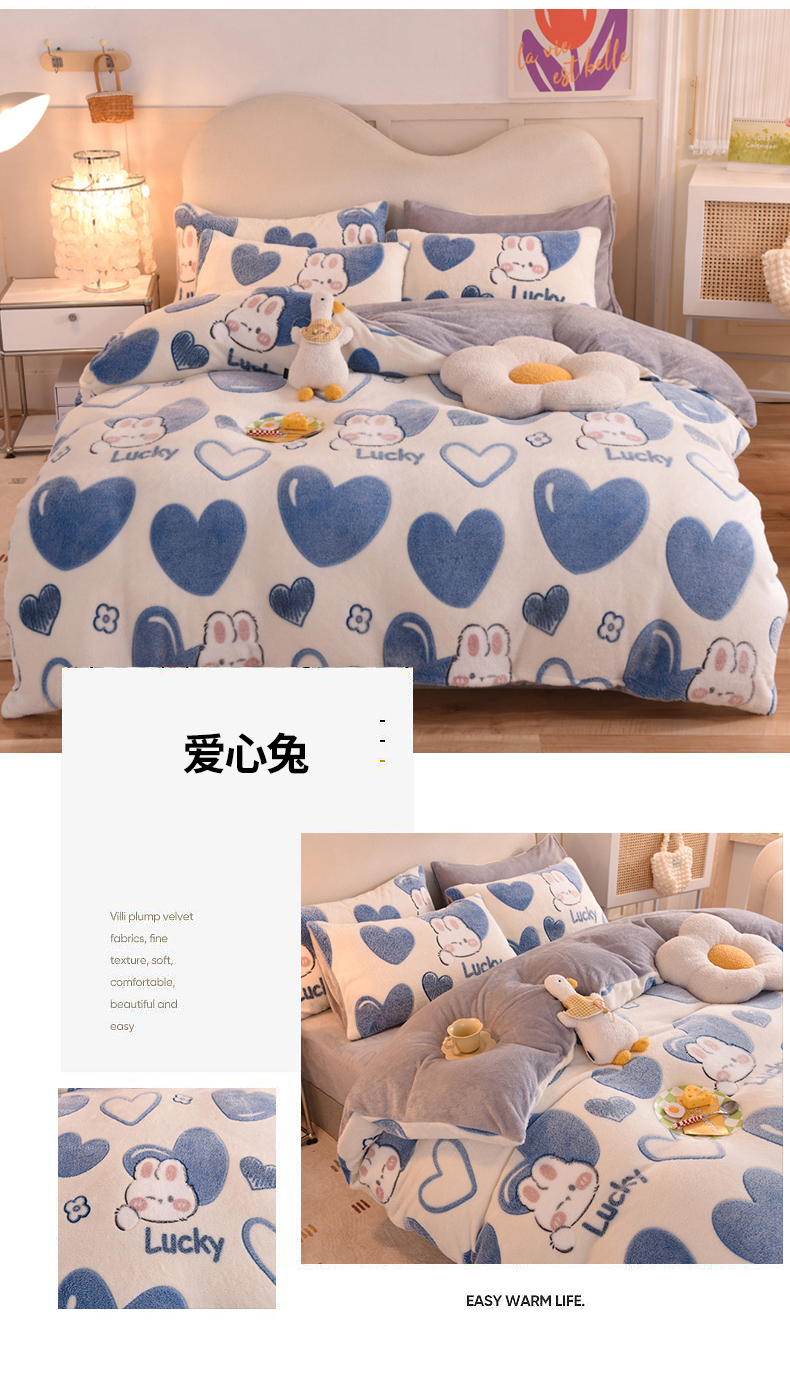 商品名称:慕梵家居2025新款雪花绒被套 爱心兔