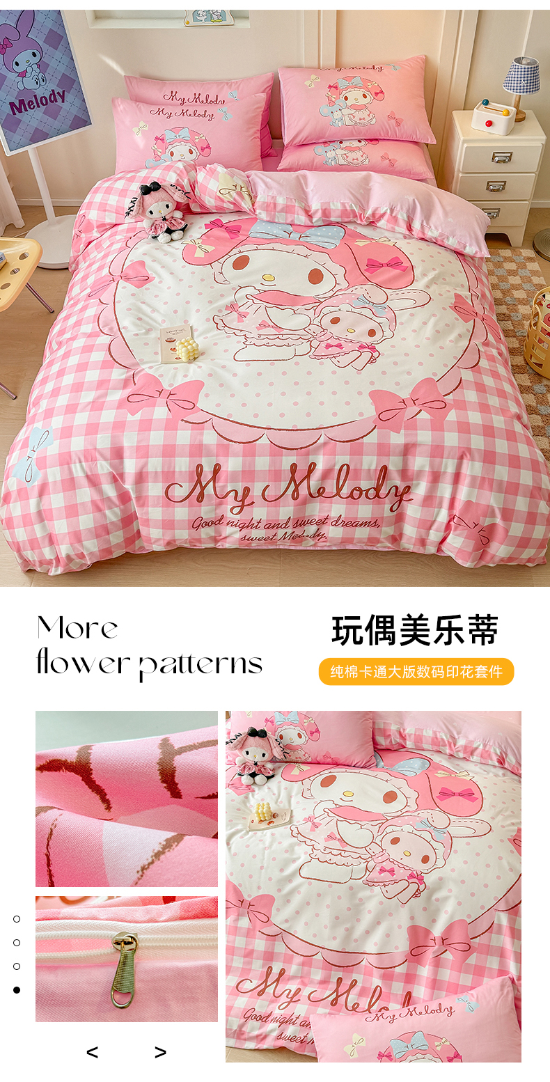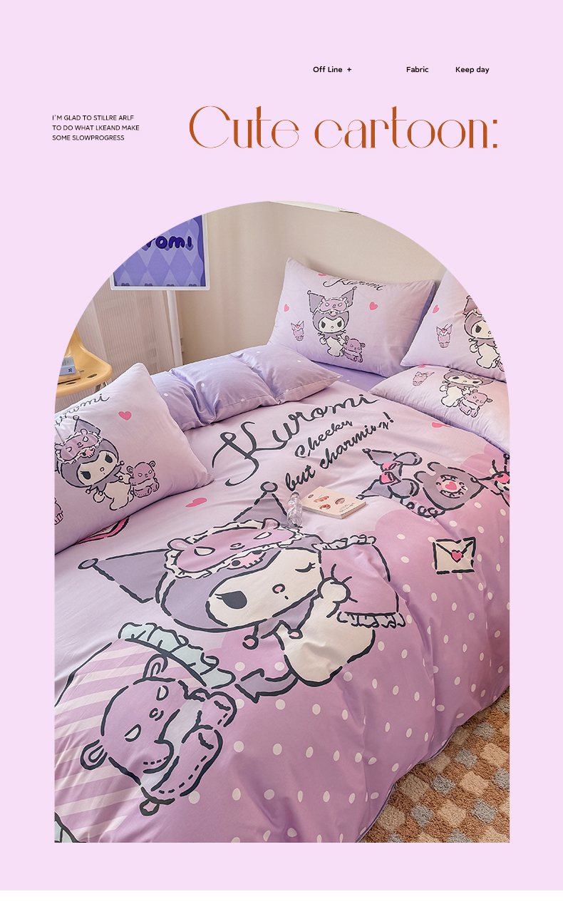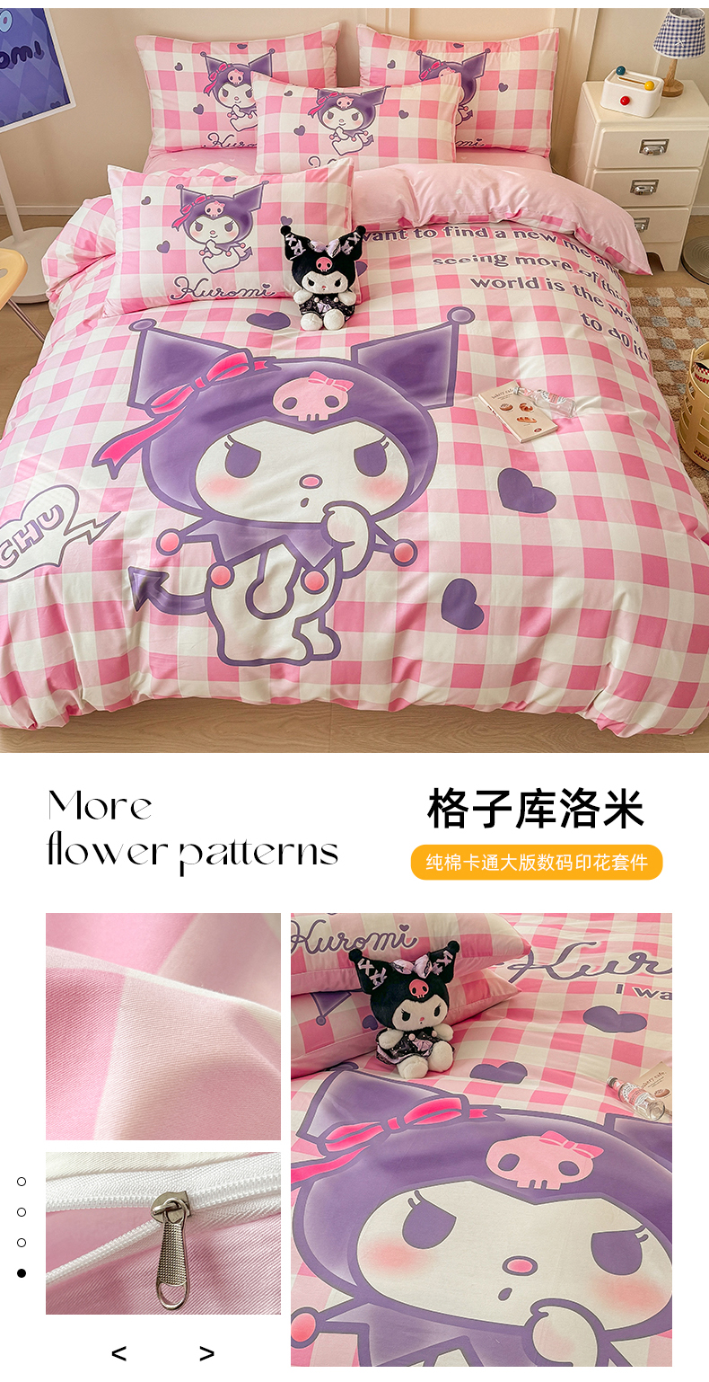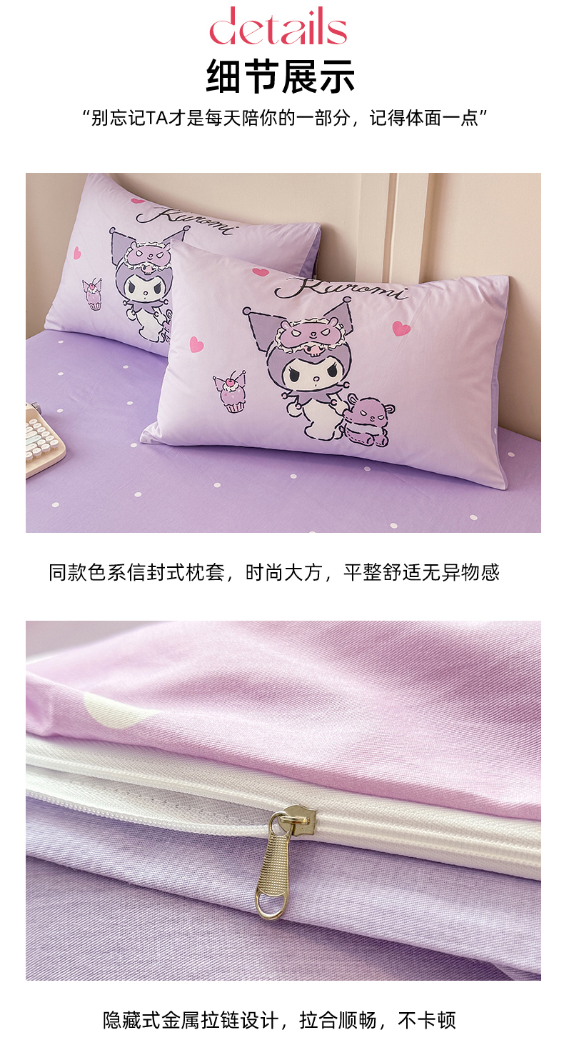 当前位置: 91家纺网 > 商品网购 > 床品套件 > 四件套 > 全棉普通四件套 > 玉元坊 2025新款大版三丽鸥系列全棉纯棉床单纯棉床裙三四件套简约款 晚安库洛米