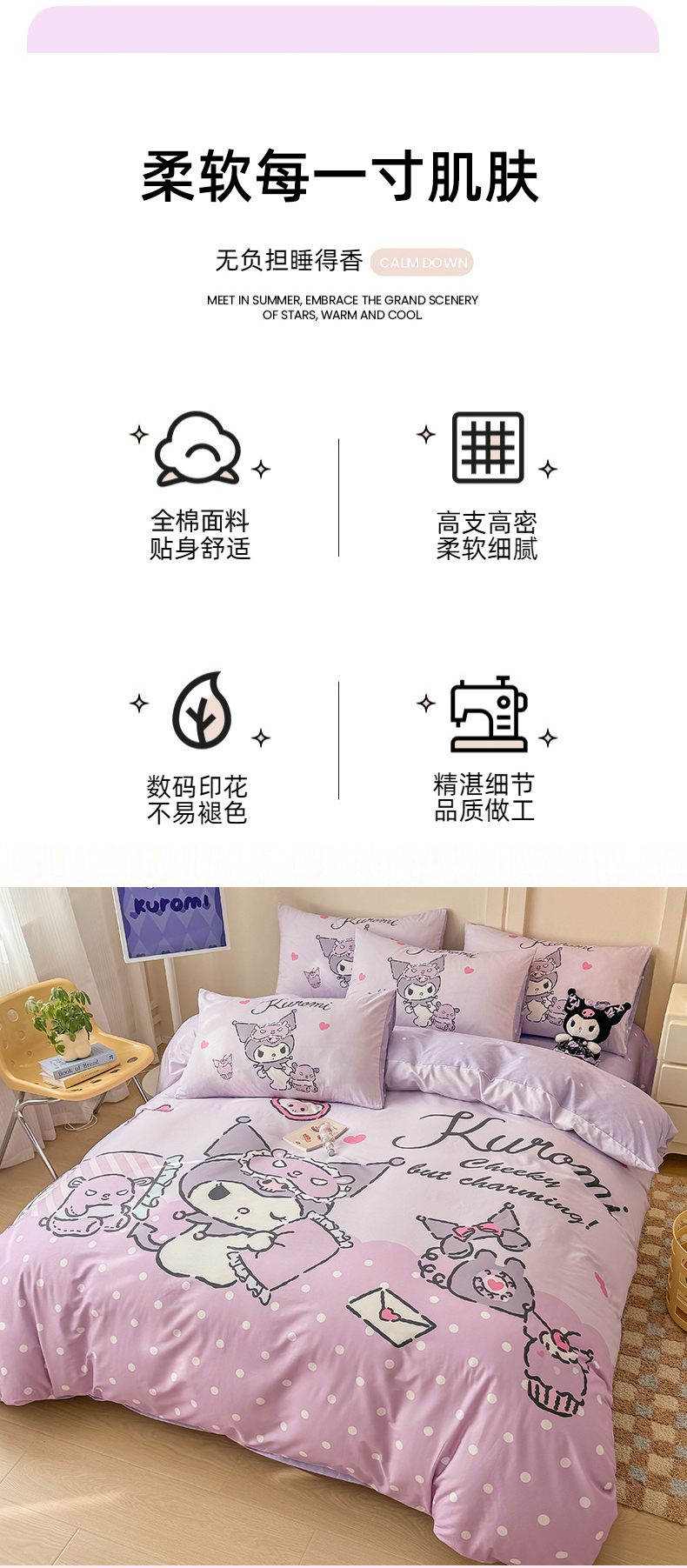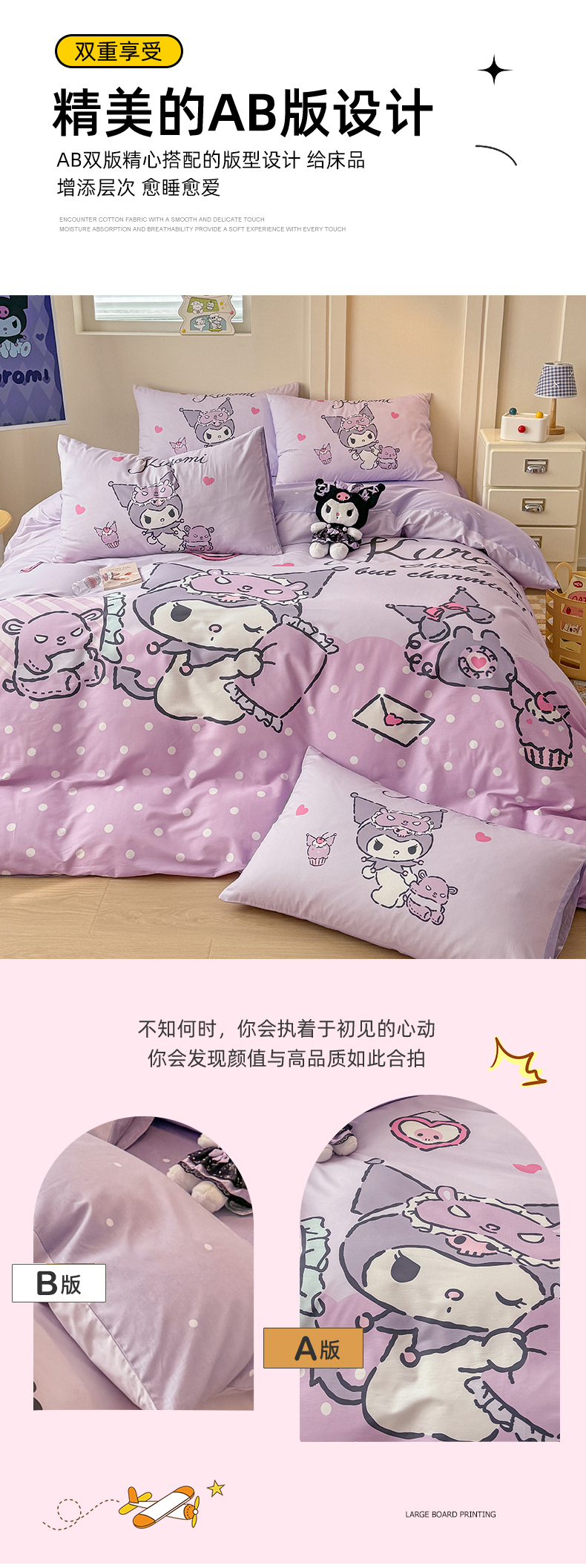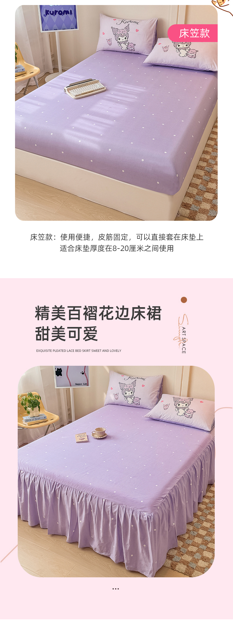 当前位置: 91家纺网 > 商品网购 > 床品套件 > 四件套 > 全棉普通四件套 > 玉元坊 2025新款大版三丽鸥系列全棉纯棉床单纯棉床裙三四件套简约款 晚安库洛米