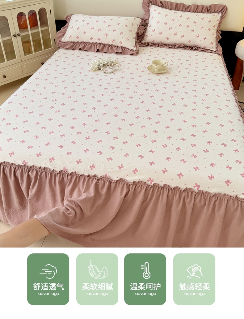 商品名称:圣比熊 2025新款水洗珍珠棉单件床裙双层纱床垫保护罩三件套 怦然心动