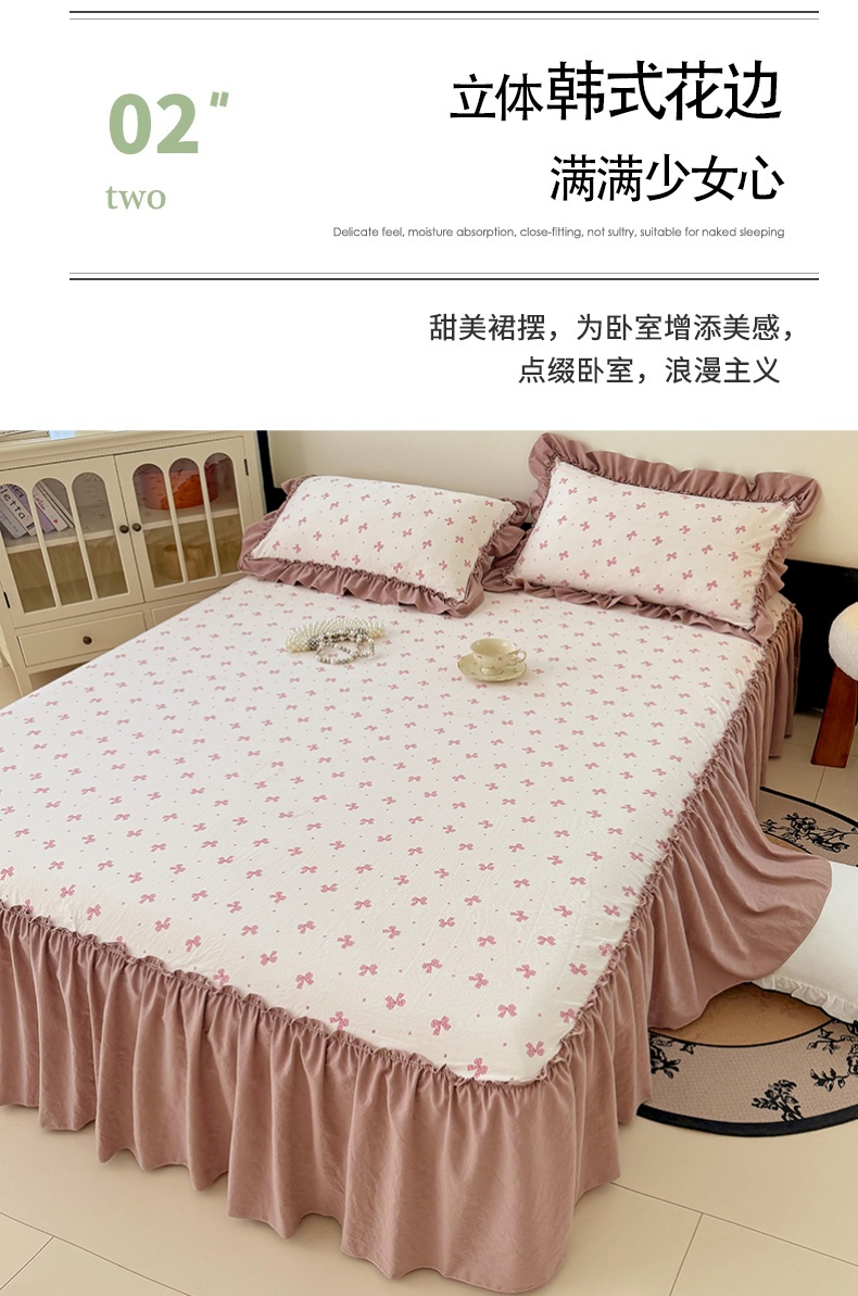 圣比熊 2025新款水洗珍珠棉单件床裙双层纱床垫保护罩三件套 怦然心动