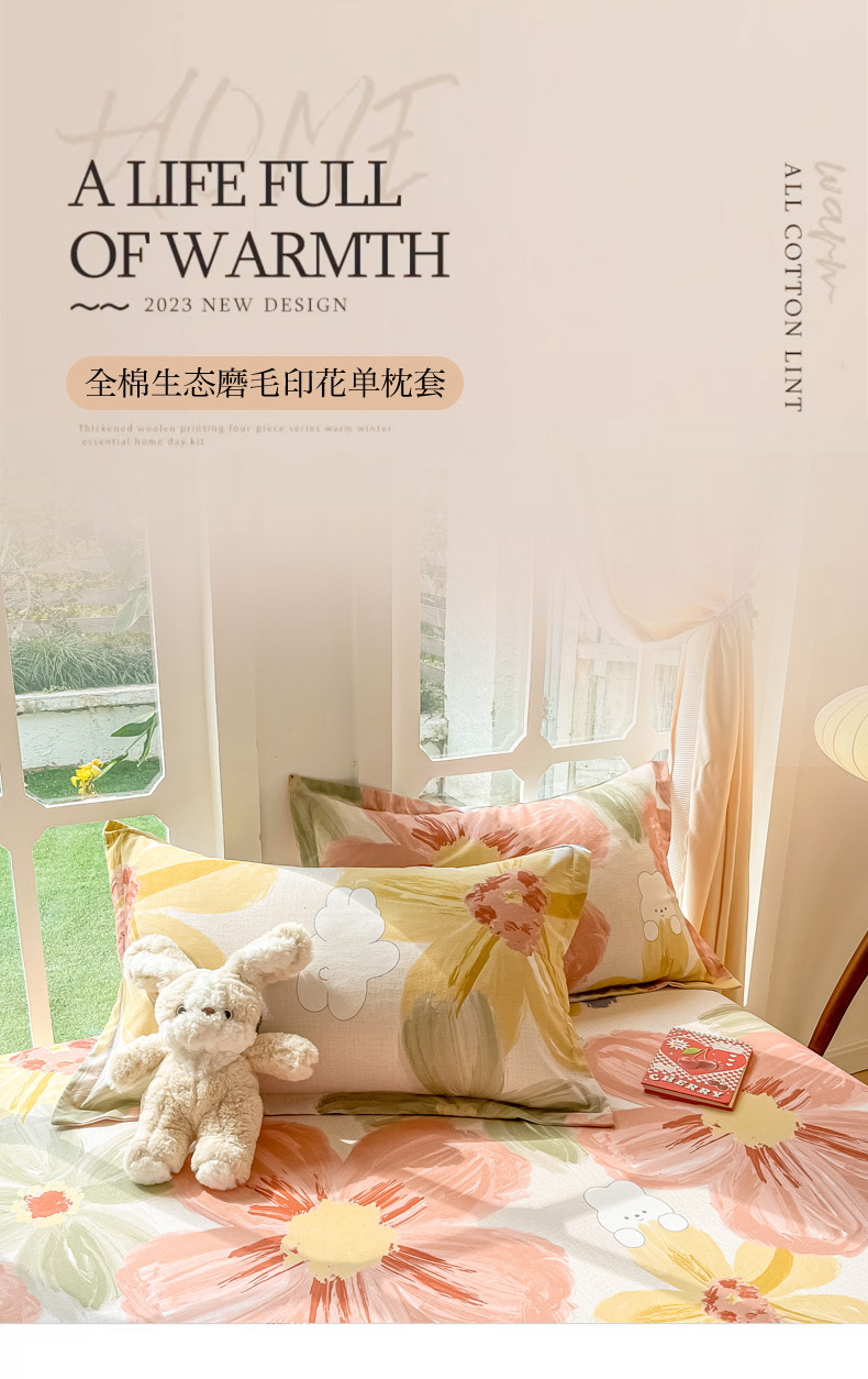 眠博士 2025新款全棉混纺生态磨毛印花单枕套 磨毛枕套-油画花