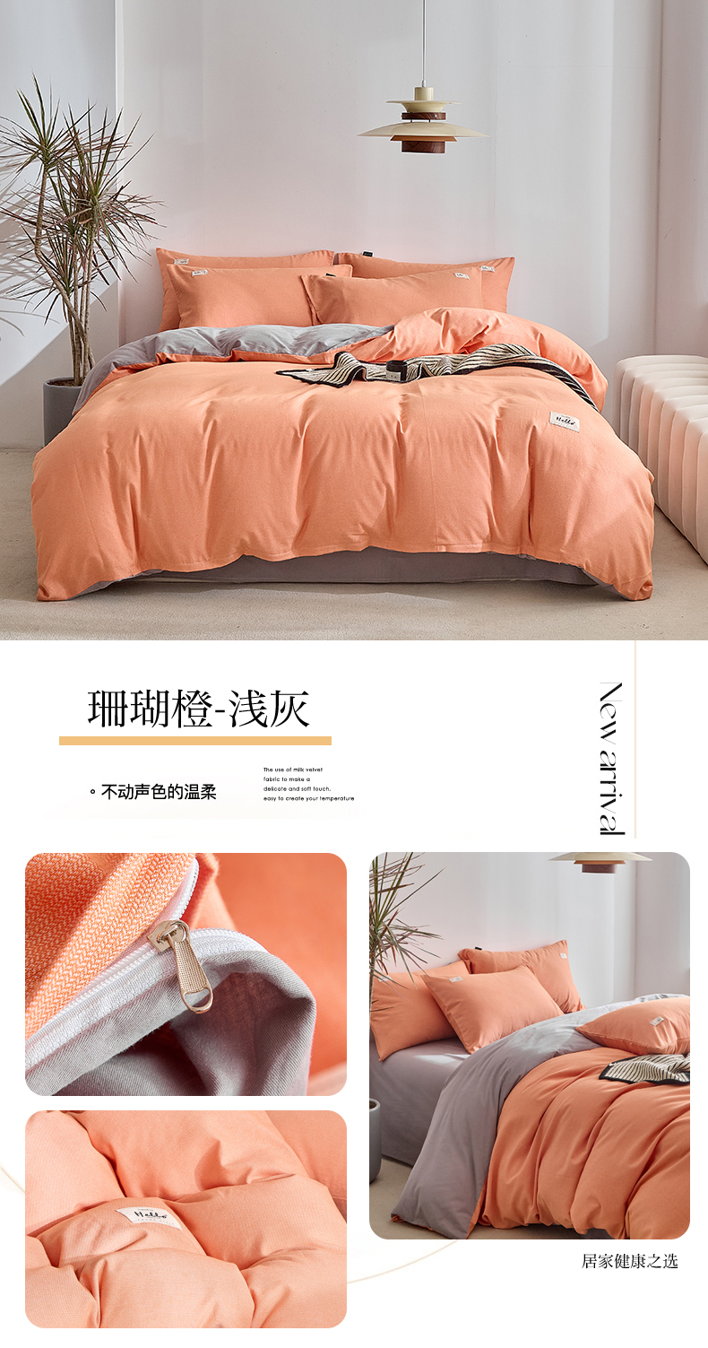 当前位置: 91家纺网 > 商品网购 > 床品套件 > 四件套 > 磨毛活性四件套 > 贝尔 2025新款双拼全棉纯色素色色织磨毛加厚四件套 珊瑚橙-浅灰