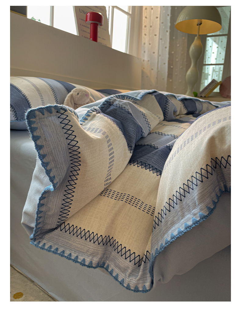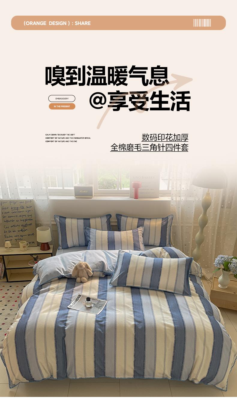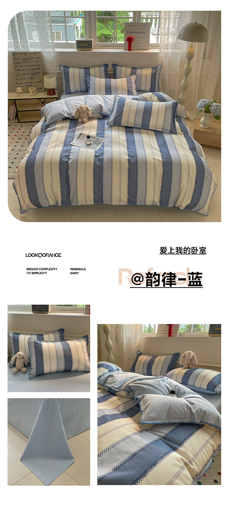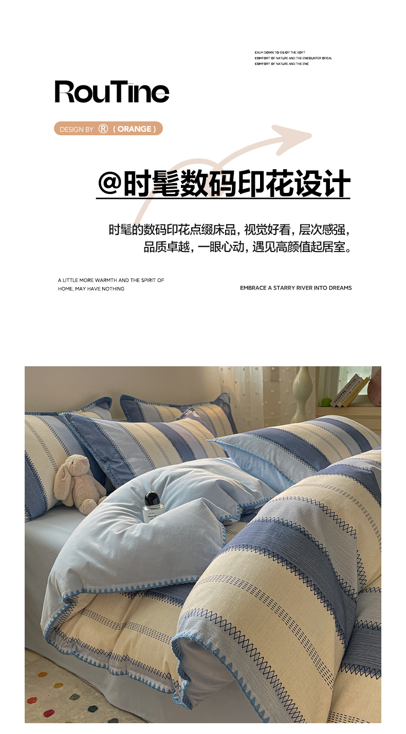 如一 2025新款加厚全棉磨毛三角针四件套 韵律-蓝