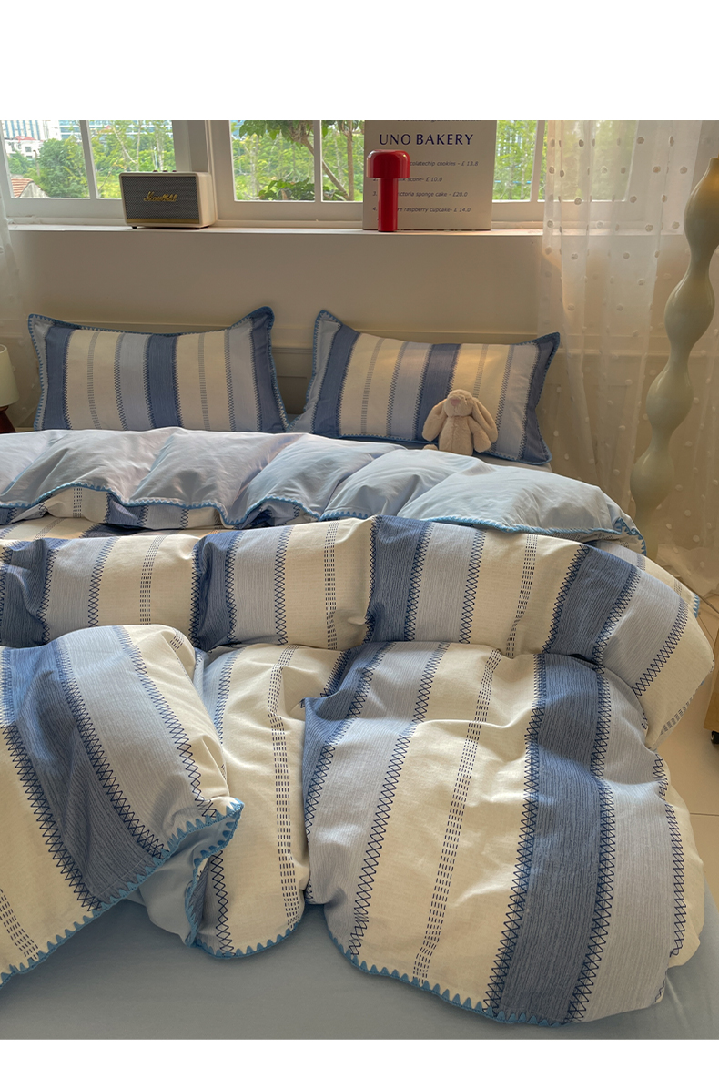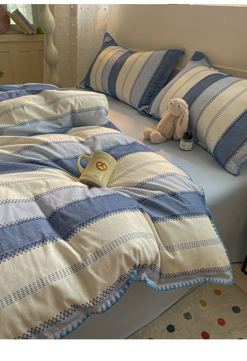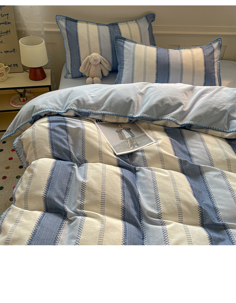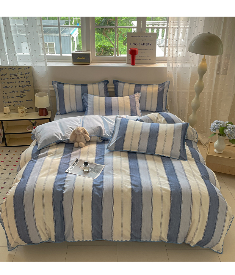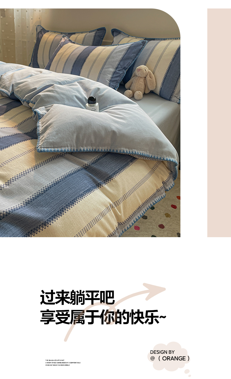如一 2025新款加厚全棉磨毛三角针四件套 韵律-蓝