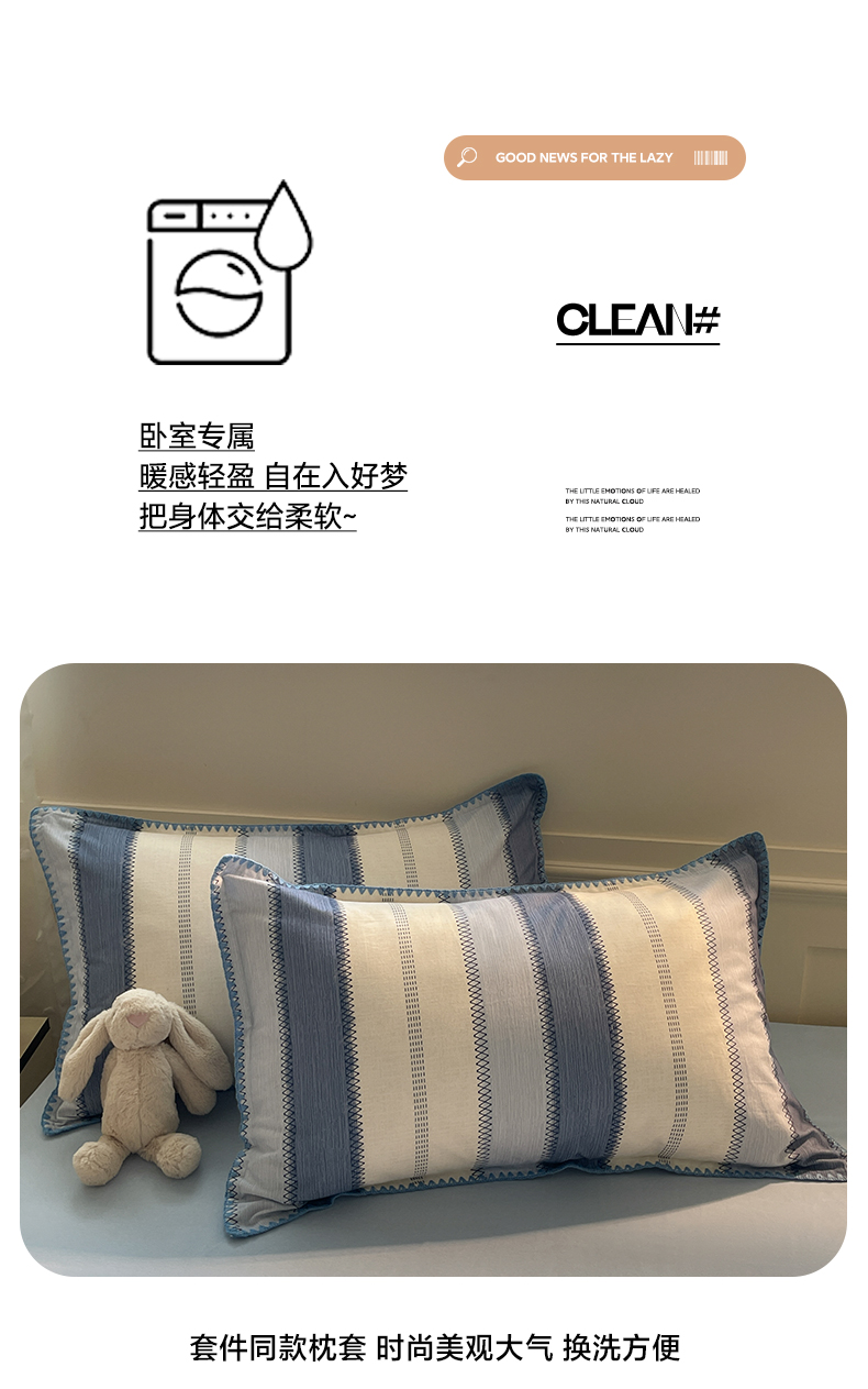 商品名称:如一 2025新款加厚全棉磨毛三角针四件套 韵律-蓝